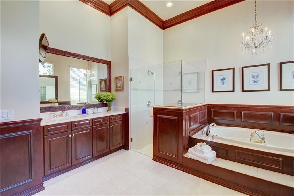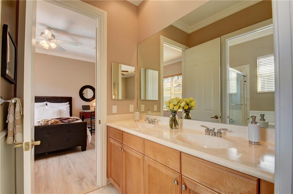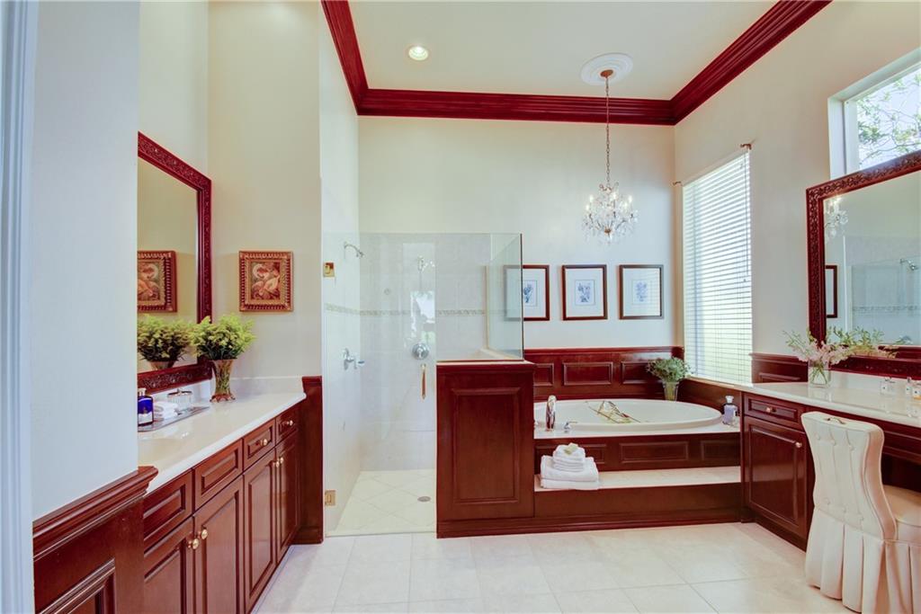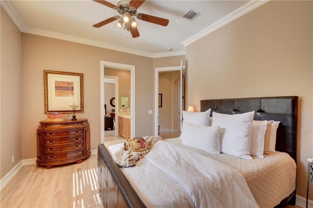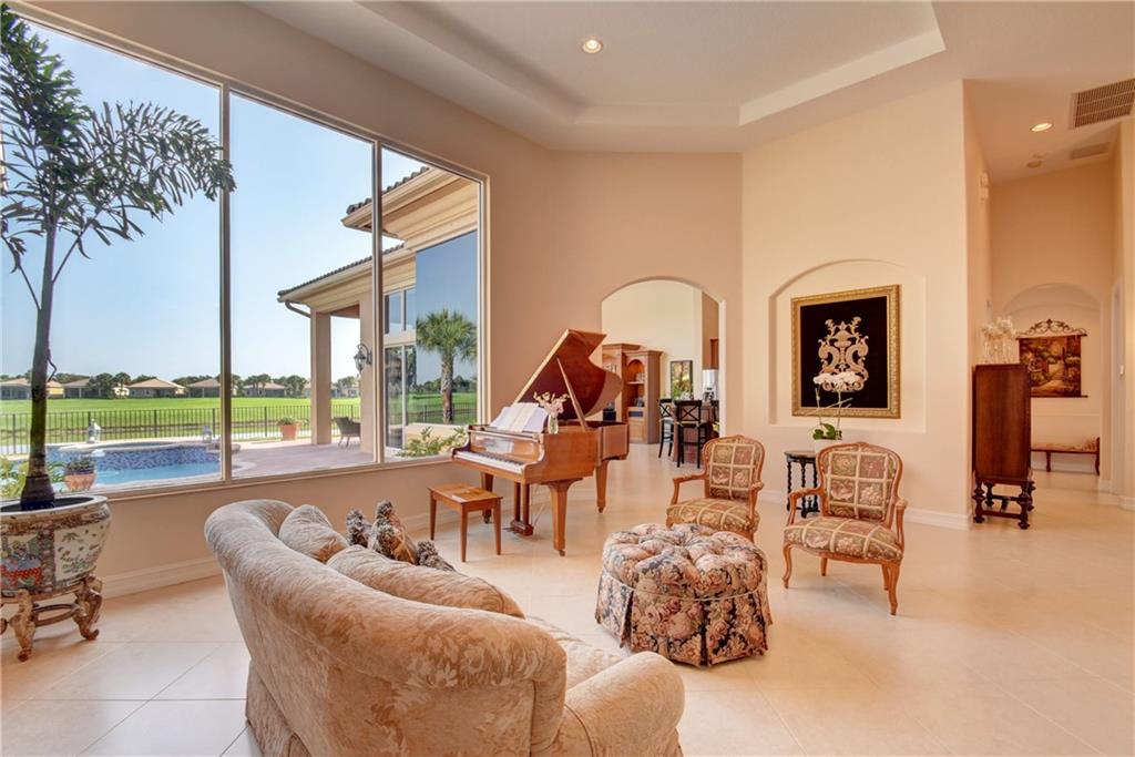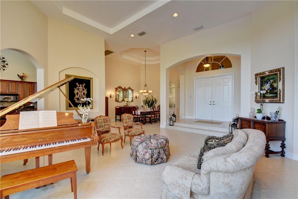 Amazing Waterfront Golf Views In This Popular Tri-Split 5 Bedroom, 4 Bathroom Pool Home w/3-Car Garage! Newer A/C Units, New Laminate Floors In All Beds, High Ceilings w/Crown Molding. Entertain In Style In The Spacious Covered Patio Area w/Resurfaced 2018 Glass Tile Salt Water Pool & Spa Overlooking Golf Course & Lake. Custom Kitchen w/Granite Counters & Island & Newer Stainless Steel Appliances. 5th Bed Converted To Full 7-Seat Movie Theater w/Authentic Built-In Seating, Commercial Grade Theater Carpeting, & Illuminated Candy Counter - Can Easily Be Converted Back to 5th Bedroom or Office. Master Suite w/Sitting Area & Crown Molding, Wainscoting, Built-In Closets, Separate Shower & Jetted Tub! Enjoy Resort-Style Amenities, 24-Guard Gated Community, & A-Rated Schools, Must See!
