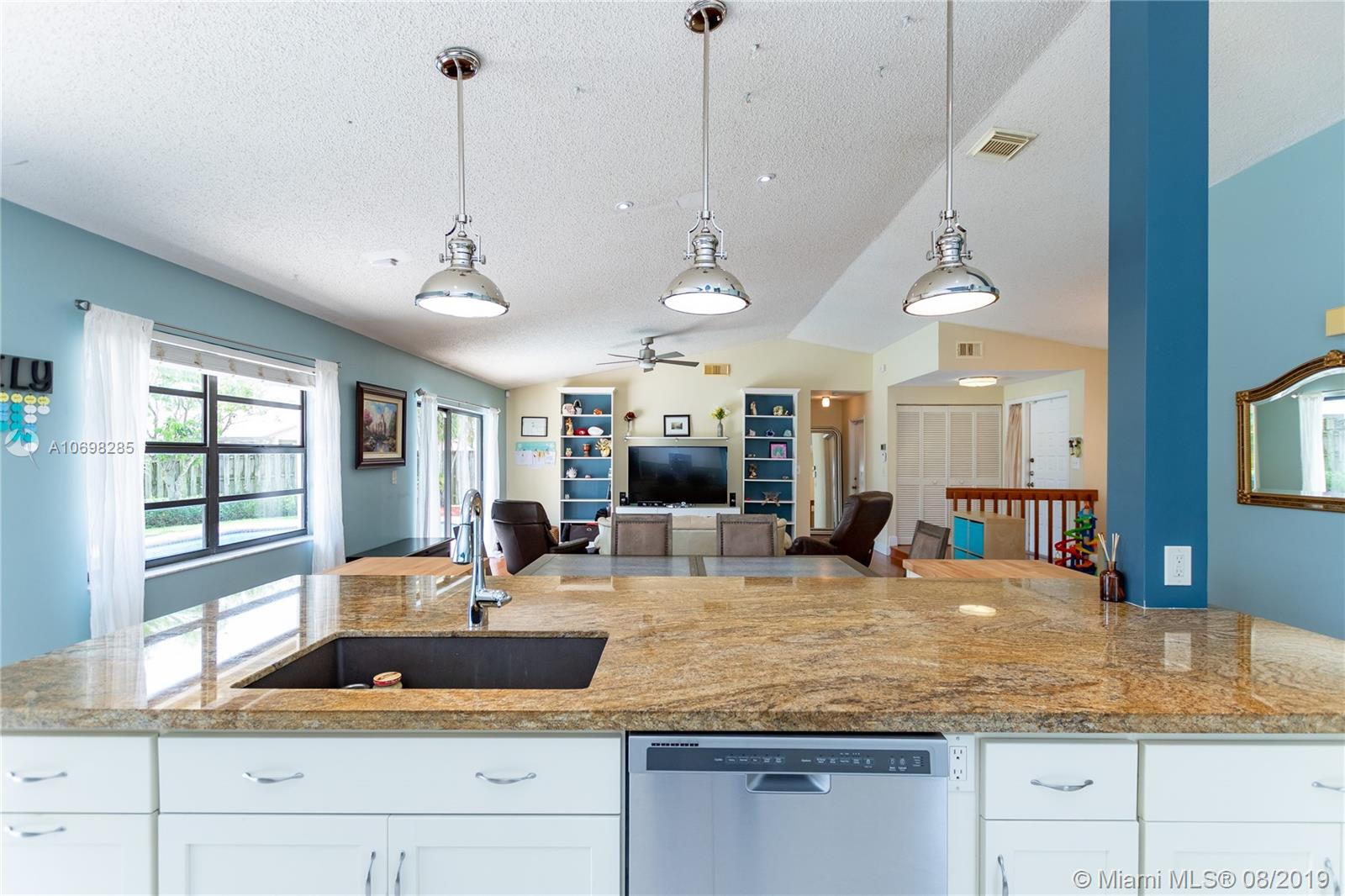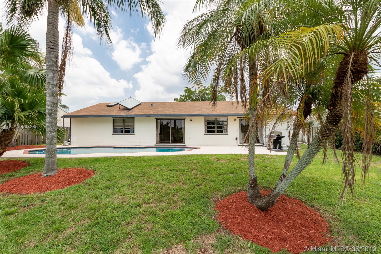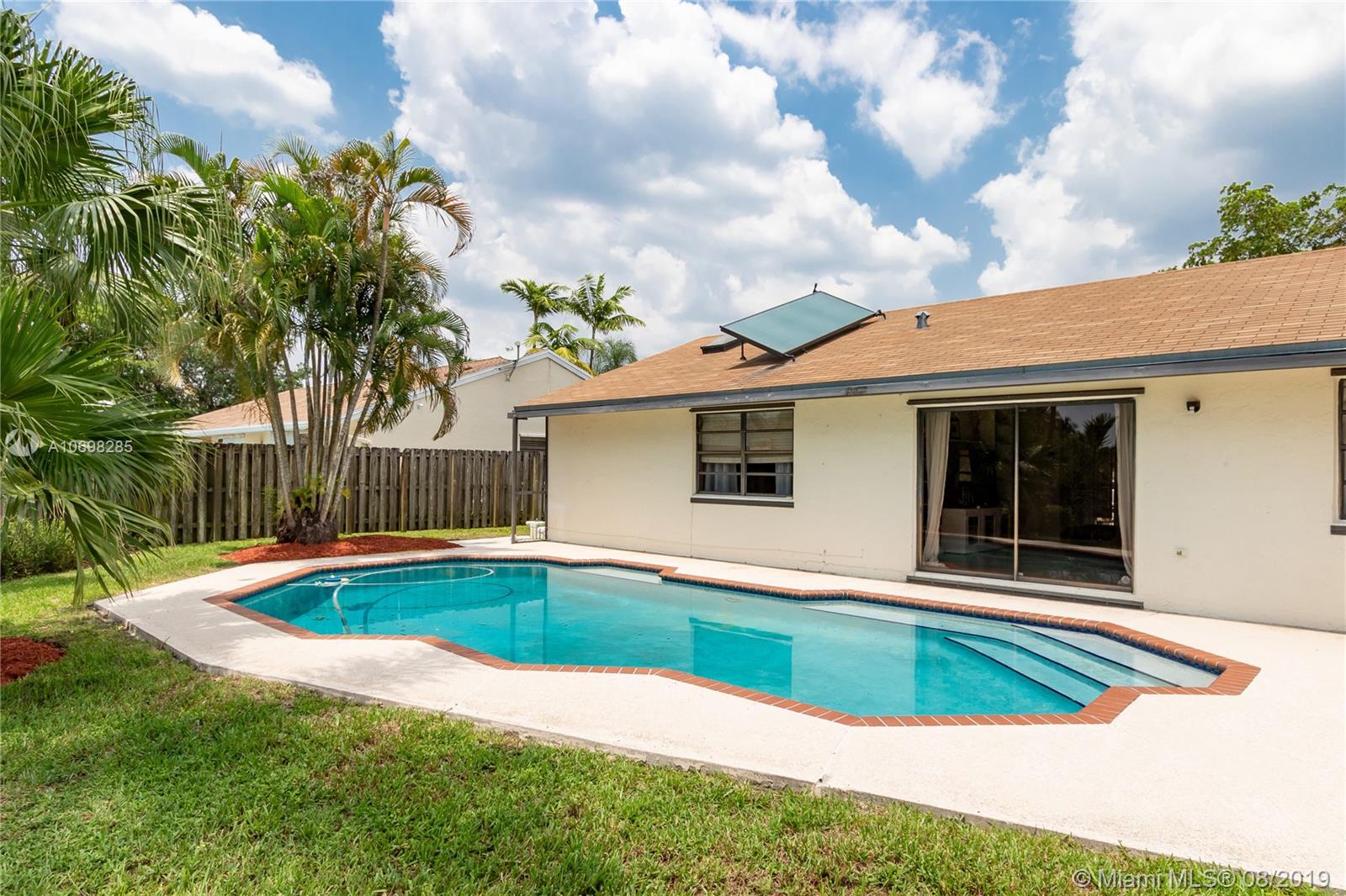 Updated WATERFRONT home with pool located in the Shenandoah community! Tile & hardwood flooring run throughout the home - NO CARPET! Open floorplan includes great room, kitchen and dining room currently utilized as a playroom. Kitchen was relocated creating an open floorplan & renovated featuring solid wood cabinets, granite counters, reclaimed barn wood backsplash, oversized island with built-in banquet seating, and wine fridge! Updated master suite has oversized shower, and walk-in closet. Step outside to the open patio and enjoy your private oasis complete with pool and water view, where you can also see the incredible sunsets in the evening. Other features of this home include new A/C & pool pump (2019), newer solar hot water tank with solar panel, utility sink in garage and MORE!