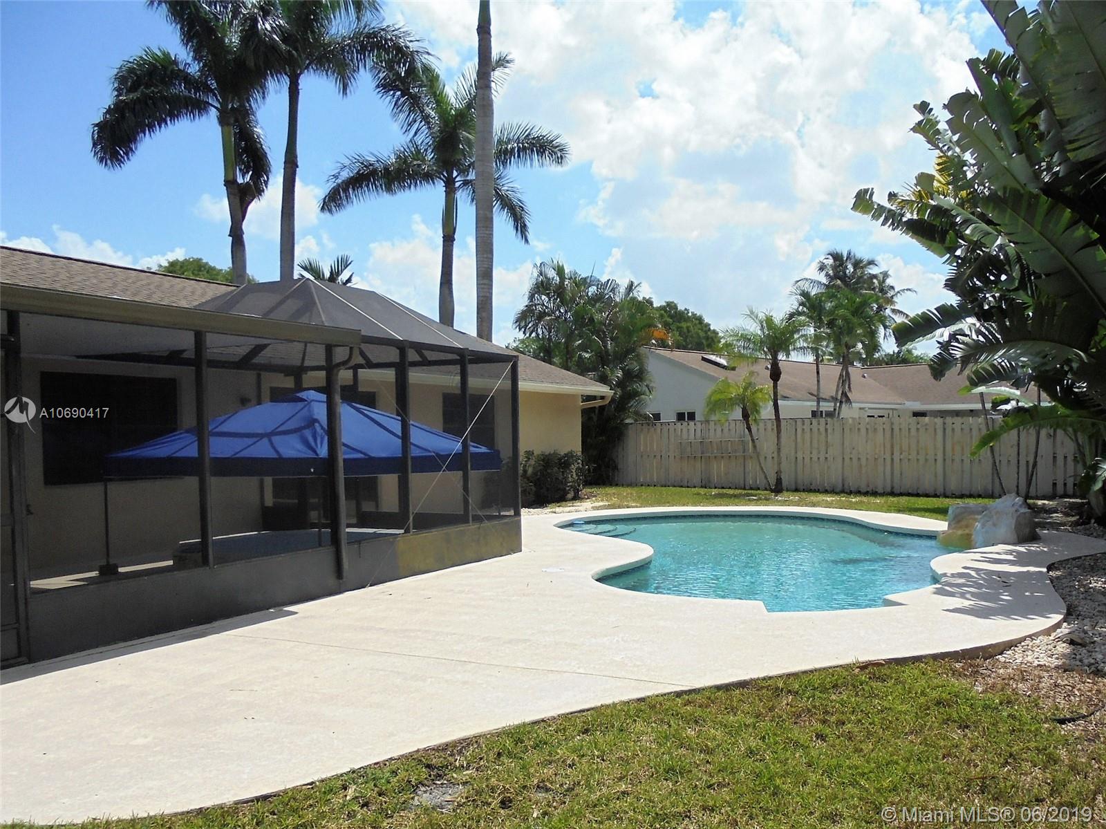 Live the good life in Shenandoah! 4 bed 2 bath, 1 story home that just needs your personal touch. With a lush, tropical, fenced backyard perfect for entertaining or just relaxing. Enjoy the hot tub in your screened-in porch or cool off in the inviting pool. Plenty of room for the kids and pets. Low HOA fees. Roof replaced in 2006. Washer dryer left for convenience only. Convenient to everything. A short drive to Sawgrass Mills shopping and entertainment complex. Easy access to I-595, I-75 and the Sawgrass Xway. Come and make this home your own!