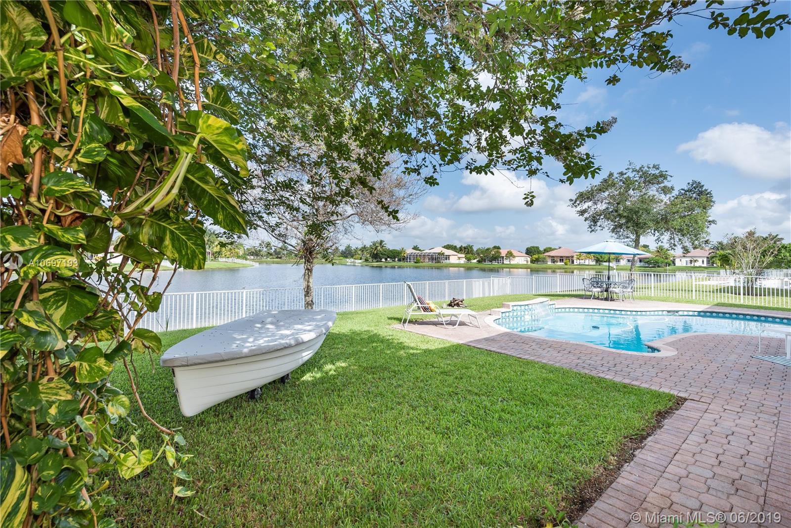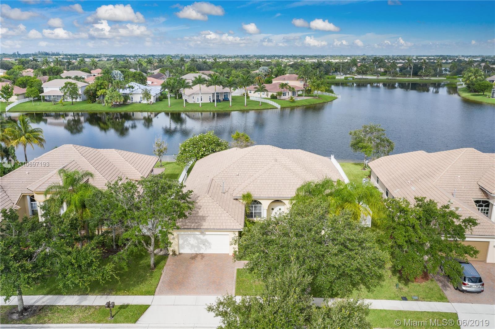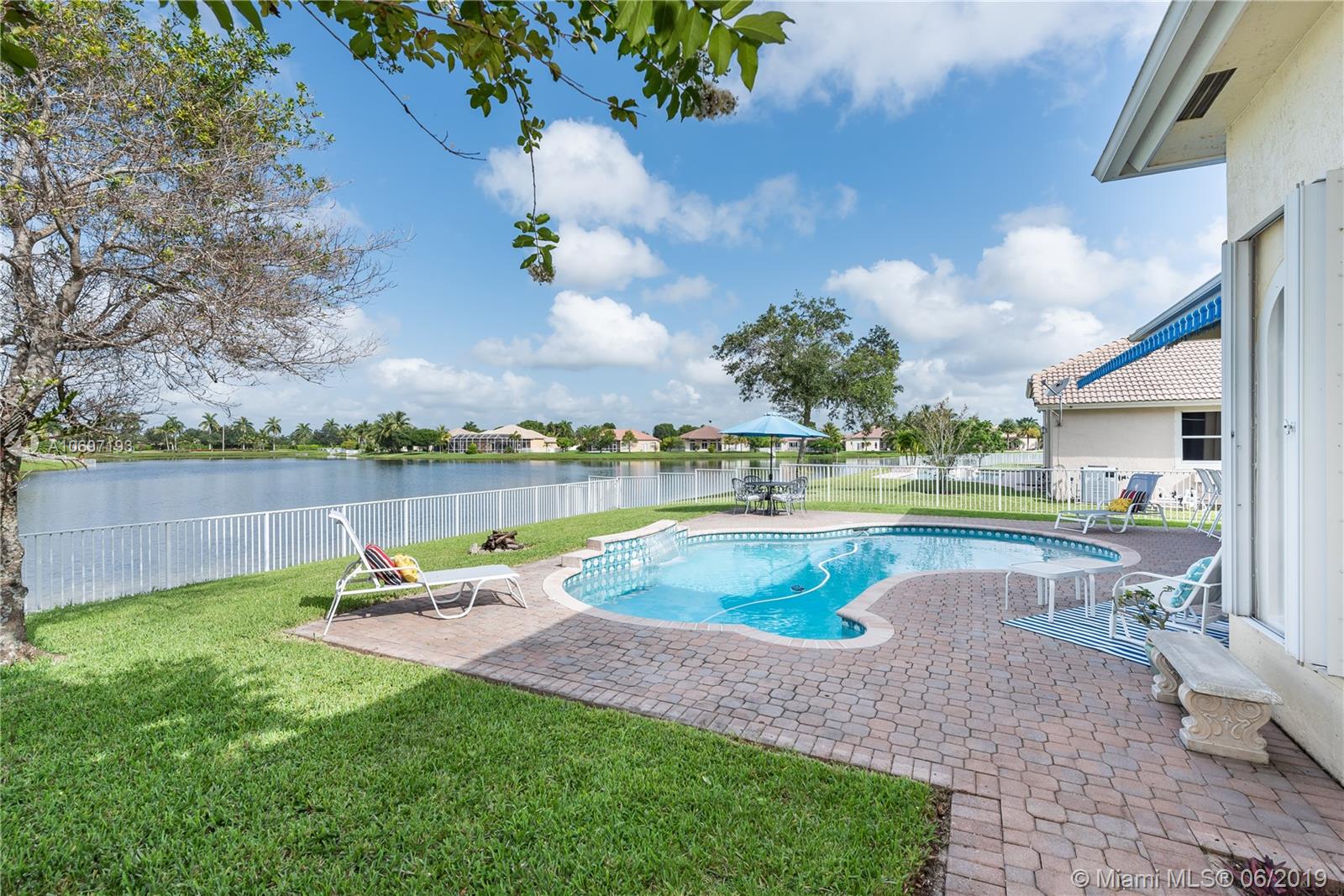 MOST POPULAR "MONTEREY" MODEL IN SOUGHT AFTER PEMBROKE FALLS! POOL AND LAKEFRONT , IDEALLY LOCATED ON A QUIET CUL-DE-SAC STREET! EXTENDED COVERED PATIO WITH BEAUTIFUL AWNING AND EXPANSIVE LAKE VIEWS IS THE CENTERPIECE OF A SPECTACULAR BACKYARD LIVING/ENTERTAINING SPACE. DRAMATIC SUNSETS; DIRECT WATER ACCESS FOR SAILING/PADDLING * SPACIOUS 3 WAY SPLIT FLOOR PLAN FEATURES 4 BEDS, 3 BATHS PLUS DEN* UPGRADED KITCHEN WITH GRANITE COUNTER TOPS AND AMPLE WOODEN CABINET SPACE * TWO CAR GARAGE INCLUDES HIGH ED WALL CABINETS FOR EXTRA STORAGE *ACCORDION SHUTTERS THROUGHOUT *OUTDOOR GAS BARBECUE WITH HARD-PIPED GAS SERVICE * "EVERYTHING YOU NEED" GATED COMMUNITY WITH STATE OF THE ART RECREATION CENTER, POOL, MULTIPLE SPORTS COURTS, CLUBHOUSE & MORE.