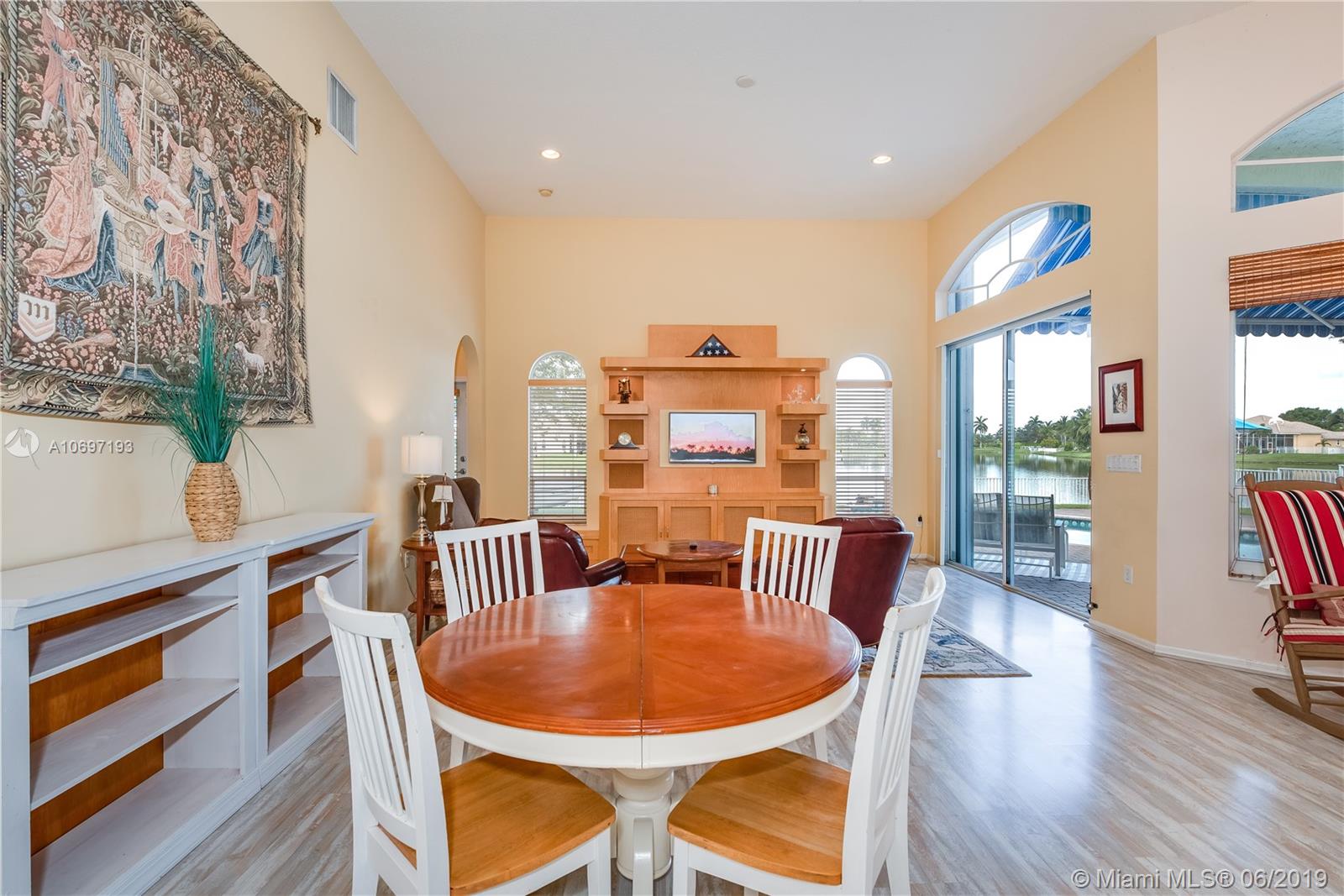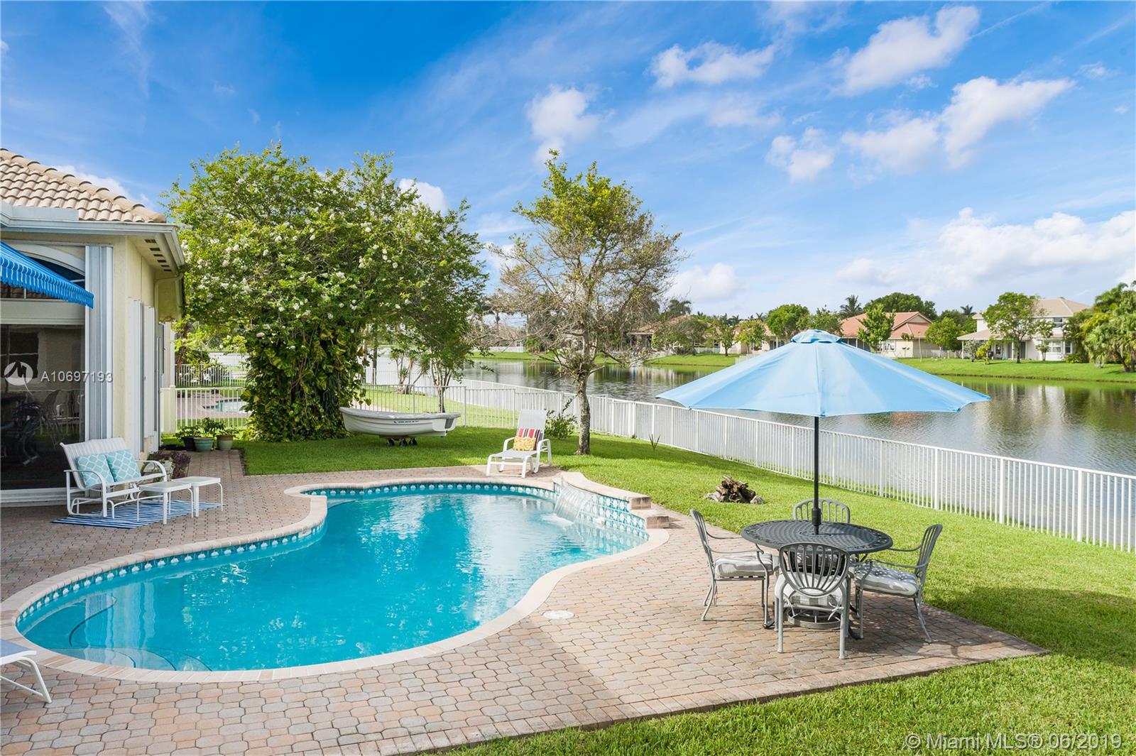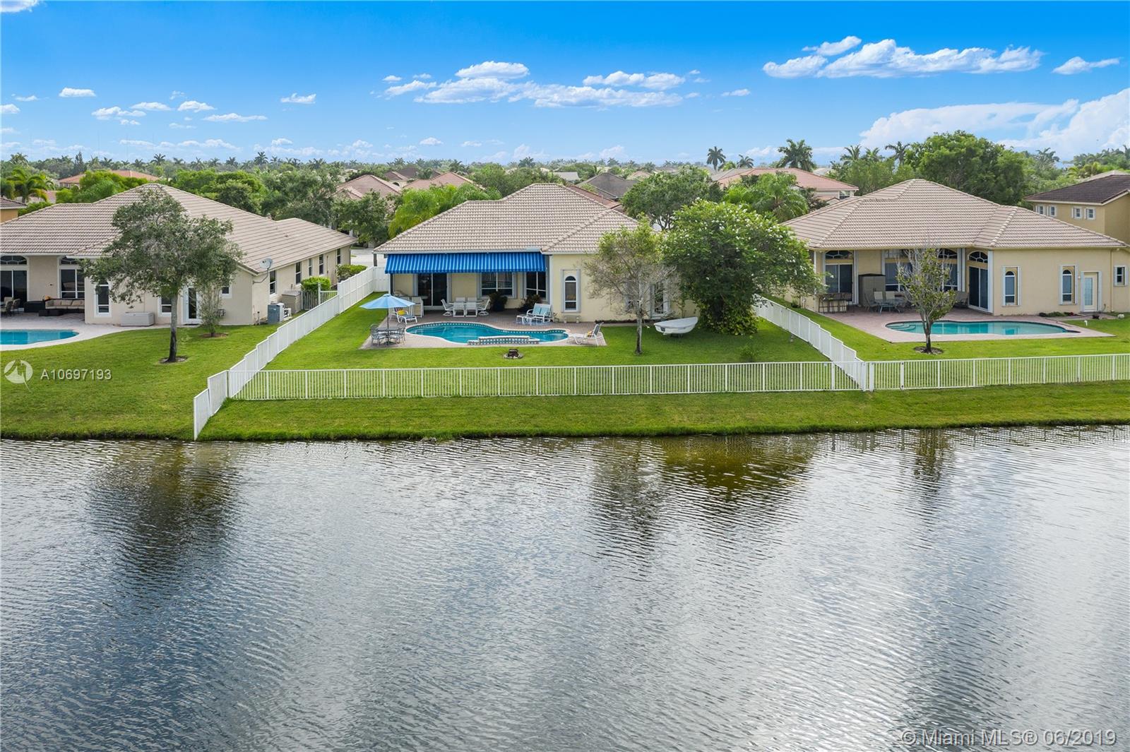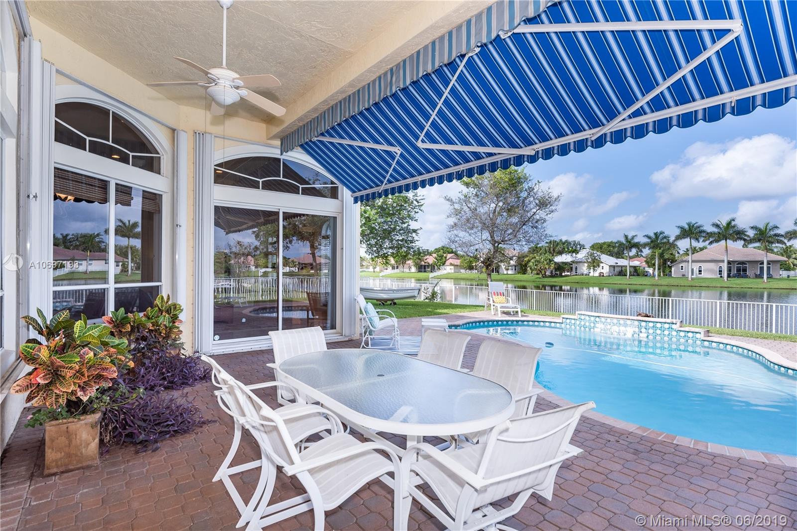 MOST POPULAR "MONTEREY" MODEL IN SOUGHT AFTER PEMBROKE FALLS! POOL AND LAKEFRONT , IDEALLY LOCATED ON A QUIET CUL-DE-SAC STREET! EXTENDED COVERED PATIO WITH BEAUTIFUL AWNING AND EXPANSIVE LAKE VIEWS IS THE CENTERPIECE OF A SPECTACULAR BACKYARD LIVING/ENTERTAINING SPACE. DRAMATIC SUNSETS; DIRECT WATER ACCESS FOR SAILING/PADDLING * SPACIOUS 3 WAY SPLIT FLOOR PLAN FEATURES 4 BEDS, 3 BATHS PLUS DEN* UPGRADED KITCHEN WITH GRANITE COUNTER TOPS AND AMPLE WOODEN CABINET SPACE * TWO CAR GARAGE INCLUDES HIGH ED WALL CABINETS FOR EXTRA STORAGE *ACCORDION SHUTTERS THROUGHOUT *OUTDOOR GAS BARBECUE WITH HARD-PIPED GAS SERVICE * "EVERYTHING YOU NEED" GATED COMMUNITY WITH STATE OF THE ART RECREATION CENTER, POOL, MULTIPLE SPORTS COURTS, CLUBHOUSE & MORE.
