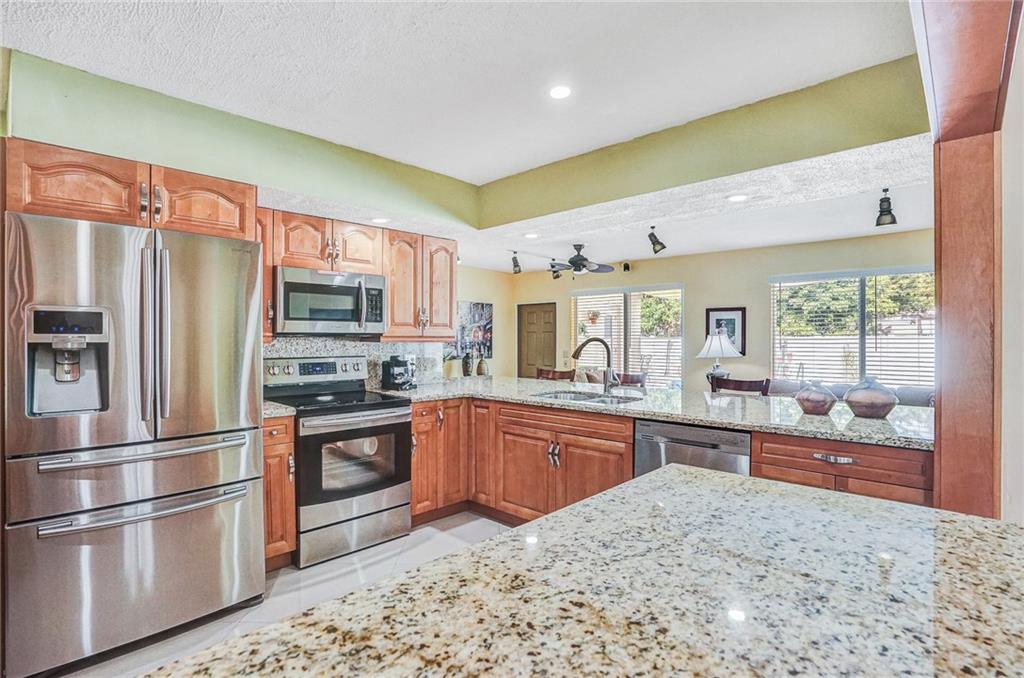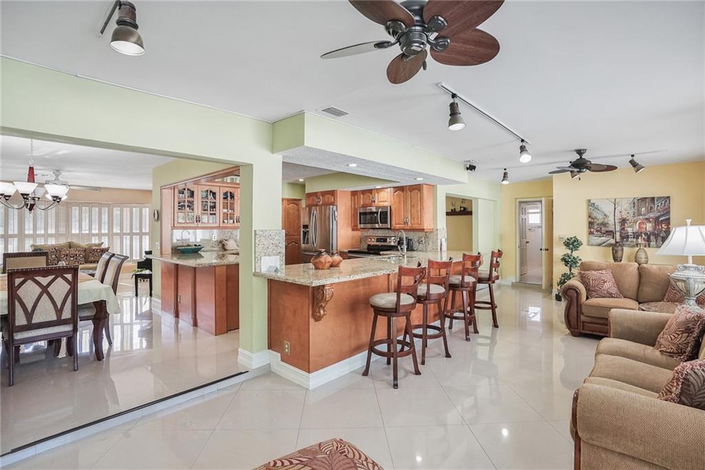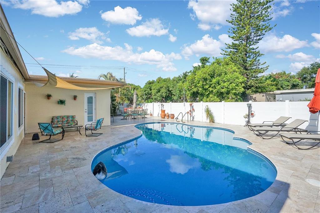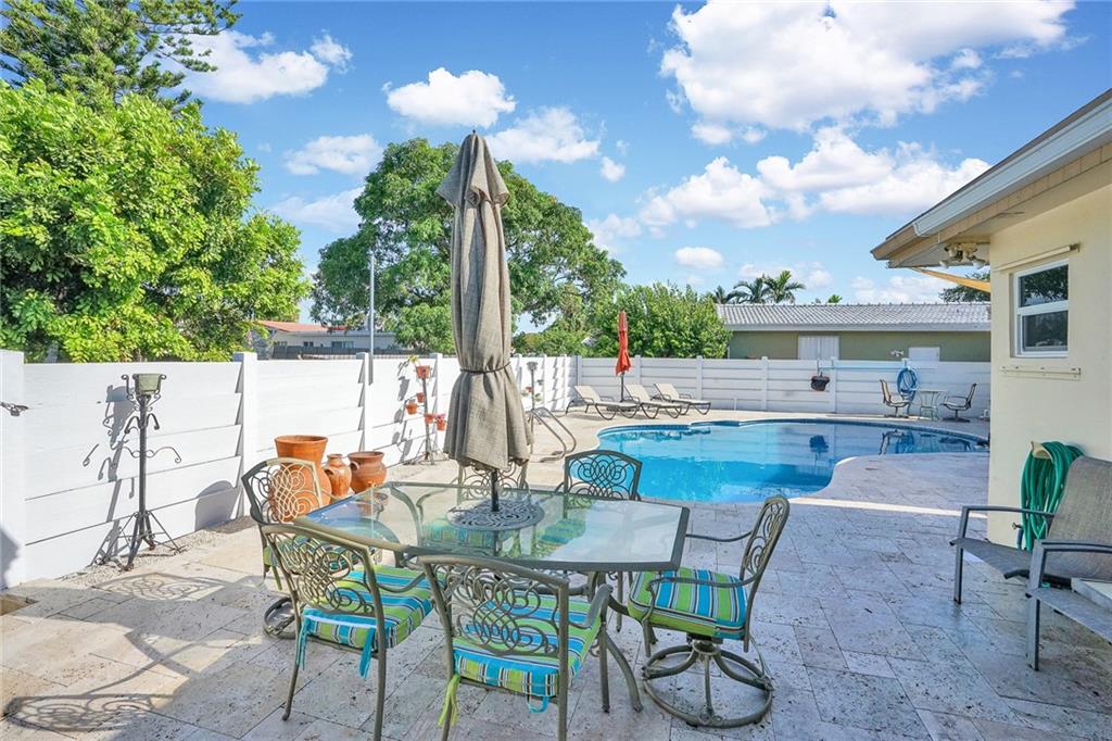 Excellent location! Upgrades! This 3/2 gem has it all! Living areas include dining room, living room, family room, and den. 24” ceramic tile on the diagonal. Beautiful huge new central kitchen area featuring newer s/s appliances, granite tops, Panda cabinetry, and bar counter seating to accommodate 5+. Light and bright with new impact windows. New plantation shutters and blinds included. Bay window. Wood flooring in bedrooms. Walk-in closet in master. Upgraded bathrooms with impact pool door. Ceiling fans all over. Hugh Backyard for entertainment is like new, with travertine pavers and new diamond bright on the free form pool. 1 year old paved, oversized circular driveway with 2 car garage. 1 year new AC. Close to I95, Turnpike, hospitals, great schools, 20 min from beach.