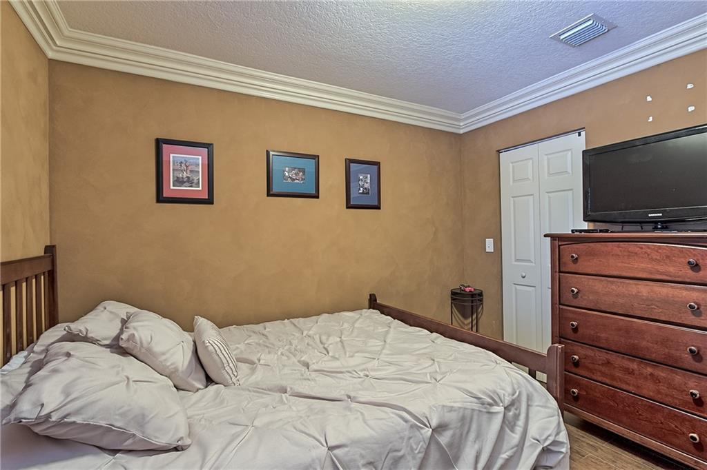 Stop your search here at this sought-after & spacious two story 4 Bedroom/2.5 Bath pool home in The Village at Harmony Lake! Priced to sell & in move-in ready condition with all the bells & whistles that a buyer desires. Great open floor plan, volume ceilings, beautiful marble tile flooring on the 1st floor, gourmet kitchen with granite counter tops, gracious sized Master Bedroom, European inspired bathrooms, crown molding throughout, wide plank tile flooring on the 2nd floor, brand new high-efficiency Carrier AC system with Nest thermostat, full accordion shutters & the list goes on! Large backyard overlooking a greenbelt so neighbors are not directly behind you & more importantly featuring an awesome free-form pool with spa & water feature! A "must see" home that checks all the boxes!