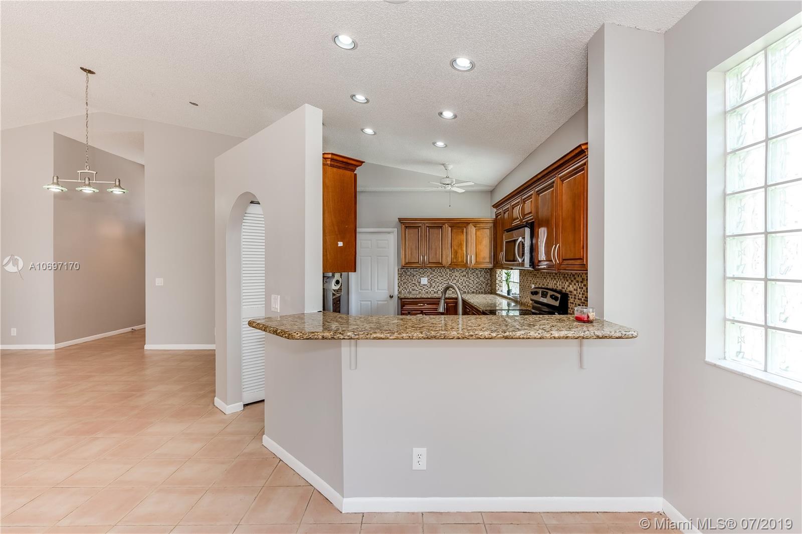 One of the most affordable homes in this prestigious Golfing community! With beautiful golf course views, this very well kept three bedrooms, two baths, and two car garage one story home in Encino of Grand Palms Golf and Country Club is move in ready. Screened-in patio, granite kitchen counter tops with stainless steel appliances. vaulted ceilings, freshly painted. ACCORDION SHUTTERS THROUGHOUT!! NEW ROOF IN FROM 2016. This home is move-in ready and Easy to show. Close to I75 and turnpike. Minutes away from Pembroke Gardens and Pembroke Lakes Mall and a lot of shopping and dining choices around.