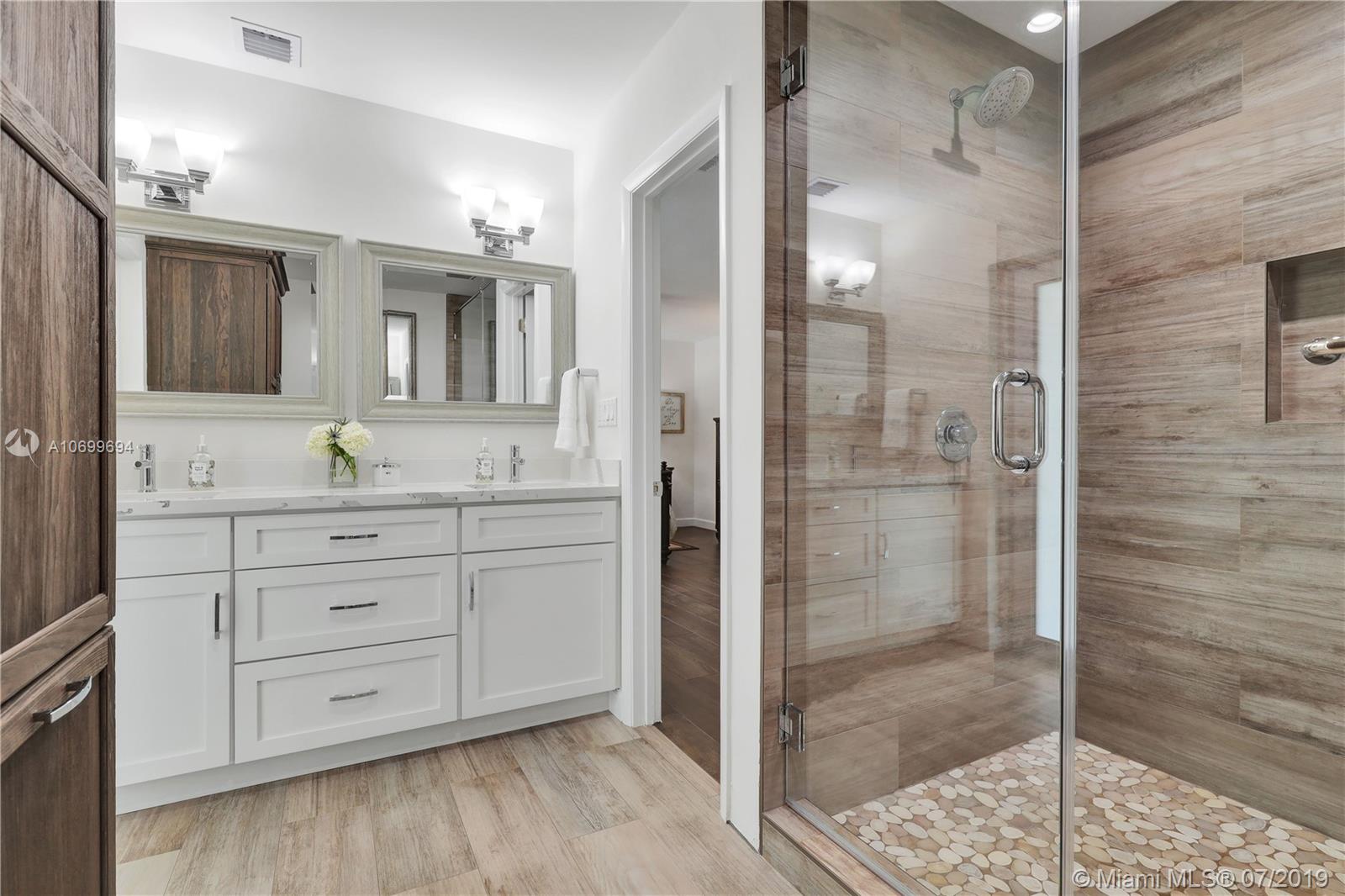 This beautifully remodeled 4 bedroom, 3 bathroom home is ideally located on a quiet street in the family-friendly, gated community of Pinecrest by the Sea. This move-in ready home w/green & clear views from every window includes a new kitchen w/custom shaker style cabinets & high end Sub-Zero, Miele & Wolf appliances. New porcelain wood tile floors accentuate the combination of open flow & formal living space. The remodeled master bathroom even has a two-person shower & ample storage space. Other noteworthy enhancements include a 2016 roof, 2 high efficiency Trane XR16 air condition systems, LED lights, in-ceiling speakers, plantation shutters & custom closets. A private yard, large covered patio & pool offers exceptional entertaining space. Access to Pinecrest Elementary A+ rated school.