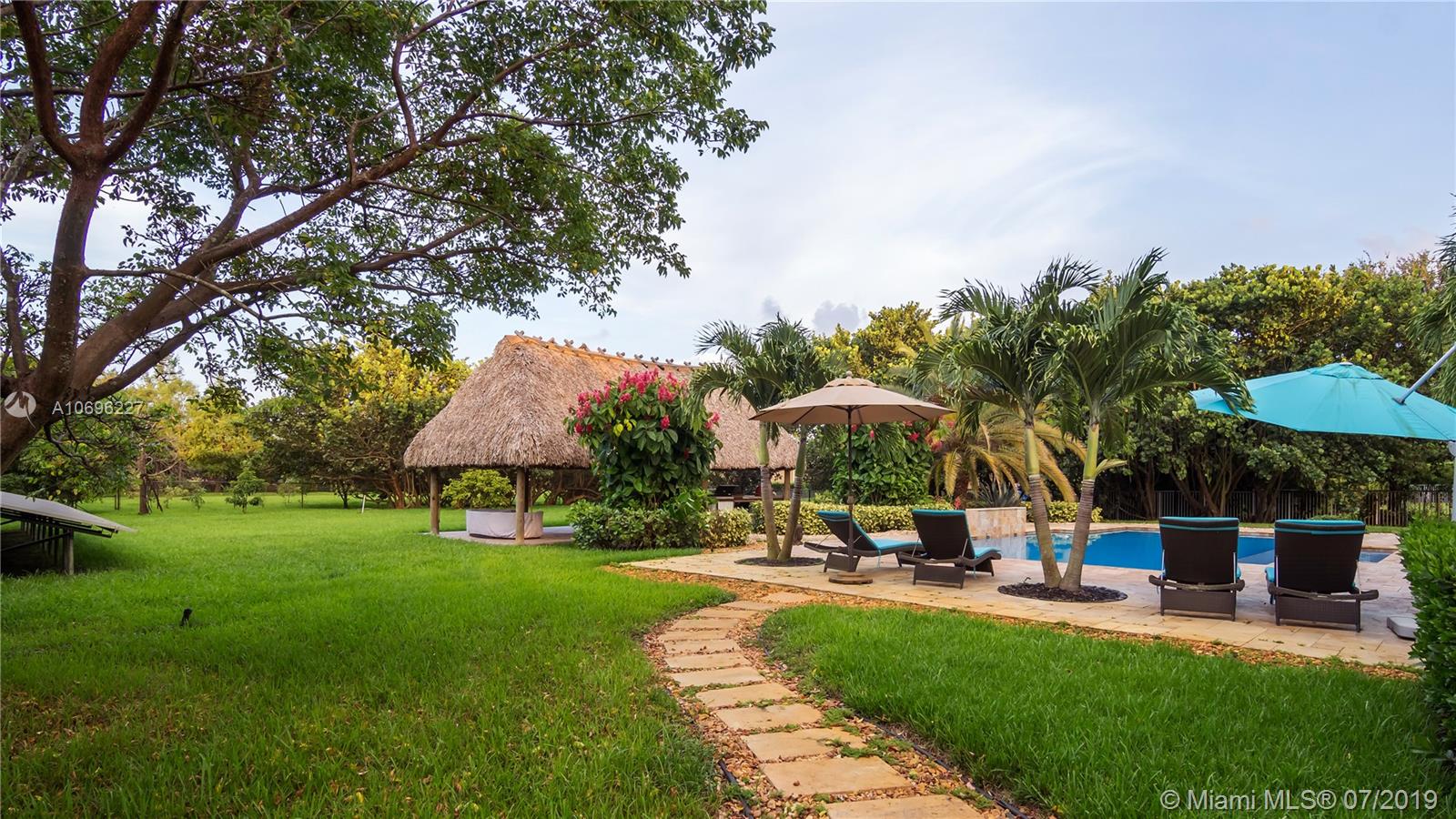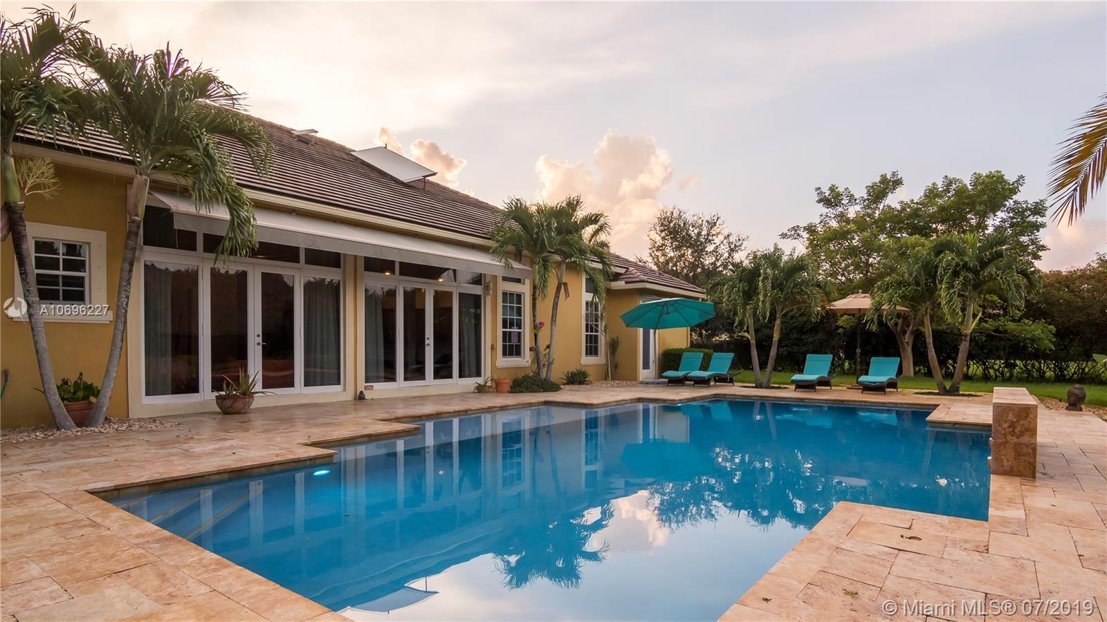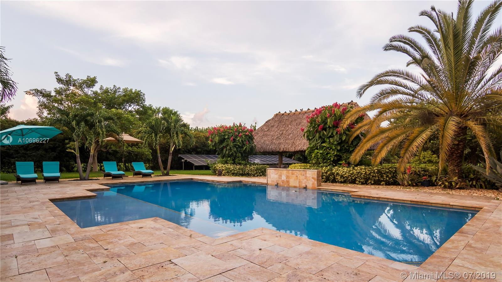 Marvelous home located in the gated community of Grove Creek. This exclusive home with 5 bedroom, 4 full baths, dinning room, open kitchen, granite counter tops and stainless steal appliances, 1 office, family room, media room and much more. This wonderful house has Solar Panels that can save you around $1800 average yearly, plus 2 New trend A/C 5 tons. This property sits in an acre lot, it has an amazing renovated pool with travertino pool deck and a tiki hut with outdoor kitchen that includes grill, kamado joe, double burner and fridge. 3 car garage, circular driveway that can accommodate additional cars.