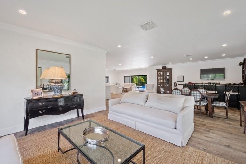 NEW PRICE!Classic, timeless, elegance. Stunning renovation located on a quiet street in Coral Ridge. The dramatic entrance leads you to this masterpiece that was carefully created by the current owners. No expense has been spared from the wide plank wood tile flooring to the fixtures and hardware found throughout this rare find. The kitchen is a chef's dream and offers gas cooking. There are three generously proportioned bedrooms, three bathrooms, and comfortable living and dining areas. Entertain at the built-in bar or relax on the lanai overlooking the pool. The laundry room has its own sink and the oversized two car garage has ample space for additional storage. Foam insulation ensures that this home is quiet but also surprisingly cool. Walk to Cardinal Gibbons school. Simply perfect!