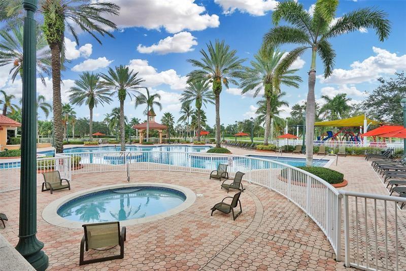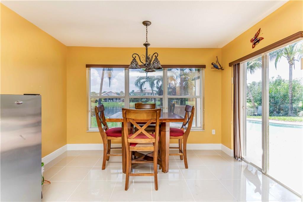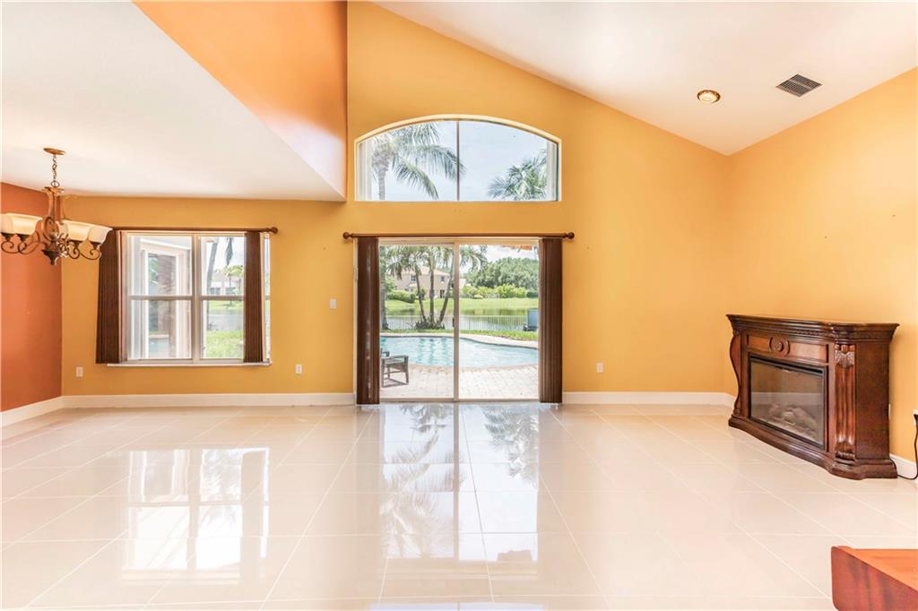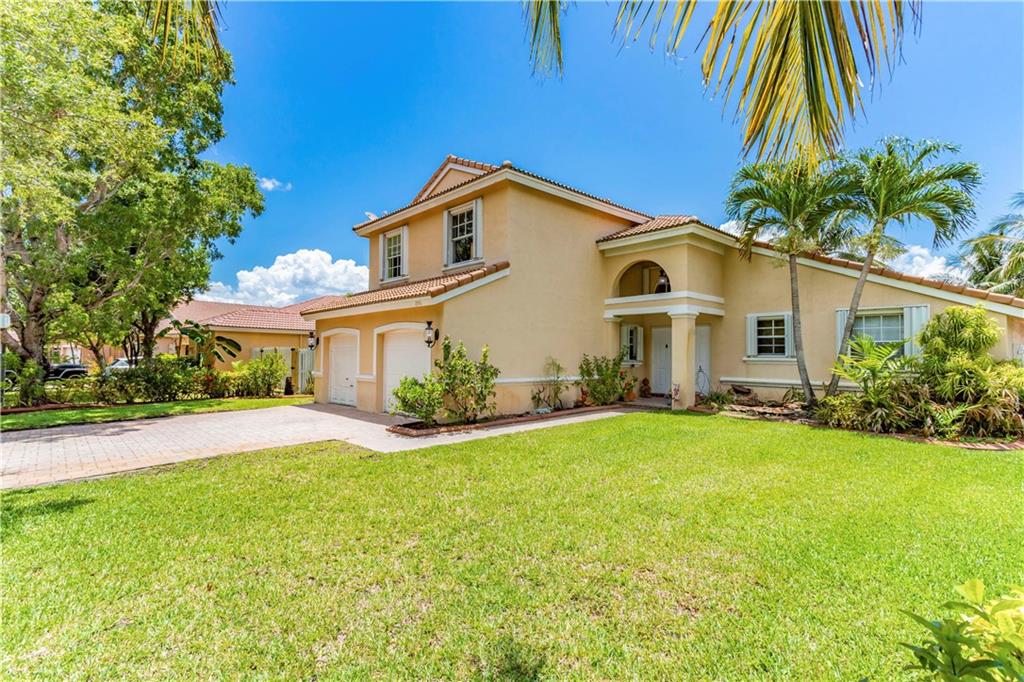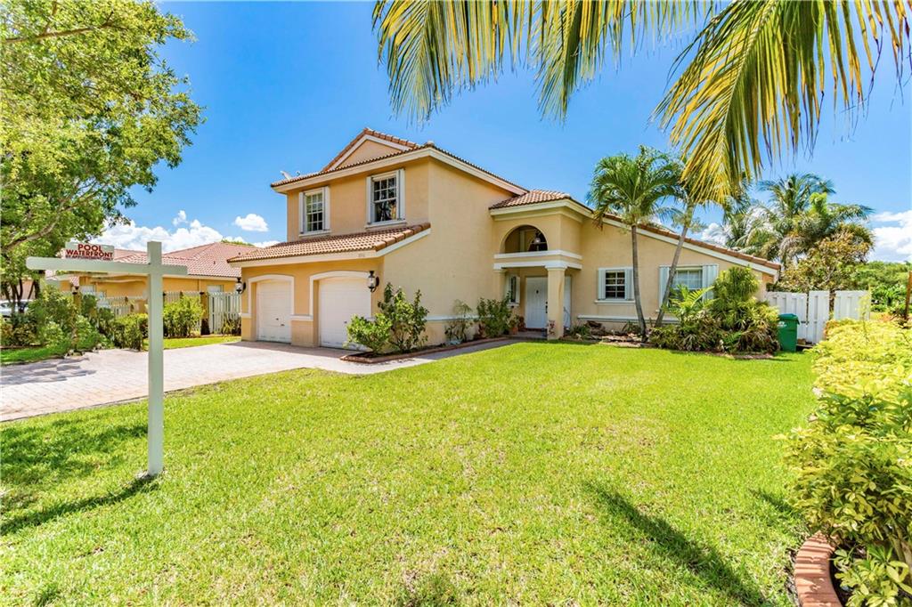 Beautiful 5 bedroom home plus part of garage converted to the playroom. Gorgeous oversized yard with large pool and lake. All new porcelain flooring on lower level. Upper level has wood laminate. A/C & refrigerator are newer. Accordion shutters throughout home. Large eat-in kitchen overlooking pool and lake. 5th bedroom has it's own separate entrance, perfect for a home office.