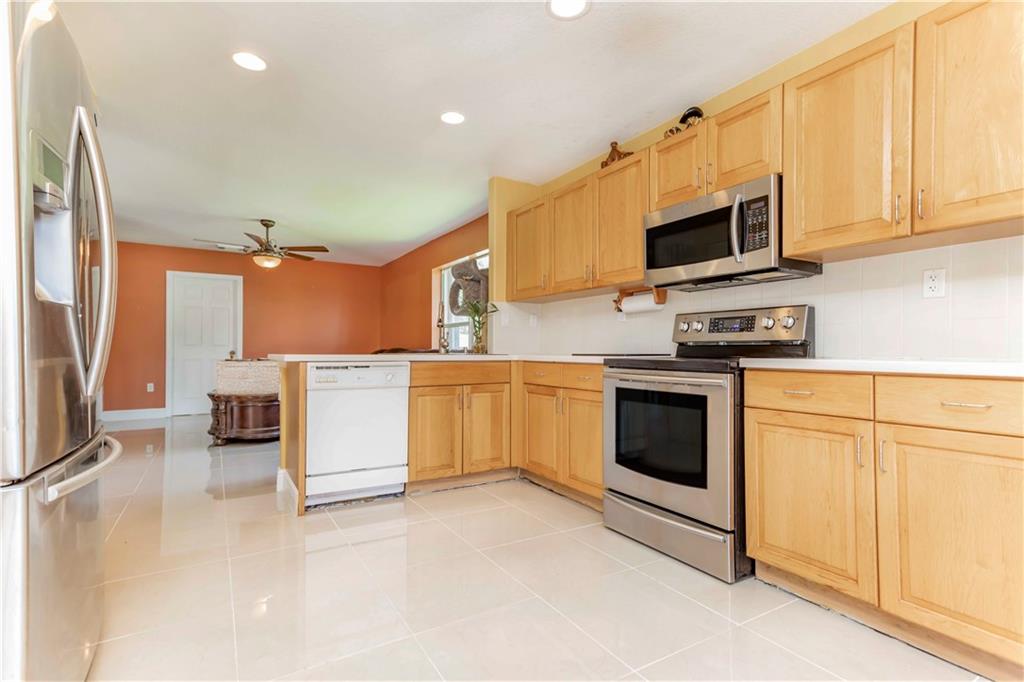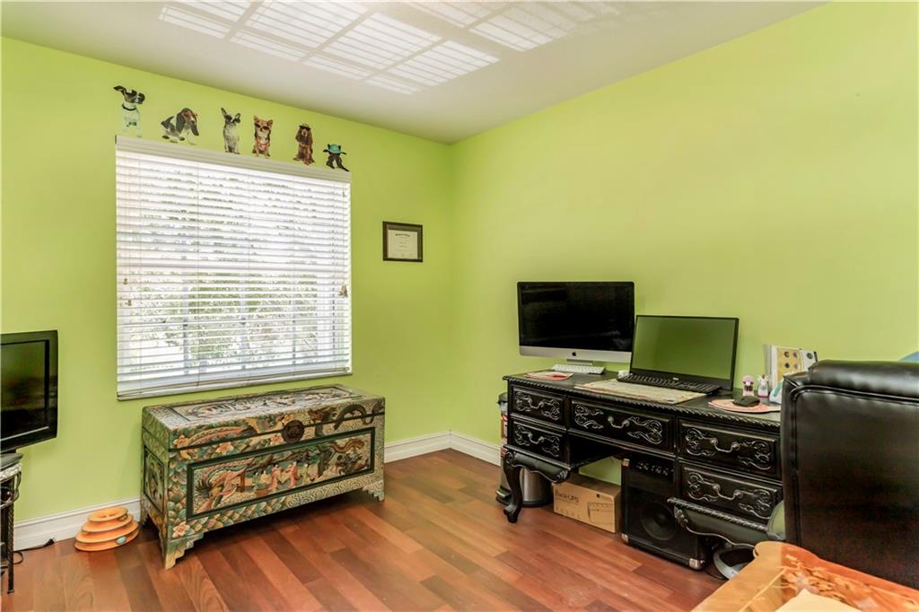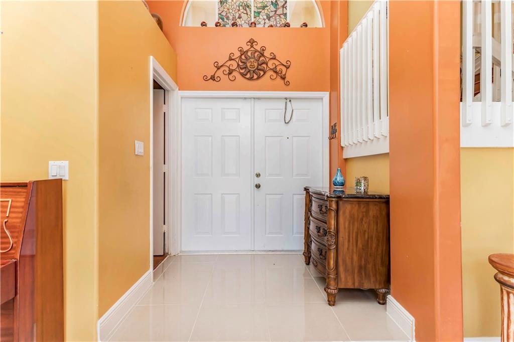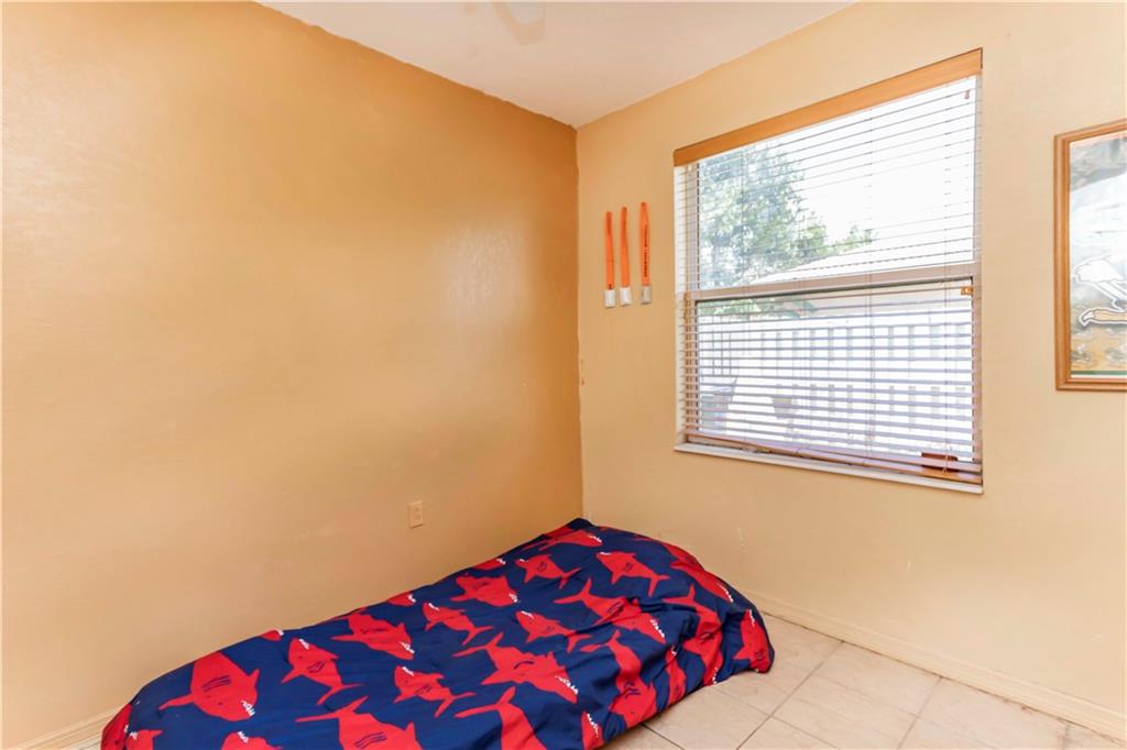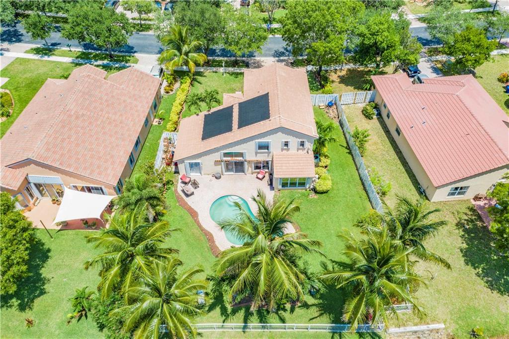 Beautiful 5 bedroom home plus part of garage converted to the playroom. Gorgeous oversized yard with large pool and lake. All new porcelain flooring on lower level. Upper level has wood laminate. A/C & refrigerator are newer. Accordion shutters throughout home. Large eat-in kitchen overlooking pool and lake. 5th bedroom has it's own separate entrance, perfect for a home office.