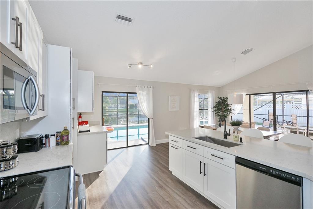 Sparkling waterfront setting plus perfectly remodeled in today's contemporary design make this a perfect choice for the most discriminating buyer! Beautiful wood look Italian Vinyl floors flow throughout the open floor plan. New white gourmet kitchen features quartz counter tops, stainless appliances and spacious breakfast/wine bar. Spacious master suite views the screened pool/patio and waterway. Quiet interior location in wonderful Fox Run, convenient to shopping, schools,parks, Sawgrass Mills, airport etc.