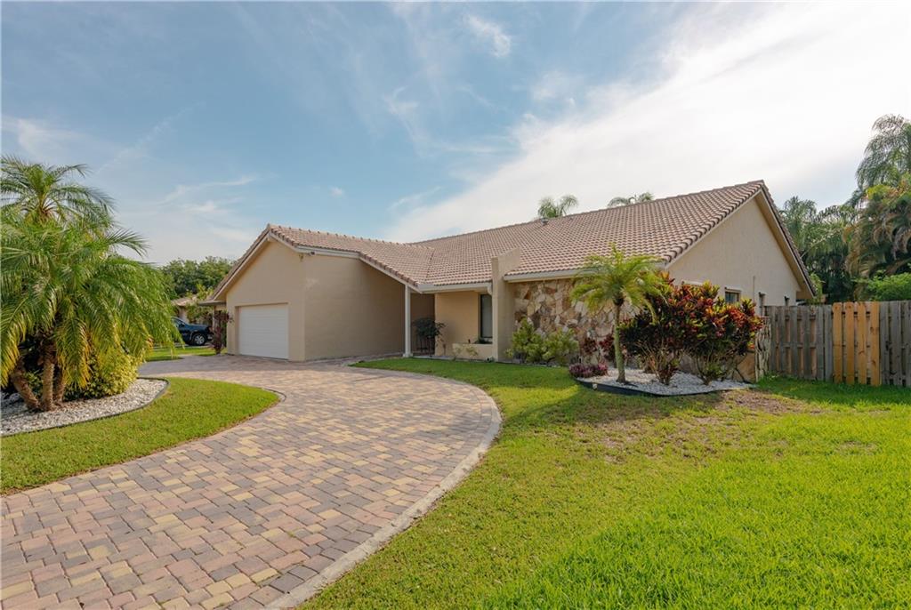 Beautiful 4 bedroom/ 2 bath home on a large lot in the heart of Jacaranda. Bright and spacious, wide open floor plan featuring vaulted ceilings and a skylight with lots of natural light that opens up to a beautiful backyard paradise. Updated, modern open kitchen with cooking island and newer stainless steel appliances. Separate laundry room. Amazing Tropical resort style backyard with a huge lap pool containing a spectacular waterfall, great for entertaining. Neutral Ceramic tile throughout home. 2 car garage that is partially converted.