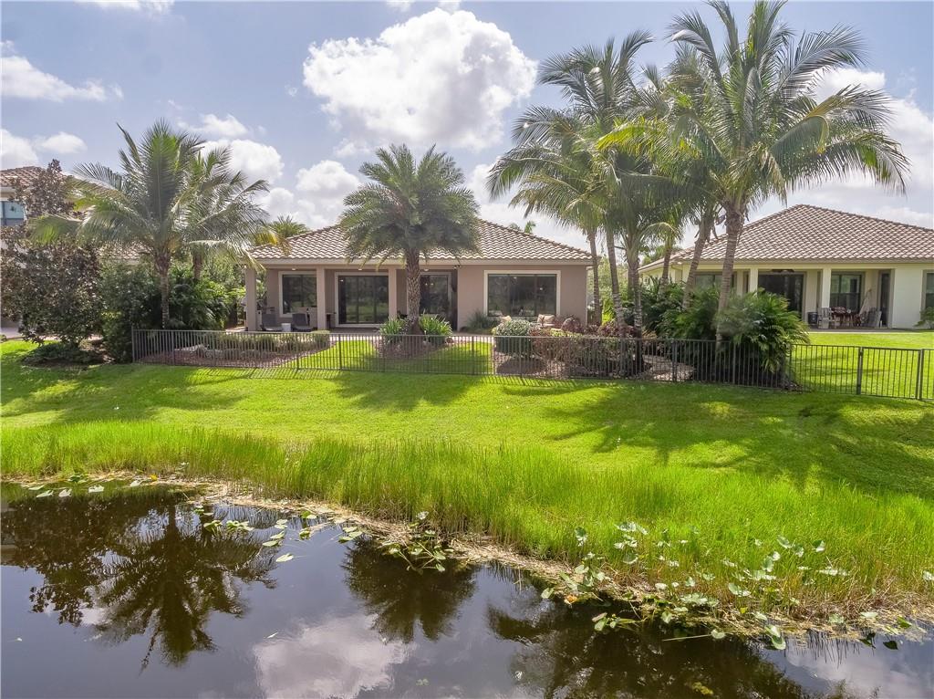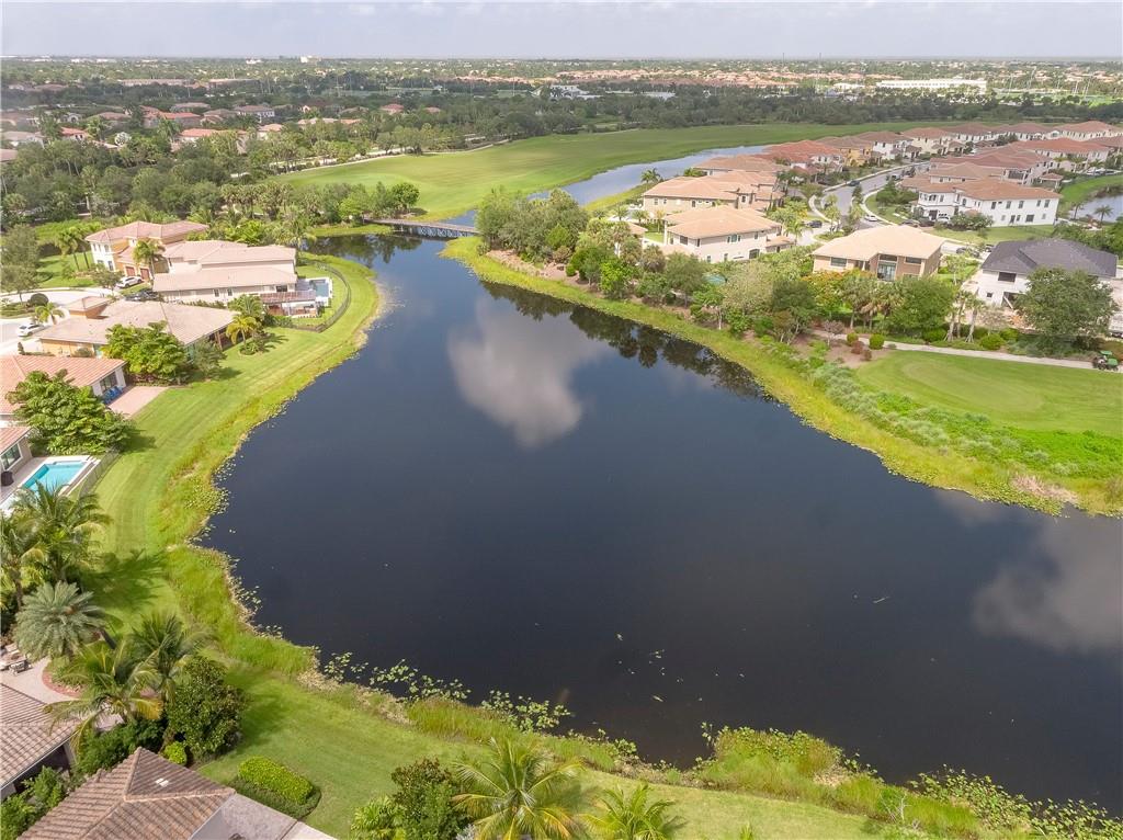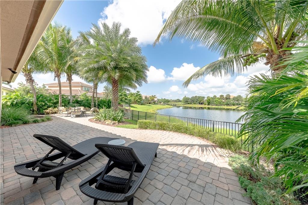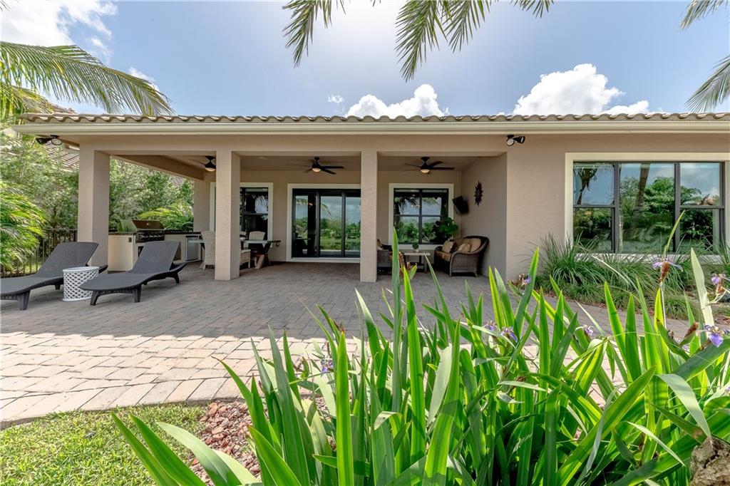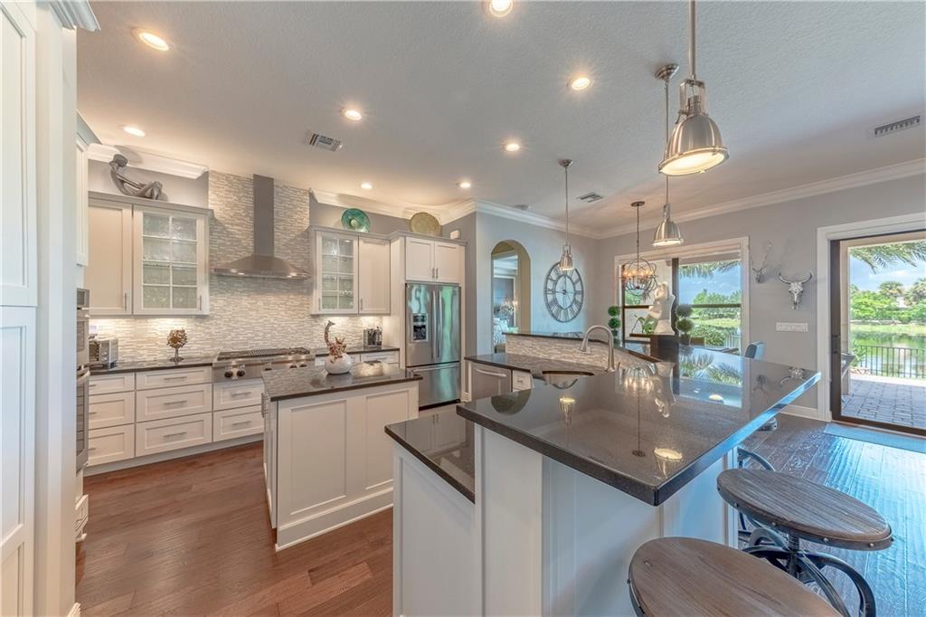 Beyond Beautiful! This 3 bedrooms, 3 bath home has it all. Fully upgraded modern kitchen to die for. Featuring Gas oven, wine refrig. ss appliances, nice size pantry, 42" wood cabinets, granite and more. The oversized master bedroom has built-in closets. Crown molding and wood floors throughout. Large patio with summer kitchen, upgraded landscape, fountain, overlooking the 18th fairway, and water. Exterior landscape lights, gutters, impact window and doors. This stunning home is move in ready. A must see