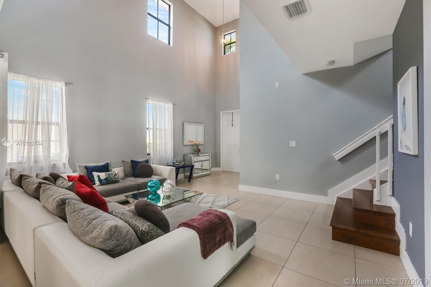 Splendor and luxury await in this open contemporary designed single-family home in the boutique community of Vintage Homes in Doral. 2 master bedroom suites in this 4 bedroom 4 full bathroom executive home. Built-in 2014 the home features tile and wood flooring. Impact windows and door, 2-car garage, beautiful patio ideal for entertaining. Elegant kitchen with wine cooler, wood cabinets, quartz countertops, glass tile backsplash, center island, and a breakfast area. The gated community offers a children's play area, clubhouse overlooking the pool, whirlpool tub and the lake. Fully equipped fitness center, media room with kitchen counter area for entertaining, sun deck, men's and women's locker rooms with showers and saunas. Bike and jogging trails and more you need to see for yourself!