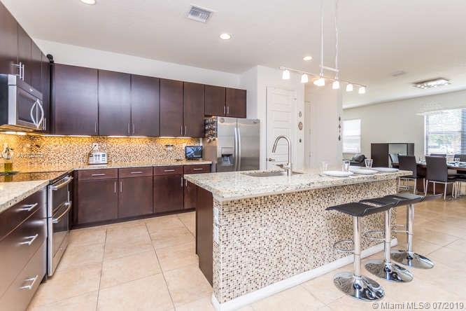 Amazing, single-family, corner home with 5BR/4BA. Recently built with upgraded kitchen cabinets and granite countertops. Beautiful appliances and unique finishes. New double oven and dishwasher! Tile and laminate floors throughout. Larger than standard first floor bathroom and wheelchair accessibility throughout the first floor. Gated community short distance from Aventura, I95 and the Palmetto. Stunning common areas with 2 playgrounds, walking and jogging trails with exercise station and large community pool. A wonderful home to raise a growing family with enough space for guests! Maintenance includes cable and internet!
