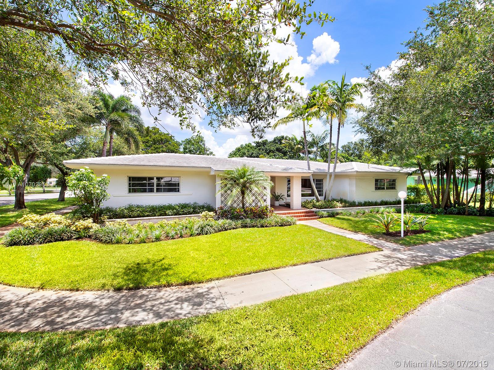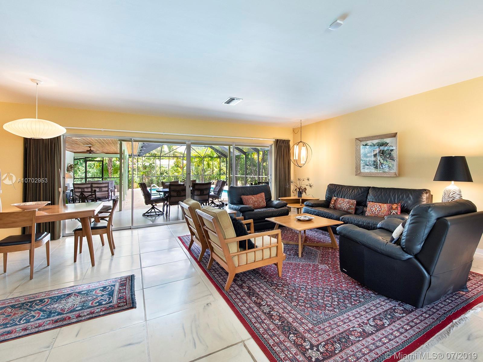 Mimo delight, this home is a modern beauty with amazingly large bedrooms, loads of closet space and beautiful floor plan. All living areas overlook large pool and covered patio area with ultimate privacy. Large formal entry, living/dining with sliding doors along the back that open to pool, patio and entertainment area. Beautiful eat-in kitchen with sliding doors to outdoor pool and patio. Huge laundry/pantry and oversized 2 car garage. True 4 bedroom, 3 with on suite baths and ½ bath. Mimo integrity has been maintained and lovingly cared for. If you like Mimo, you will fall in love. As per tax roll Liv area sf 2,793, Adj sf 3,329 (includes 50% of garage/33% of covered porches) Total sf 4,137.