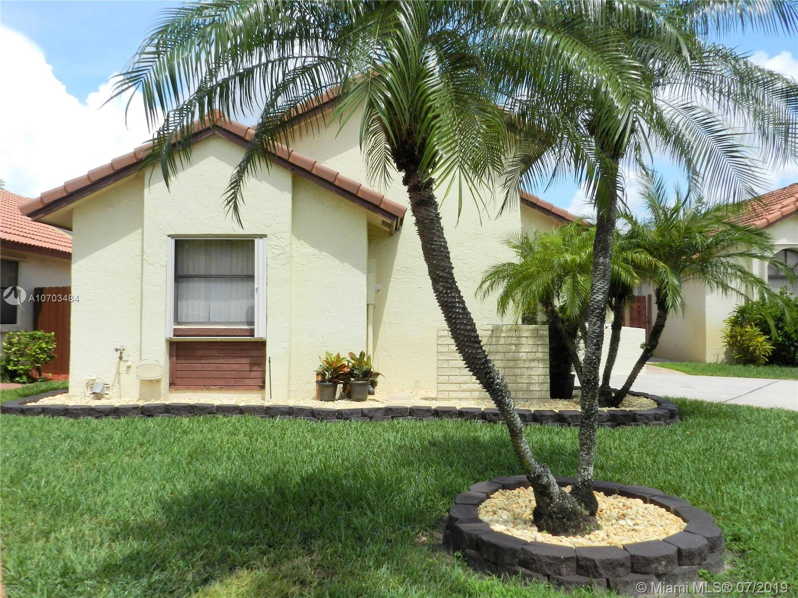 Buyer financing shaky. Back up offers encouraged. Single family home in the heart of Pembroke Pines! Gorgeous kitchen remodel with wood cabinetry, granite counters, custom lighting, and stainless steel appliances *Spacious great room with vaulted ceilings *Master bedroom with his & hers walk-in closets and sliders out to private backyard *Master bathroom with dual sinks and a roman tub *Wood laminate floors and walk in closet in 2nd bedroom *Covered patio off of living room and master bedroom *Pavered patio off of kitchen eat in area *Fenced yard *Accordian Shutter *Newer garage door *Roof replaced 2007 *Garage is oversized allowing space for car & storage *Pull down attic access *Tot lot nearby *Walking distance to shopping & restaurants