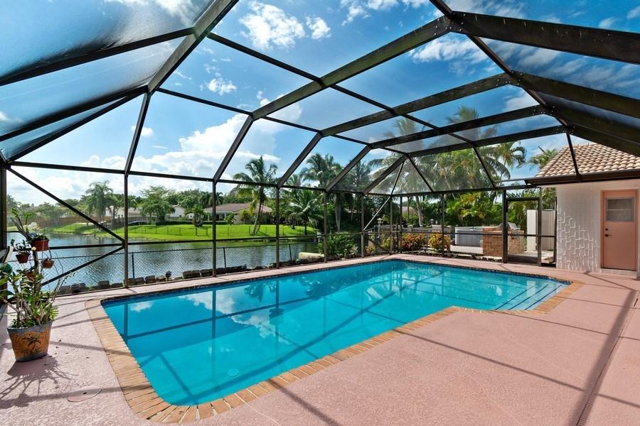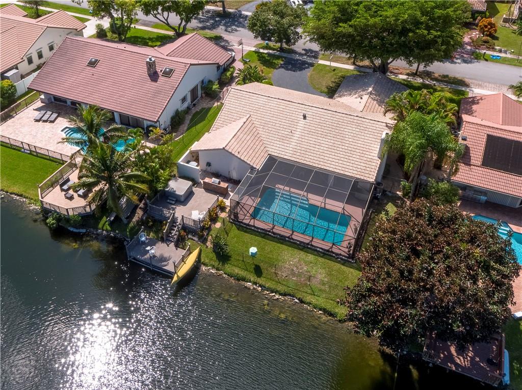 REDUCED! BRING YOUR OFFER NOW on this 4/2 split BR plan w/dome screened pool on one of the prettiest waterfront lots and streets in Jacaranda Lakes! Ideal East/West exposure w/back yard facing East perfect to enjoy the beautiful morning sunrise while in the afternoon enjoy your backyard without getting baked by the sun that sets to your west! ABSOLUTELY KNOCK OUT VIEW OF THE LENGTH OF THE WIDE CANAL/LAKE from back of house! This back yard is your retreat to relaxation-fish from your dock, soak in your hot tub or swim year round in your heated pool! Fully remodeled 2nd bath 2019, roof replaced in 2005, Pool's surface redone Feb.'19, new pool pump+new fan for heat pump 2019, and a new hurricane rated garage door '19, No popcorn ceilings, laminate floors and plantation shutters in BR's. HURRY