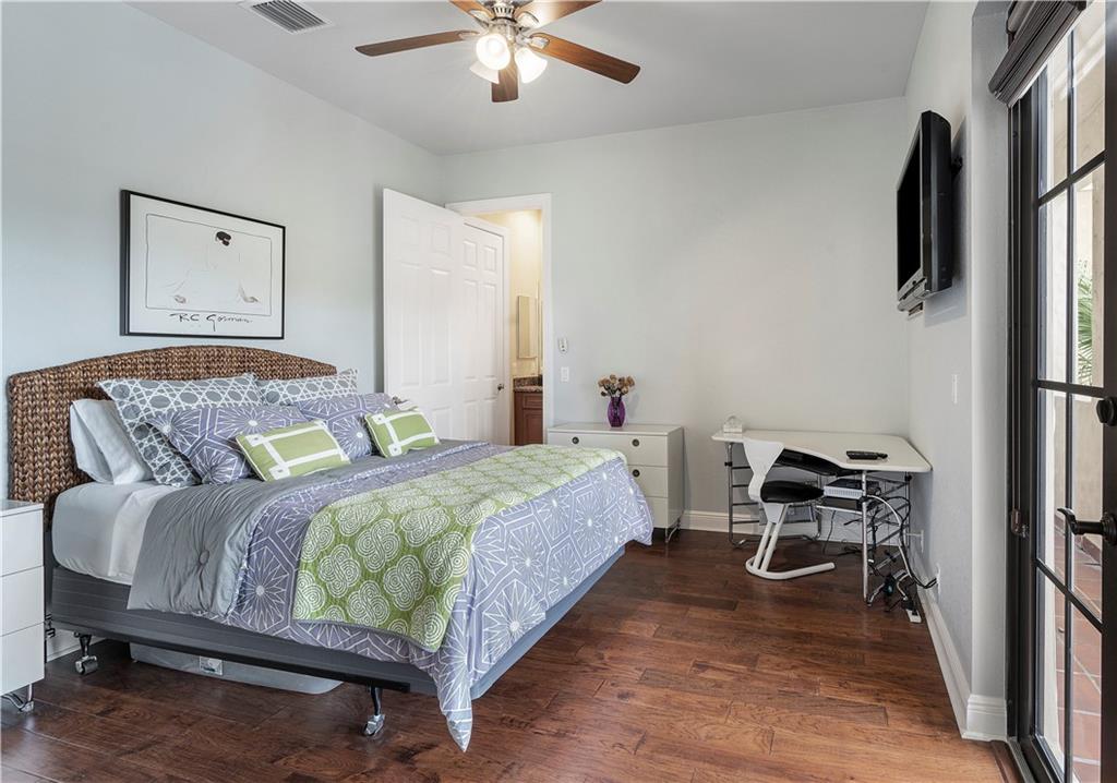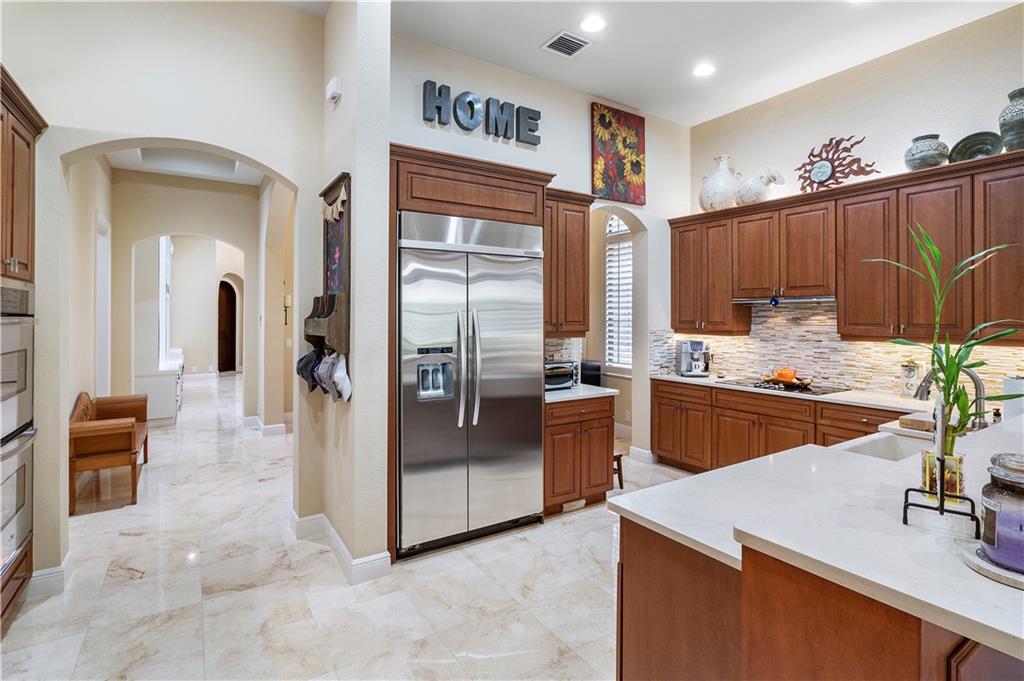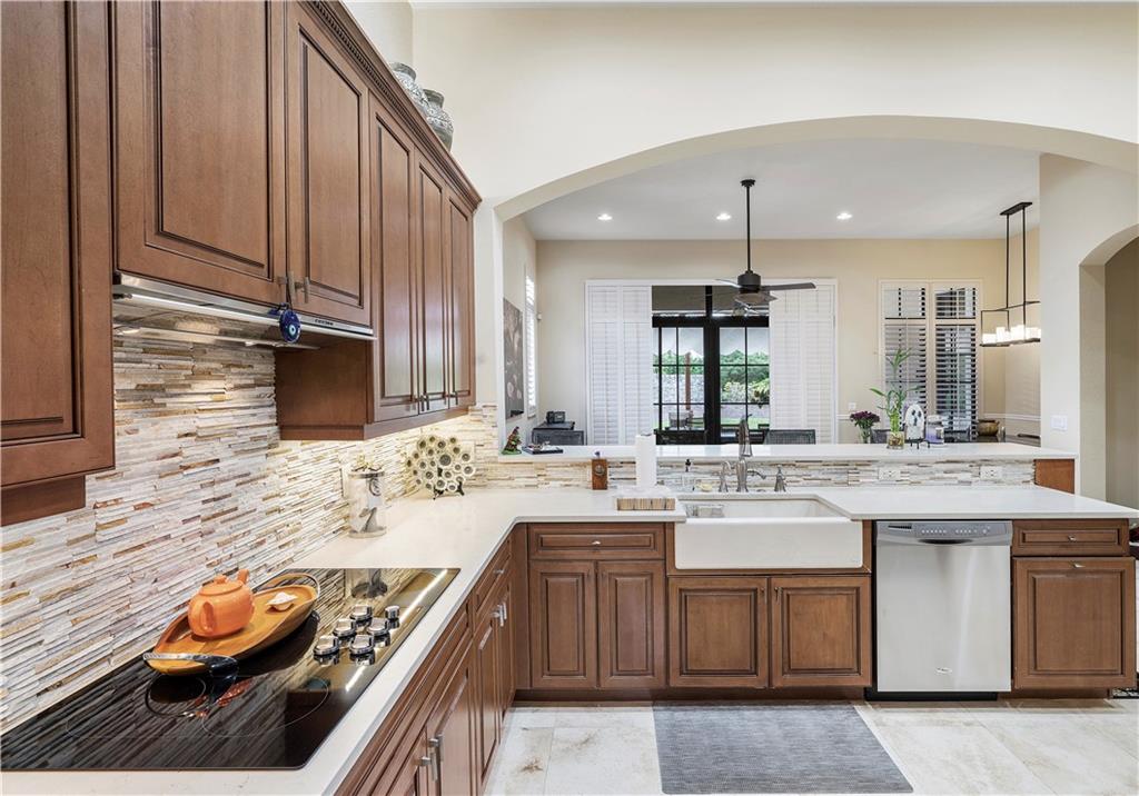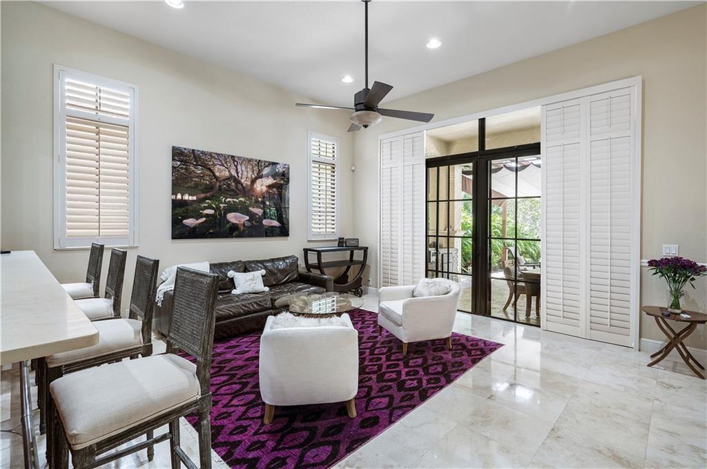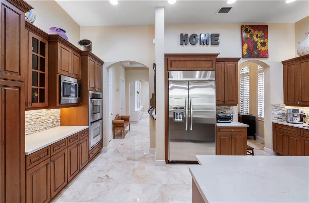 Spacious & upgraded home in PGCC! Beautiful wood staircase w/ wrought iron rails leads to 2nd floor. Marble flooring throughout 1st floor. Kitchen has new quartz countertops, upgraded backsplash, wood cabinets & stainless steel appliances. Expanded master bedroom & master bath w/jacuzzi tub & step down shower. New wood flooring upstairs. 5th bedroom setup as huge media/movie room. $50k solar panels installed so electric bill averages ten dollars per month. Movie room includes projector & 120" screen. New circular driveway & awnings in backyard. Impact glass windows & doors, plantation shutters throughout. Freshly painted & move in ready . Outdoor BBQ area setup in back w/ view of waterfall features at Parkland Golf. Enjoy the resort style pool areas & amenities of Parkland Golf.