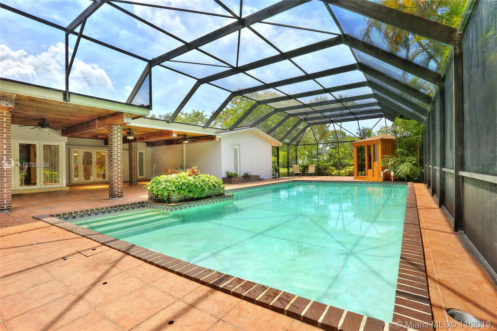 BEAUTIFUL, SPACIOUS 5B/3B HOME FOR GROWING FAMILY nestled on a builders half-acre lot IN HEART OF PINECREST...quiet low-traffic street in one of Pinecrest's nicest neighborhoods. Updates include PVC pipes and impact windows and doors. Large, efficiently designed and centrally located eat-in kitchen that flows seamlessly into a large family room. Kitchen, family, dining, & living rooms open to immense covered terrace. 20x40 pool & private sauna. Large and elegant yet warm an cozy! This home accommodates entertaining on a grand scale or small intimate dinner for two. Split floor plan includes large corner master suite with walk-in closet and adjoining office /nursery/second walk-in closet. Master bath with jetted tub & steam shower!