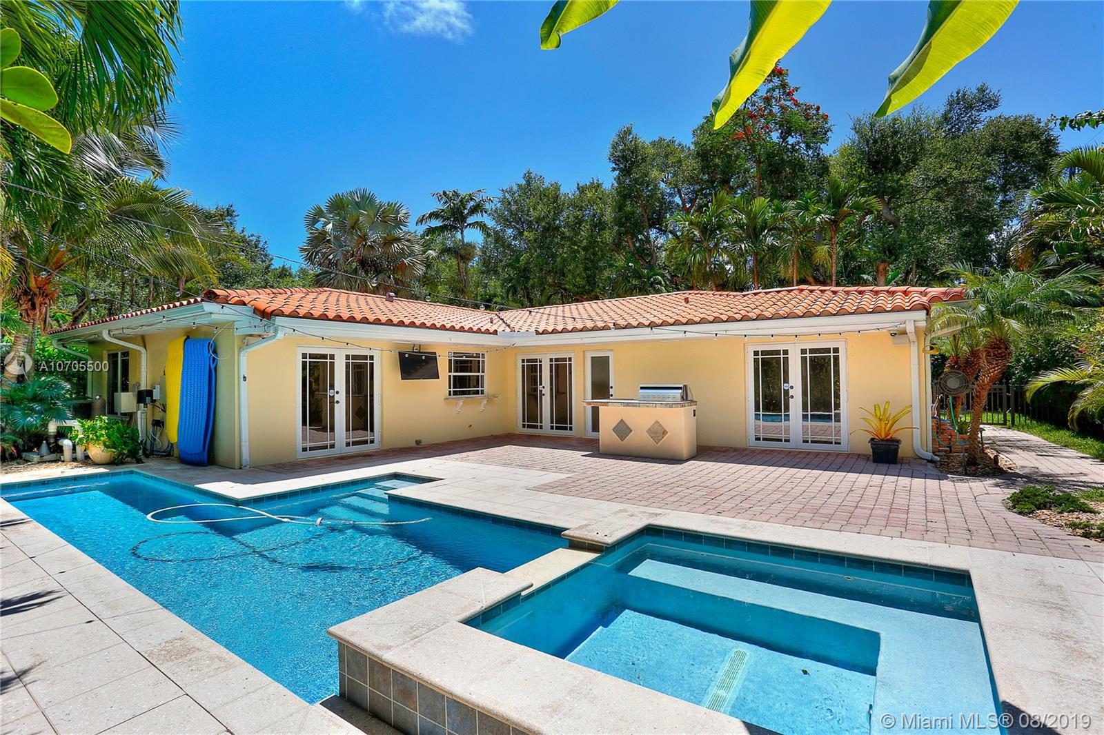 Proudly own this exceptional South Gables residence beautifully updated with pretty marble floors throughout and featuring 3 bedrooms, 2 baths + office / den. Foyer entry to formal living & dining rooms. A cozy wood/ granite/ stainless kitchen opens to a spacious family room with access outdoors to a resort-style pool w/ spa, built-in bar with stainless barbecue ideal for entertaining in a private, landscaped backyard. Impressive curb appeal w/ oversized paved driveway with electric gate provides parking for a crowd on game day. This perfectly maintained home is situated high on the ridge (zone x) on a quiet street near parks, Coconut Grove & scenic Old Cutler Rd. Easy appts. and a pleasure to show!