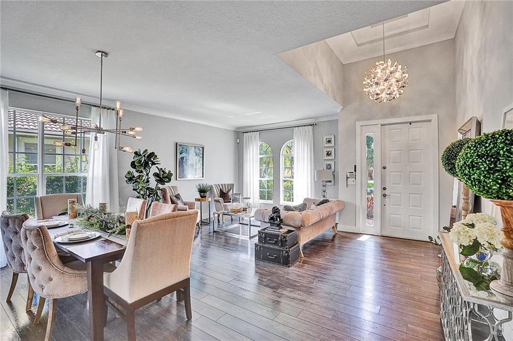 A SENSATIONAL MIX OF CONTEMPORARY ELEMENTS BLEND SEAMLESSLY INTO THIS PROFESSIONALLY DESIGNED 5BD/3BA/3 CAR GARAGE GRAND RESERVE HOME. The designer's choice interior infuses tasteful textures & custom comforts. Modern glamour displays sophistication awash in hues of white & gray. A premium was placed on high-quality materials used. The open kitchen showcases white cabinets, an oversized island, quartz tops & SS appliances bringing a modern elegance to the streamlined culinary space. Tranquility prevails in the master & its spa-like bath w/notable design details such as framless shower & stunning freeform tub. Other feat. incld: 1st floor bed/bath, laminate floors, accordion shutters, new Carrier A/C’s, new water heater, generator, & fully fenced landscaped yard. 24hr Guard Gated Community!