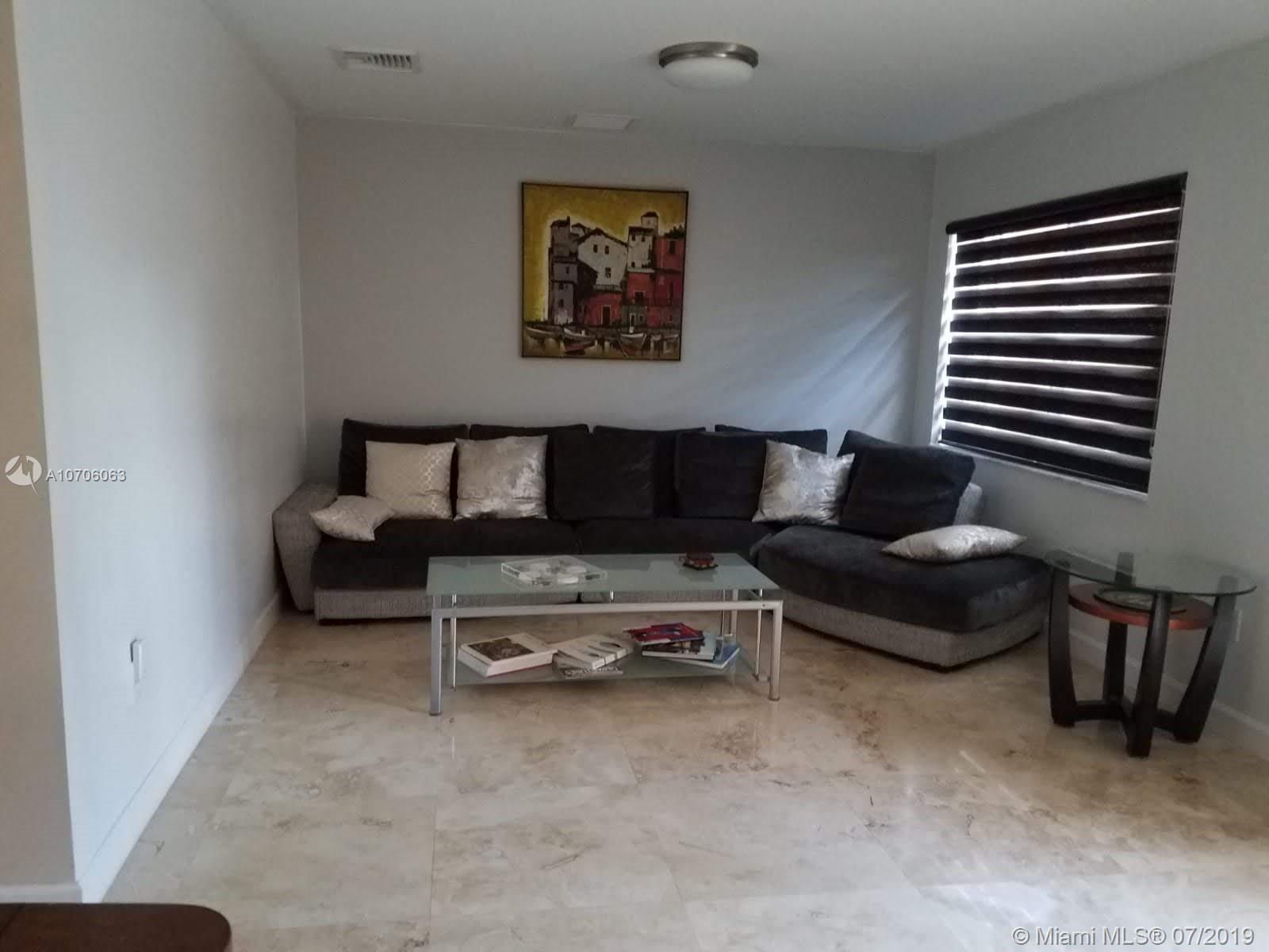 Ready to move in and rarely available! 3 Bedrooms and 3 Bathrooms, completely renovated townhome with newly installed travertine floors throughout first floor and laminate wood in 2nd floor. Kitchen completely remodeled with dark wood and granite counter-tops. Marble pavers in private backyard, high efficiency central air conditioner (lowers electricity bill by half), camera security system, accordion hurricane shutters, fully renovated master bathroom and guest bathroom. Beautiful light filtering zebra blinds on the first floor, LED lighting throughout first floor, renovated front porch with travertine tiles and newly installed grass in entrance.
