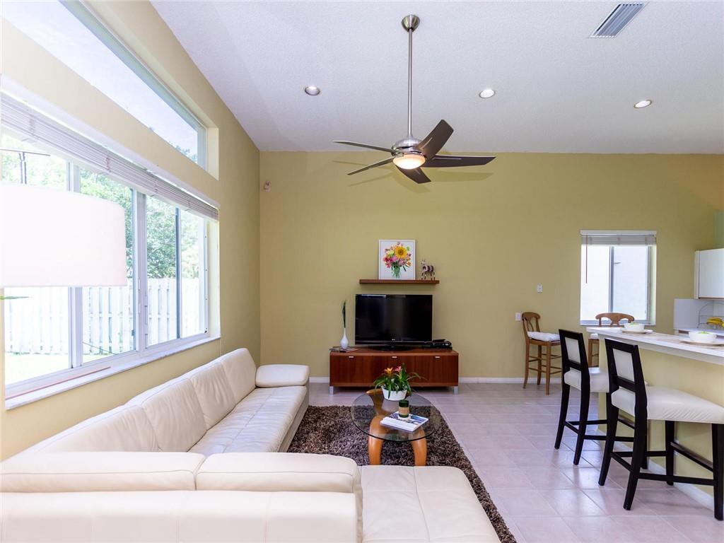 Beautifully maintained 4Bed/2.5Ba/2CG single story residence with covered patio, situated on private berm lot in desirable enclave of Camellia Island, in the very heart of Weston! Spacious split floor plan, with high volume ceilings and tile flooring throughout living area. Kitchen with snack bar & breakfast bar niche features newer stainless steel appliances including newer refrig & dishwasher plus new oven 2019. Pristine master bedroom has gorgeous wood lam flooring, walk-in closets and gorgeous renovated master bathroom. Other newer features include new hot water heater 2018, washer/dryer 2017 & AC 2012. Low quarterly HOA includes 24hr guard gate & lovely neighborhood park just up the road. Nearby trendy Weston Town Center & world class recreational facilities! A+ schools! Welcome Home!