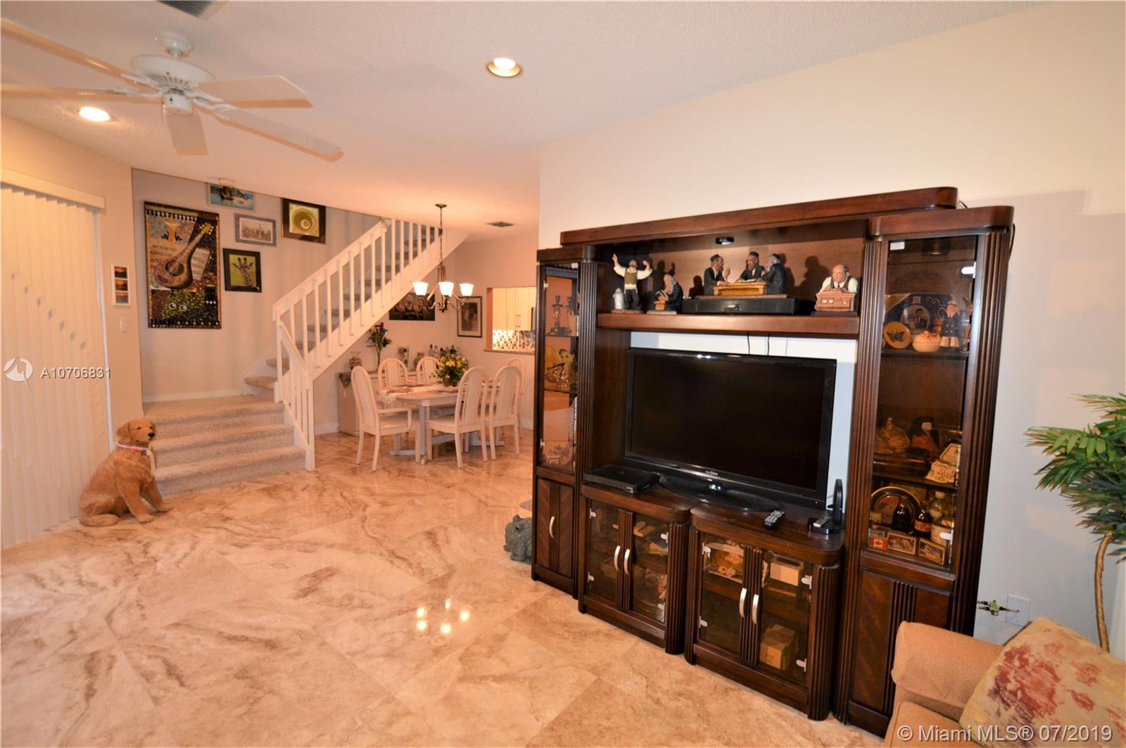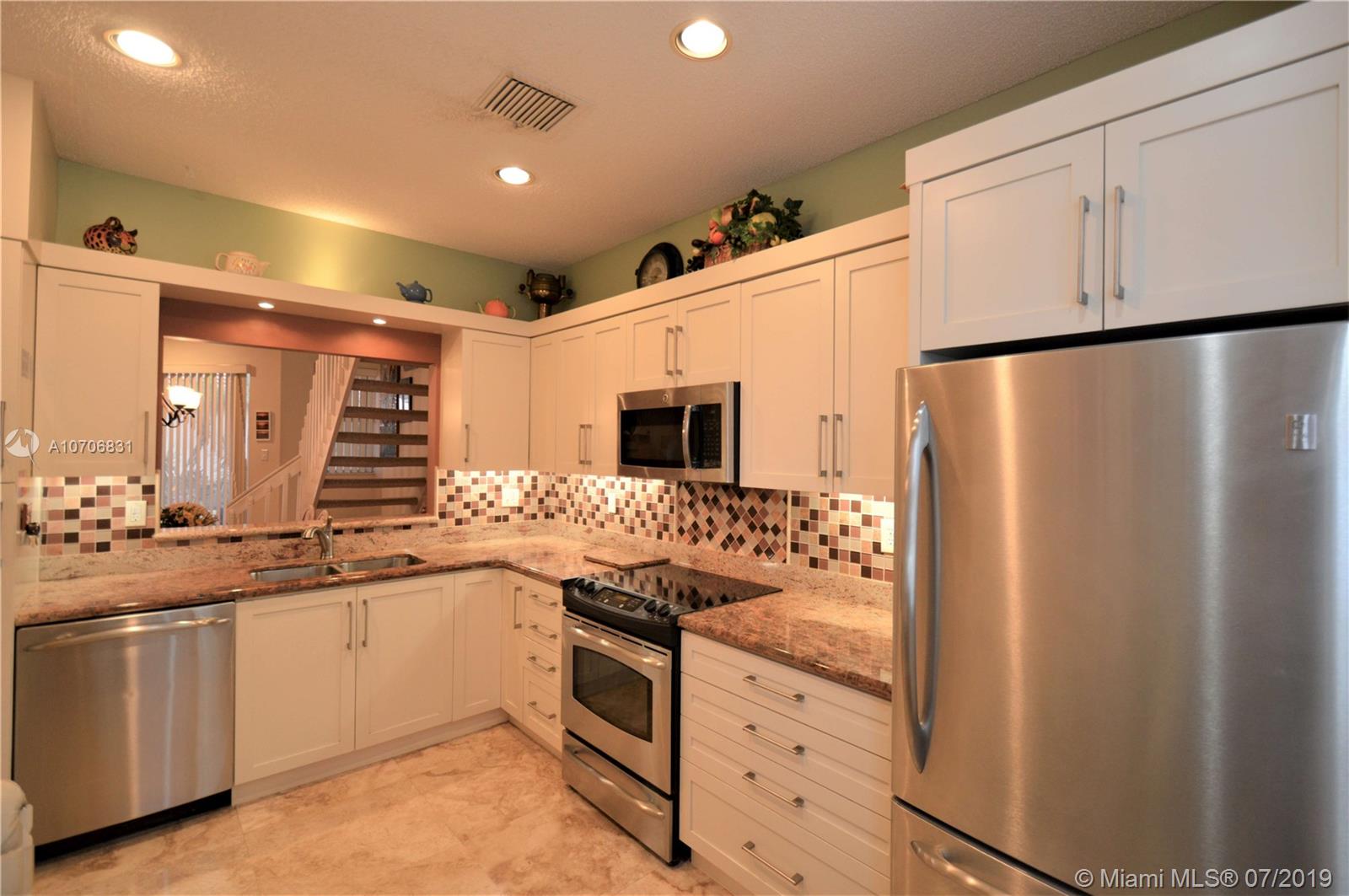 Beautifully maintained 3/3 in the gated community of the Park in Rock Creek in highly desirable Cooper City. Original Owners have taken great care of this gem and updated it beautifully. Kitchen has granite counter tops, S/S appliances and pull out shelving. Downstairs flooring is well maintained marble. Roof and water heater are each 2 years old. One bathroom upgraded. Accordion shutters throughout. Private back yard with room to barbeque or to relax and unwind and take up gardening. Washer and dryer are located upstairs. Community pool is across the street. This home has all the comforts of relaxed living and is located near shopping, highways and the hospital. Also located on same electric grid as the police and fire station. A rated schools. Walking distance to houses of worship.