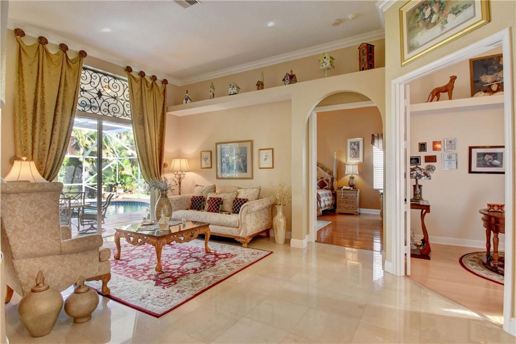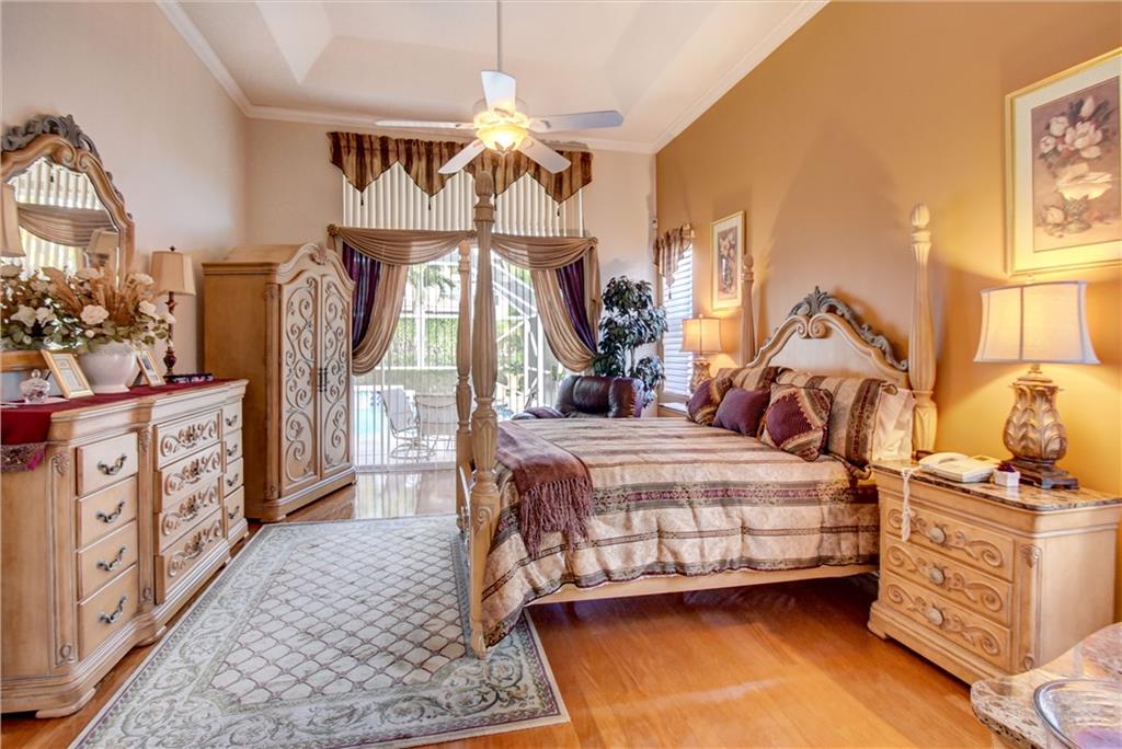 Magnificent 6/4 home in highly sought after gated Fox Ridge community in Parkland. This pool home features: BRAND NEW ROOF, (2) BRAND NEW split A/C system, accordion shutters, impact rated garage doors, updated kitchen w/42" wood cabinets & SS appliances, bay window, Marble floors in living areas, recessed lights, crown molding, Cabana bath, Mother in Law suite, real wood floors in bedrooms, His/Her walk in closets & tray ceiling in Master suite, master bath boasts dual sinks & vanity, stamped concrete patio, fenced in yard and screened-in patio & pool. Close to top rated schools, shopping, dining and highway. Custom window treatments do not convey.