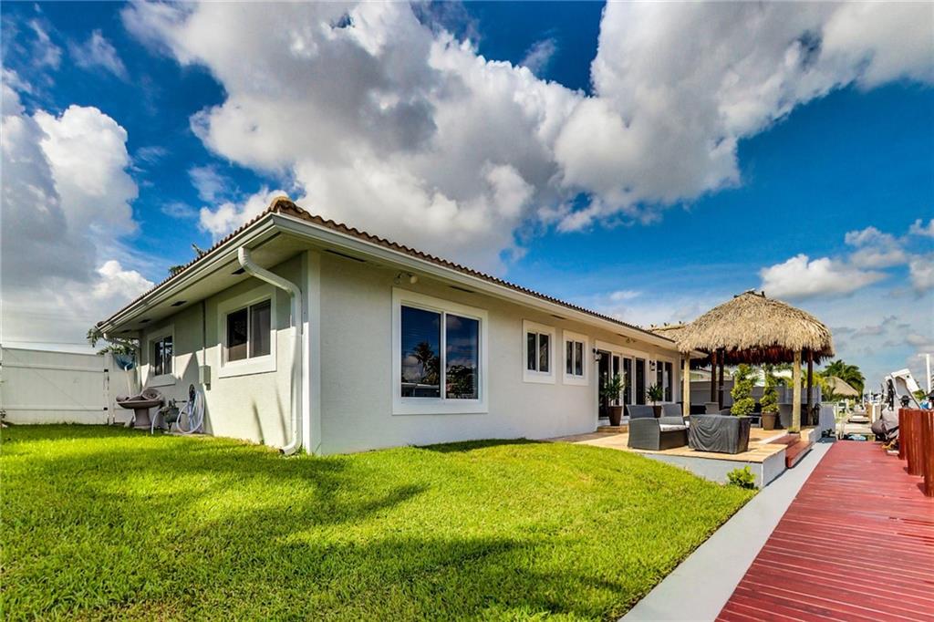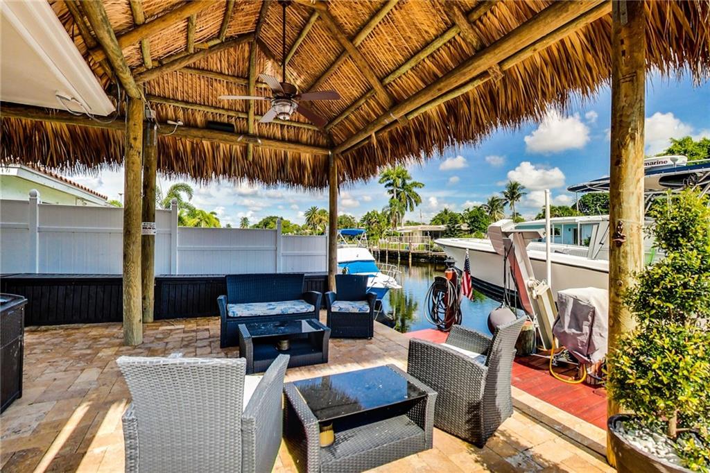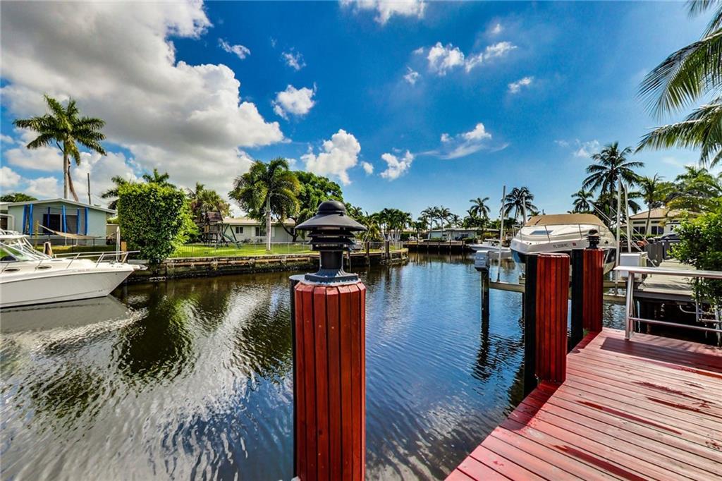 Enjoy your new life style in Pompano Beach with this Spectacular 3 bed 2 bath 1 car garage Waterfront Home at the end of Cul-de-sac! Walk on your 69 foot dock, lower your boat from the 12k pound Elevator lift, and go to the ocean to fish/dive or hit the intercoastal for waterfront dining and fun. Come home to the backyard Tiki Hut for relaxing sunsets or entertaining guests. The Patio has stone pavers and there is room for a well designed pool. PGT Impact Windows, Newer Kitchen, 1 year old Trane Air-conditioner, Updated Insulation, Real Seamless Gutters. Fixed Bridge? Yes. Low Tide Clearance Currently approximately 15 feet at US1 and 12 feet on 5th Ave. 5th Ave bridge to be repaired / replaced soon (according to the City of Pompano Beach) and will match US1 Bridge Height. Owner Agent.
