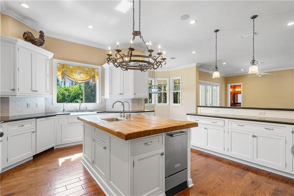 Breathtaking craftsman style home w/coastal influences. Elegant & Sophisticated yet Relaxed & Sun Drenched. Sprawling 1.72 acre lot. Welcoming front porch w/Chicago brick. Crisp White kitchen w/huge butcher block island, farmhouse sink, gas stove w/griddle, 2 dishwashers, 42 in refrig., butler pantry & work station. Luxurious master suite w/recently renovated & jaw dropping master bath! Free standing tub, His & her vanities, Huge shower w/double rain shower heads, Stunning marble & tile detail. Guest suite w/Full kitchen & Bathroom Expansive screened porch w/Chicago Brick, 44x20 Pool w/sunning shelf, Media/Rec room, Hand scraped plank hardwood flooring, Fireplace, Impact windows, Generator. Beautifully large indoor & outdoor living spaces make it perfect for gathering the ones you love!
