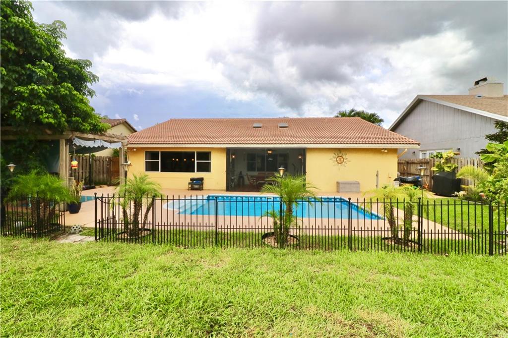 Rarely available home on a quiet, canal in Amberwoods Community of central Boca Raton. This home offers a stacked three bedroom floor plan, 2-and-a-half bathrooms, vaulted ceilings with tongue and groove ceilings in the family and dining areas, indoor laundry room, 2 car garage, plus a small office/sewing/craft bonus room. Outdoor screened enclosure plus a private pergola which overlooks the pool and views of the peaceful Florida canal and nature. 1 A/C updated in 2018. Roof built in 2006 and looks new. Close access to highways, restaurants, A-plus schools, Town Center Mall, place of worships and much more. HOA only $450 per year. No lease until owned 2 years.