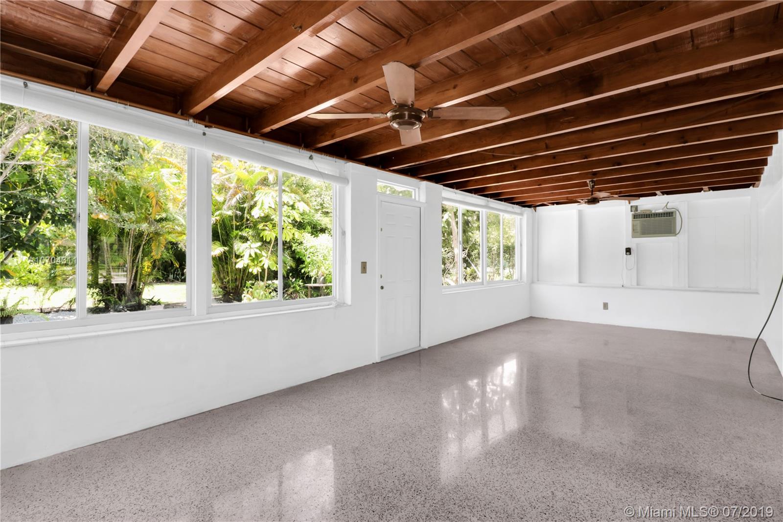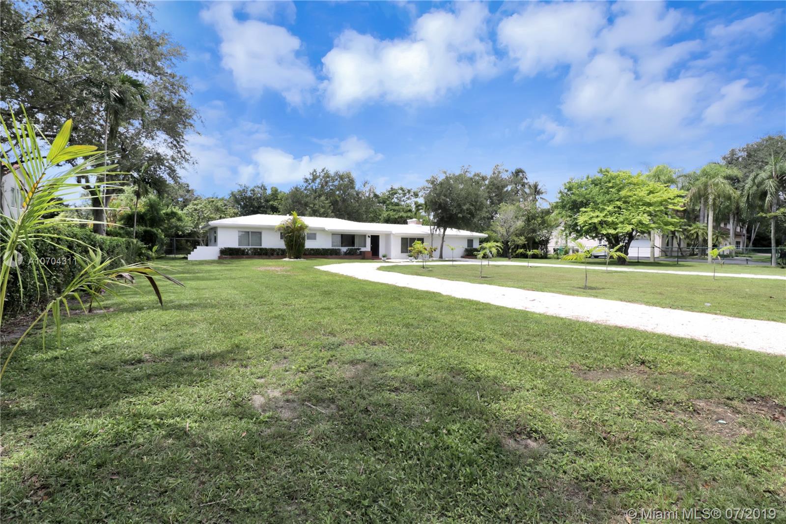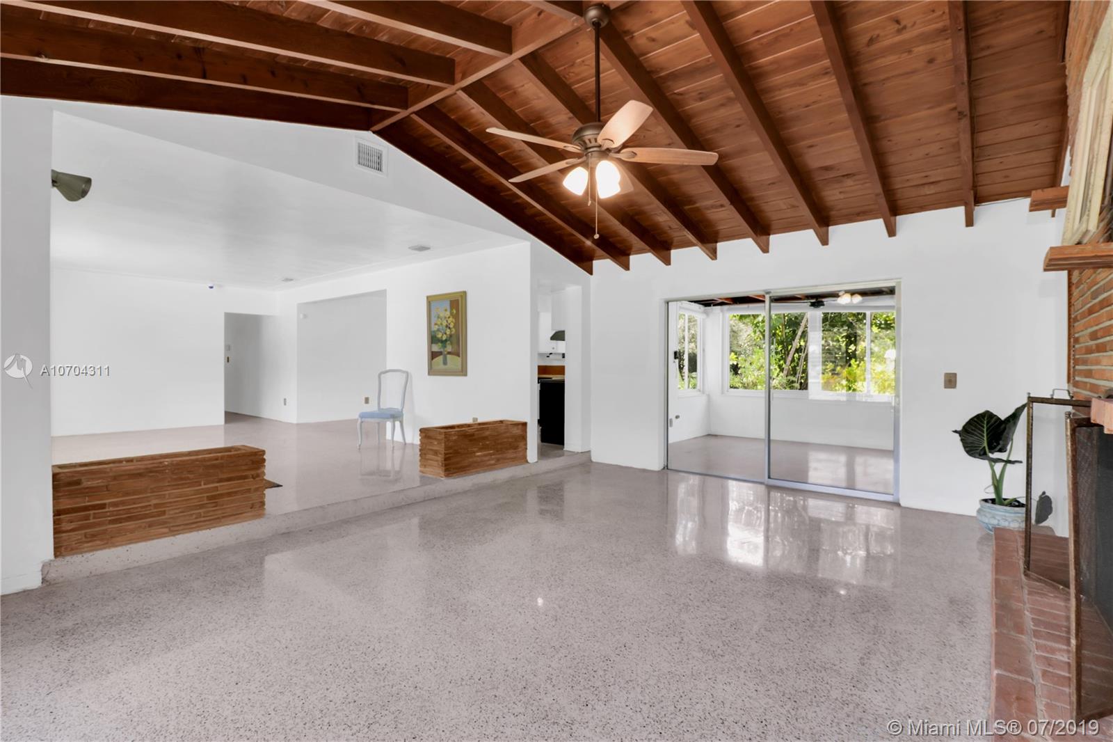 One owner-occupied home on builder’s acre in great location with accessibility to top rated public and private schools. Located close to parks, shopping, restaurants, fitness centers, local businesses, and major roads. This well constructed home has withstood the test of time. Plenty of opportunity to expand or add your personal touch to make this Midcentury Ranch style house with high beam ceilings, polished terrazzo floors, and fireplace, your own. Immense property surrounding house with mature trees offering privacy and options to add a pool, tennis court, and your choice of outdoor living amenities. Great opportunity to live in Pinecrest! Make an appointment to stop by and discover all the possibilities this home has to offer.