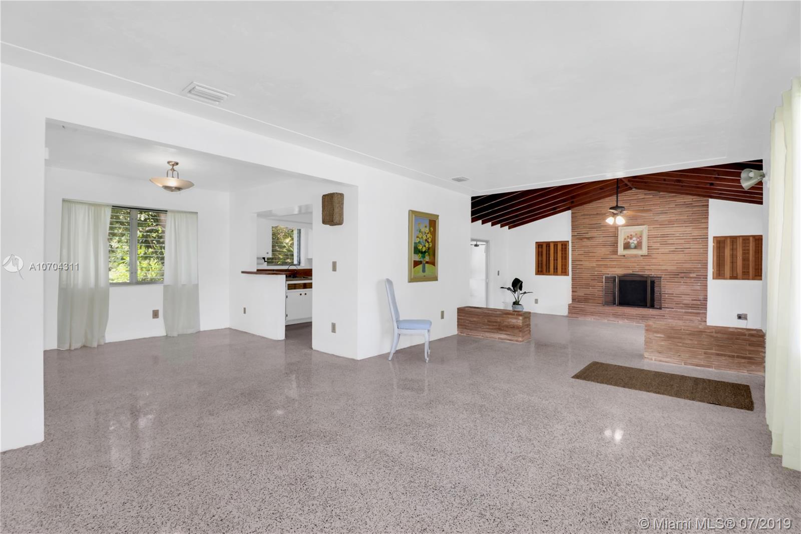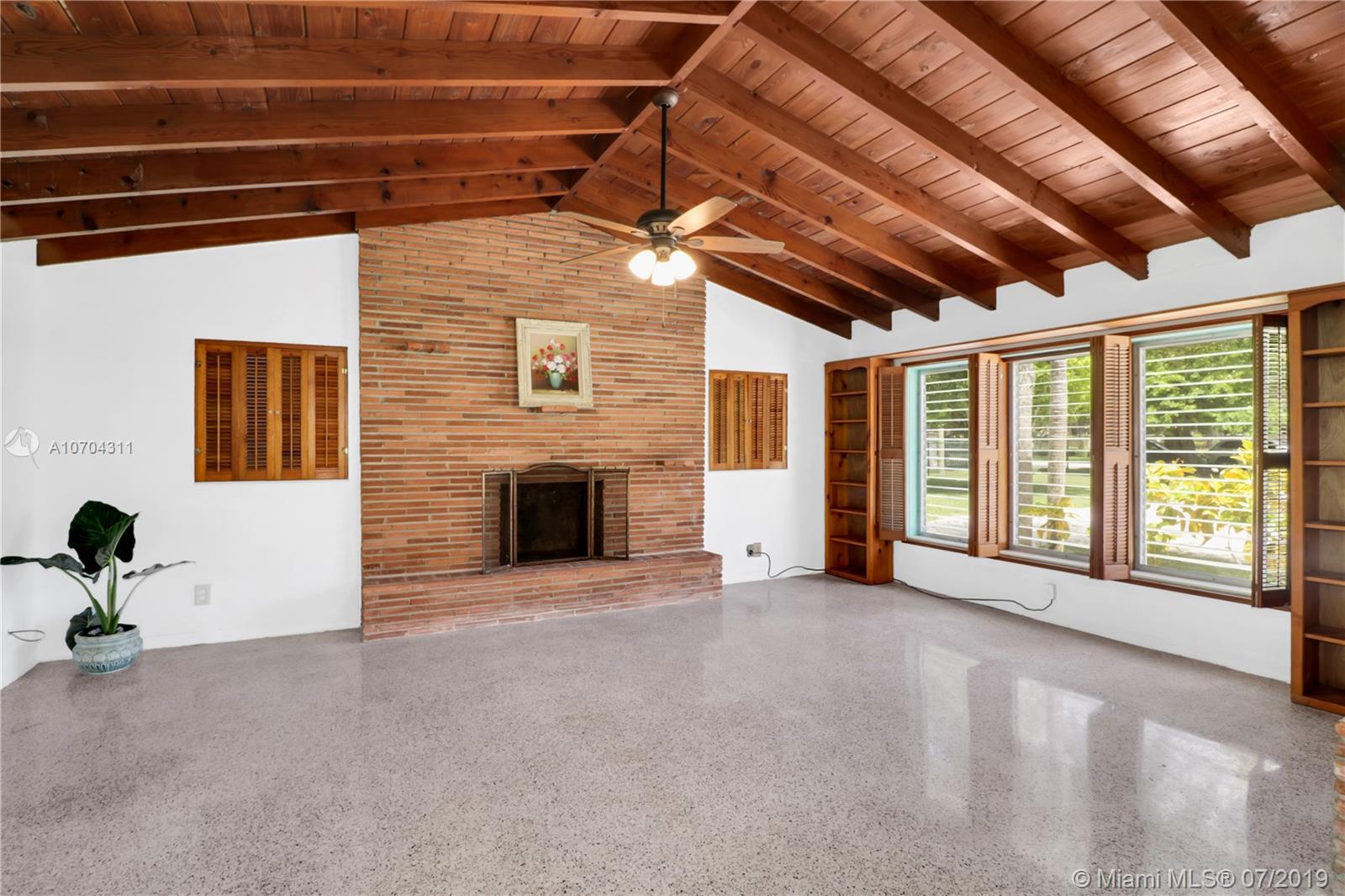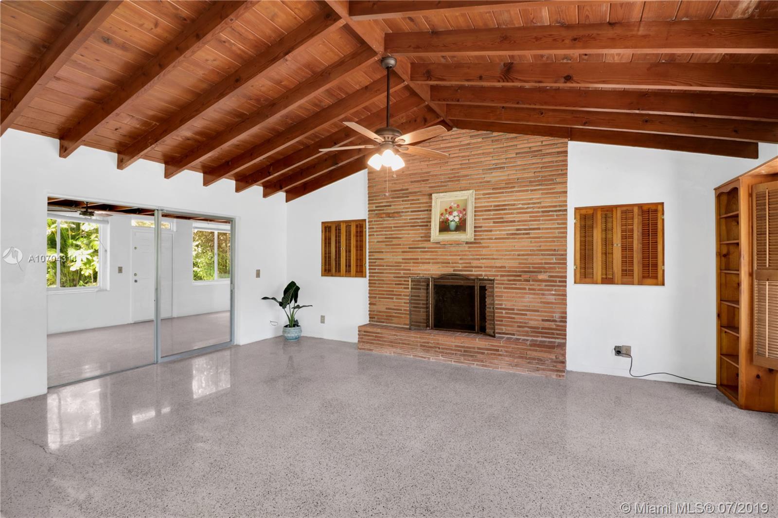 One owner-occupied home on builder’s acre in great location with accessibility to top rated public and private schools. Located close to parks, shopping, restaurants, fitness centers, local businesses, and major roads. This well constructed home has withstood the test of time. Plenty of opportunity to expand or add your personal touch to make this Midcentury Ranch style house with high beam ceilings, polished terrazzo floors, and fireplace, your own. Immense property surrounding house with mature trees offering privacy and options to add a pool, tennis court, and your choice of outdoor living amenities. Great opportunity to live in Pinecrest! Make an appointment to stop by and discover all the possibilities this home has to offer.