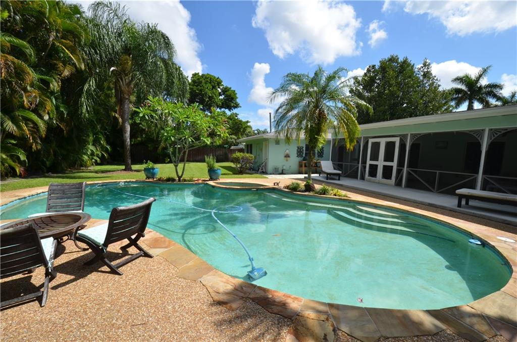 PRICE REDUCTION on a RARE opportunity to own an oversized, DOUBLE LOT in RIVER OAKS! Best described as a tropical oasis, this home offers an expansive and private garden setting. With a pool, BBQ pit and outdoor screened in dining area, it is perfect for relaxing and entertaining. The family room overlooks lush outdoor greenery and features an indoor fireplace, dining room and kitchen with a gas range. The two car garage also provides ample storage space. And, this property is fenced in for privacy and security. If you are seeking convenience, look no further as you will be living in close proximity to Las Olas, the Fort Lauderdale/Hollywood Int'l. Airport and I-95/595. And, due to the large lot size, you might even consider building your own customized home on this property.