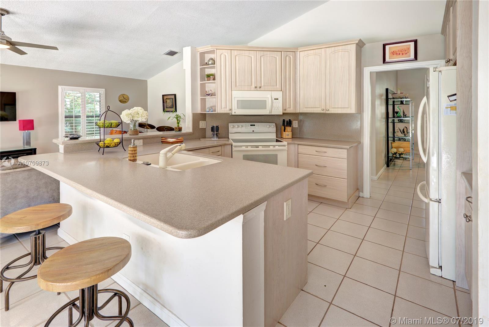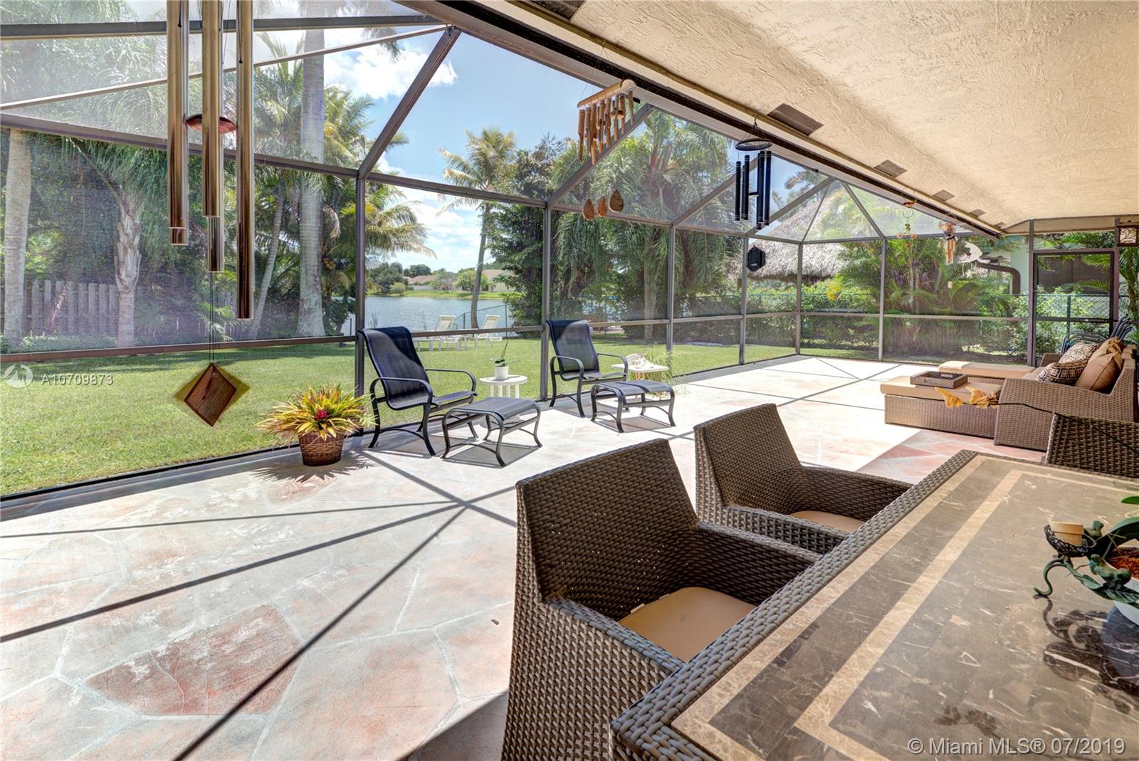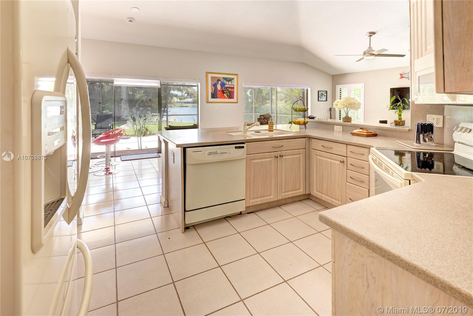 Come fall in love with this Gorgeous 4 bedroom 2 bathroom home nestled in one of the most sought after locations of Cooper City. This Gem features bright and spacious floor-plan with high volume ceilings and a perfect layout. The impressive water views make the living room the perfect place to relax. Large family room opens to the roomy kitchen with high volume cabinetry and Corian countertops. Just off the kitchen is a comfortable breakfast nook displaying expansive views of the lake and charming backyard. Unwind and adore the tranquil views in this Oversized Master Suite with large walk-in closet and cozy bathroom. The windows and doors are fashionably completed with designer window treatments and Plantation Shutters Outside features an over-sized screened-in patio and huge backyard.