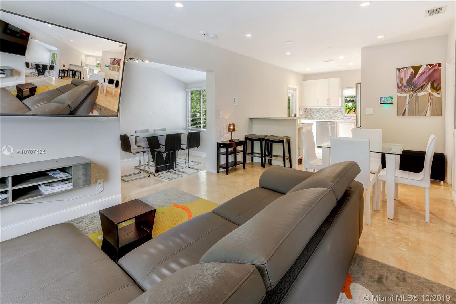 Beautiful move-in ready 3BED/2BATH in the North Grove. House has many upgrades such as polished Travertine floors, brand new modern kitchen and bathrooms. Extra bonus room that can be used as in-law quarters or maids room (separate entrance). Large 7500 sqft lot with big backyard that features a summer kitchen and lots of green space! Property has approved plans for a Pool and deposit has been already paid by the seller. Amazing location - only one neighbor as this is a corner lot accessible from two streets. Lots of room for expansion. Close to Downtown, the Marina and the Beaches! A Beautiful Miami Home!