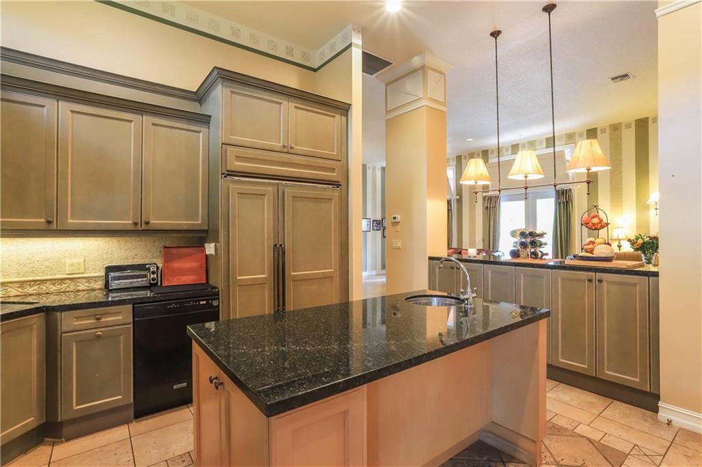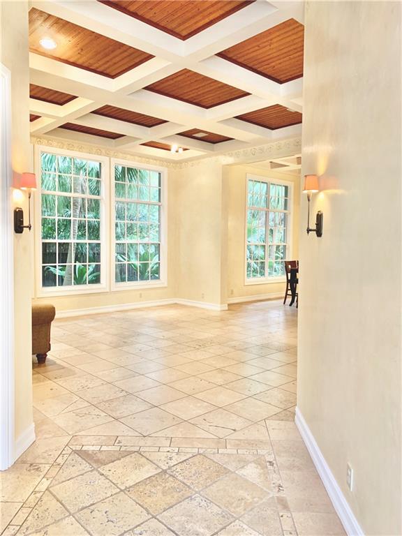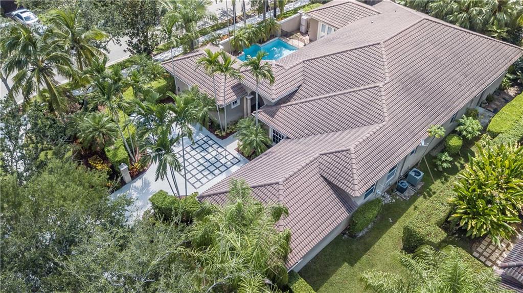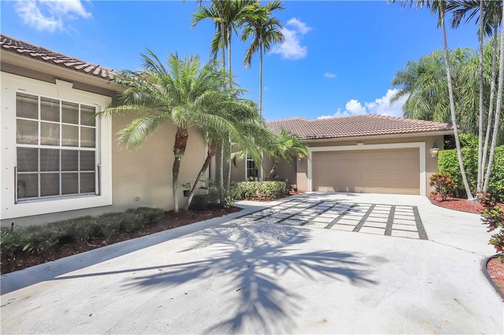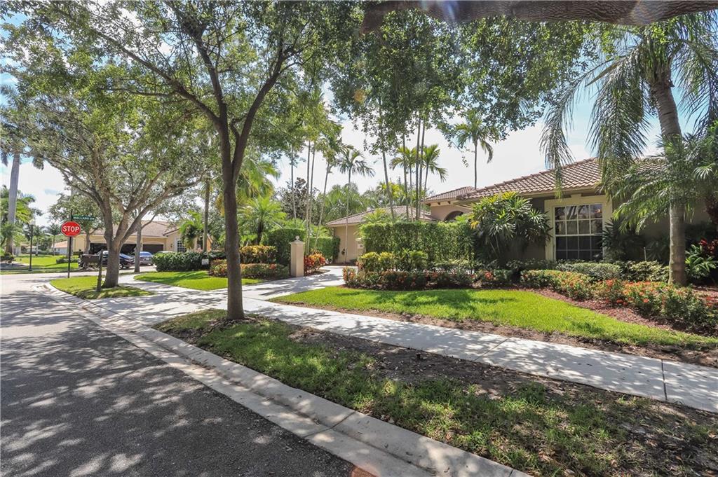 A must see! one-story corner lot home with 6 rooms which includes a custom built office and a guest house + 4.5 baths. 2 car-garage + additional parking space. Courtyard home entrance great for entertaining and extra privacy. Patio/pool area w/Roman columns, tall French doors & custom ceiling design. Inside, travertine floors, coffered ceilings, large windows facing the backyard, plantation shutters, detailed moldings, venetian plaster plus other designer touches. Kitchen w/gourmet center island, wood cabinetry and granite countertop. Guard gated community. Property walled & hedge for privacy. Free flow split Plan w/rooms on opposite sides for maximum privacy. The setting is private, the outside garden is lush and scenic. Walking distance to community play area. A+ schools.