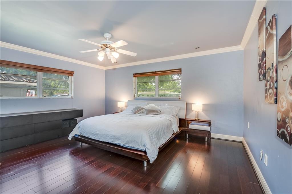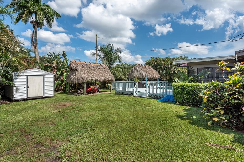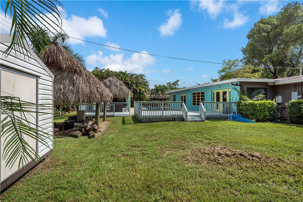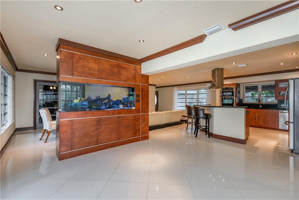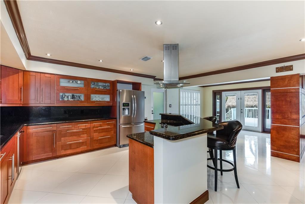 Beautifully Upgraded 3/2 home + Large Bonus Room (275 sqft) + Huge Patio Deck (925 sqft), Remodeled Kitchen w/ Stainless Steel Appliances & Granite Counter Top, Wine Refrig, 200G Saltwater Fish Tank enclosed in Floor to Ceiling Custom Cabinetry, Crown Molding, Tankless Water Heater, Bonus Room for Office/Man Cave, 24" Porcelain Tile, and Java Bamboo Hardwood Flooring. Enjoy the Expansive Backyard, Elegantly Landscaped for Tranquility and Relaxation, Black Pearl Diamond Brite Pool, Child Safety Pool Net, Water Flecks Pool Deck Surface (like Splash Pad), w/2 Authentic Seminole Chickee Huts, one for bonfire/wood fire. Electricity/Lights in the Shed and Chickee with TV. Wood Fence provides Privacy in Backyard and Side Swing Gate allows Vehicle Access in/out. Roof (2014)