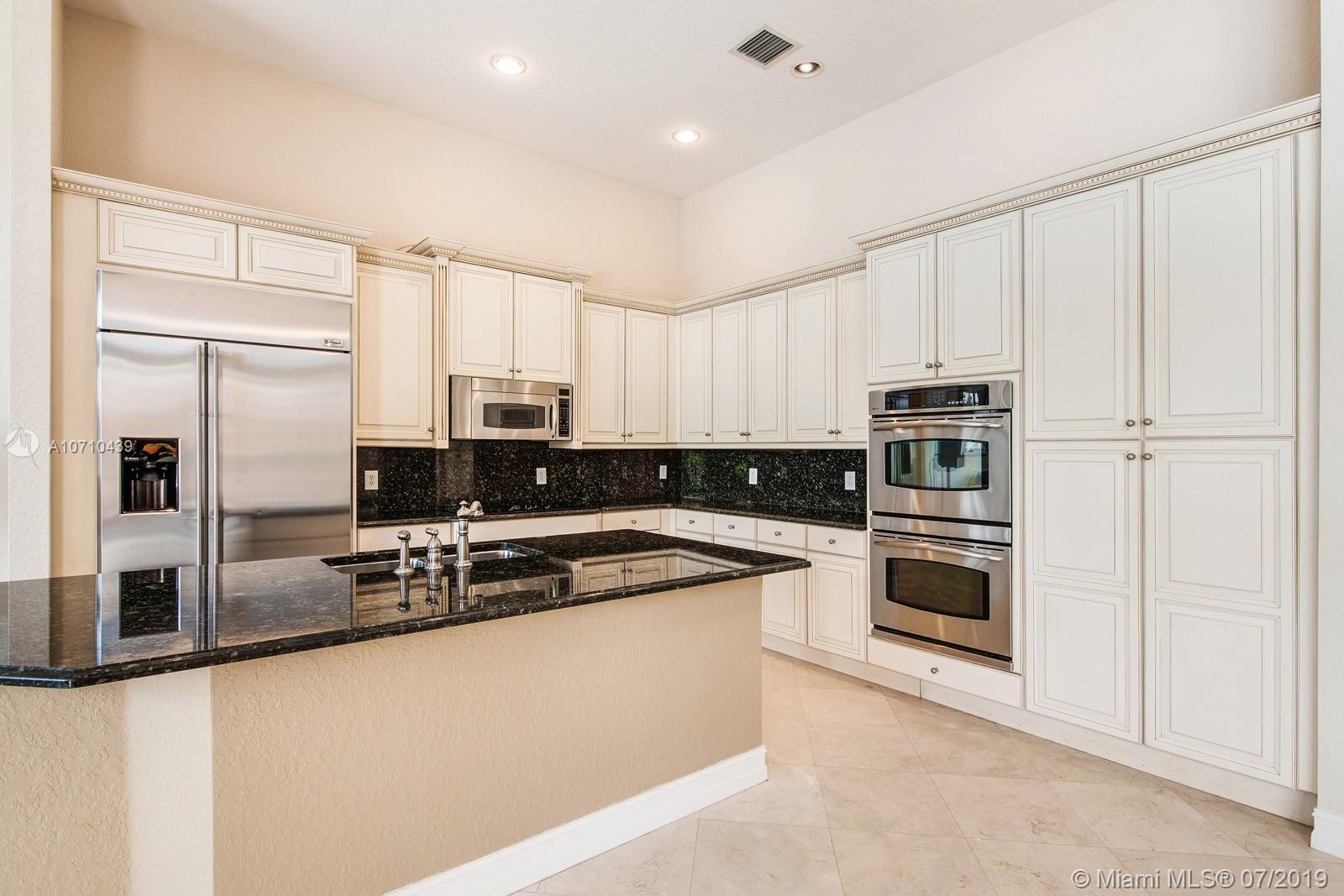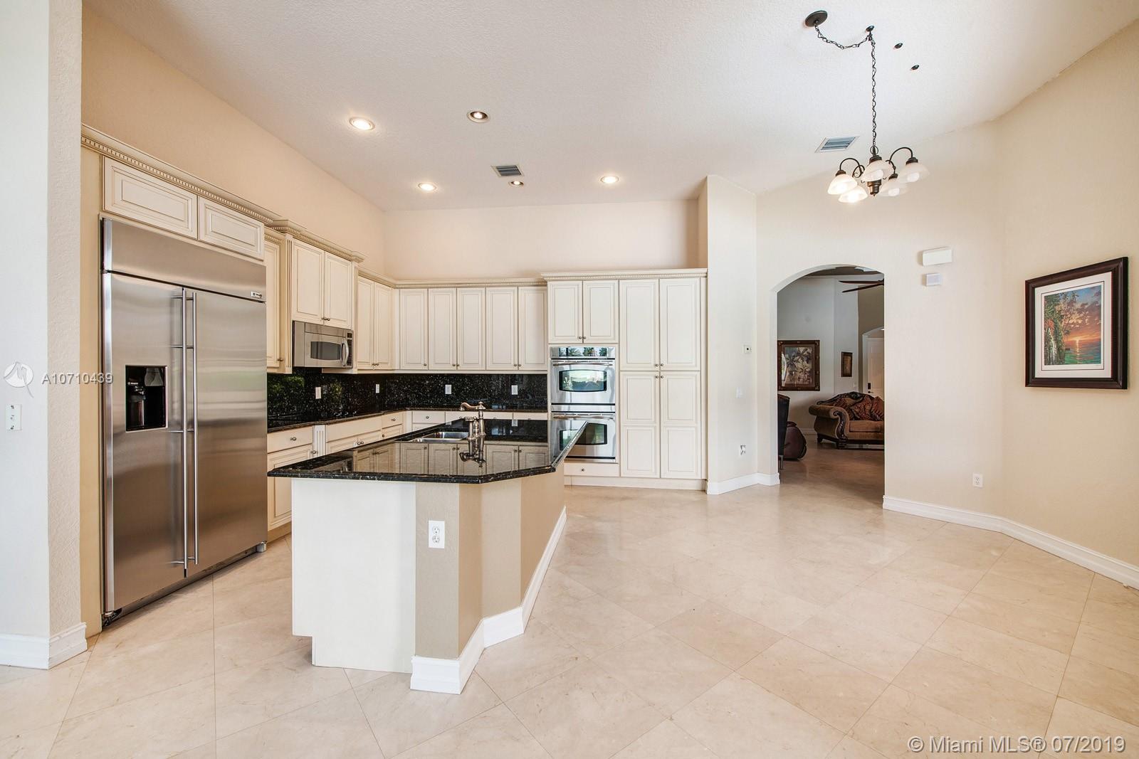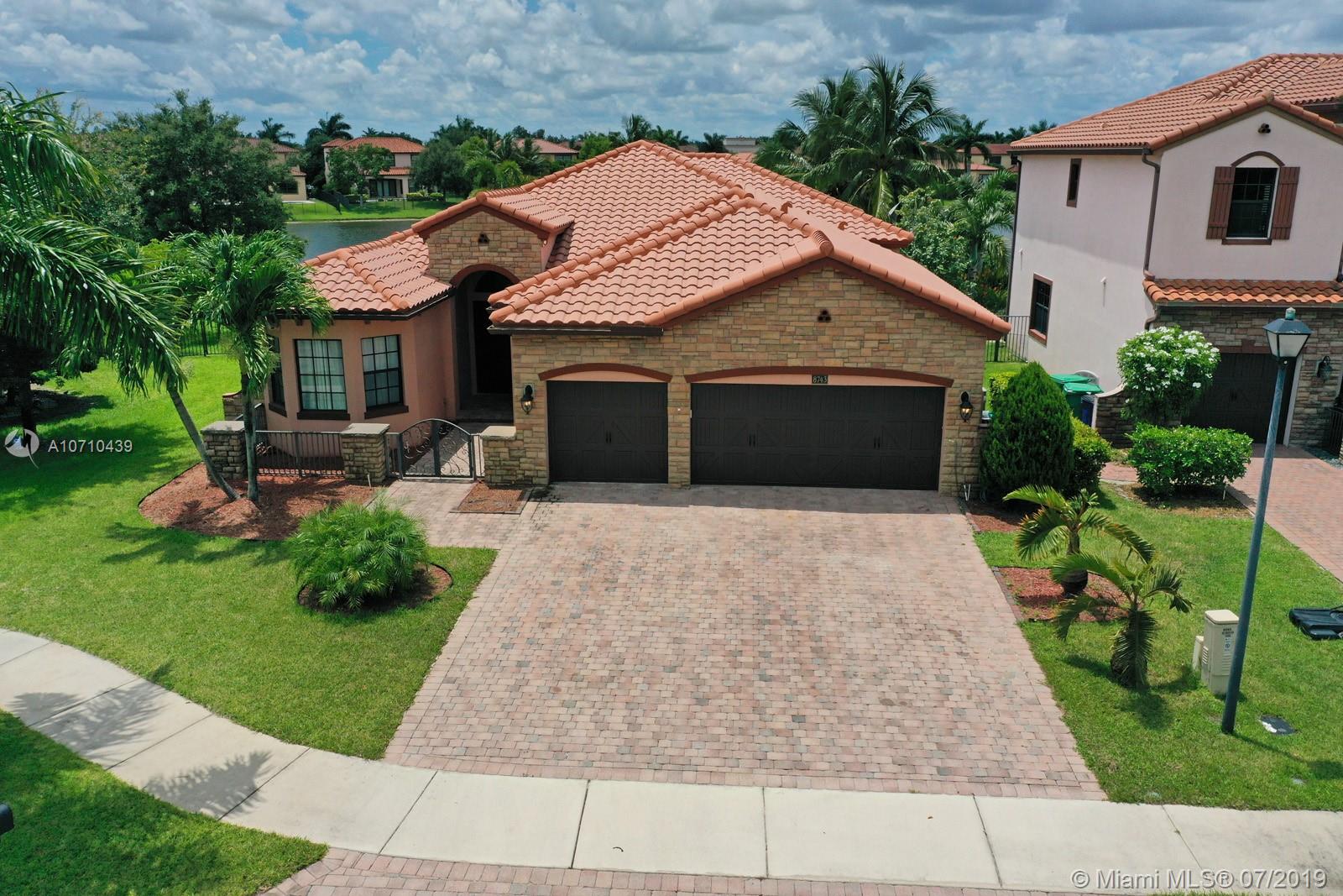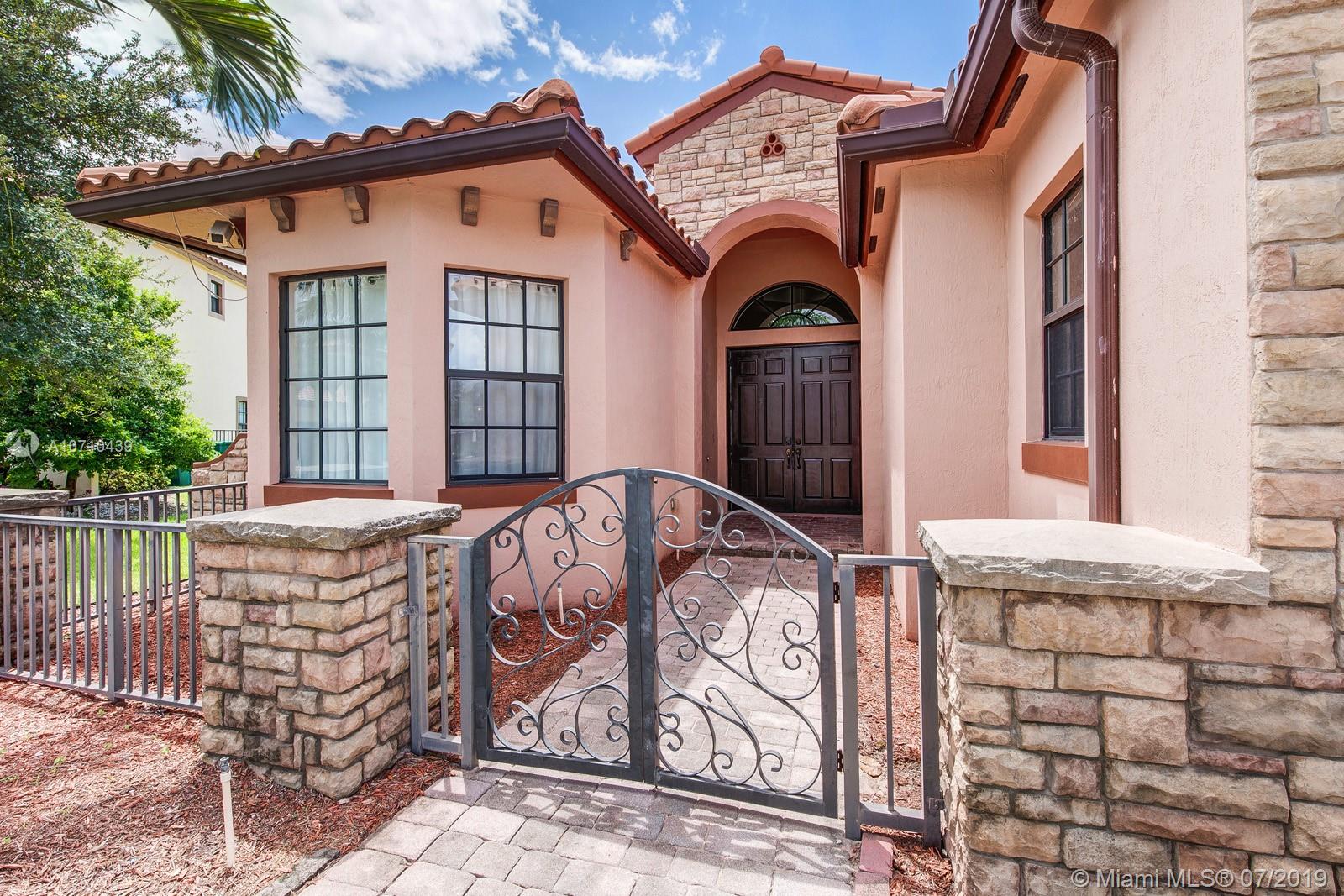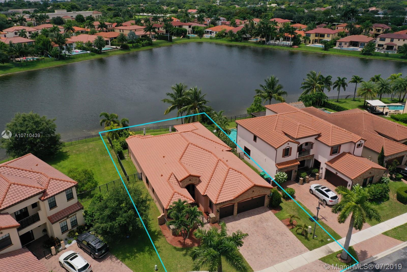Welcome home! Rare opportunity in the highly sought after Estada community. You are greeted by beautiful pool and lake views as soon as you step in! Unique and spacious floor plan that offers 4 bedrooms and 3 full bathrooms. This one story home has complete hurricane impact windows and doors, 3 car garage and 12' ceilings! Fully remodeled kitchen with gorgeous cream wood cabinets, stainless steel appliances, double ovens, granite countertops and large center island. Excellent lakefront backyard and custom pool/spa with waterfall and pool deck pavers! Great for entertaining! Paved front driveway! Estada is a private boutique community offering 24/7 manned gated security, A+ schools and near all major highways, shopping, airport, hospitals and more! MUST SEE!