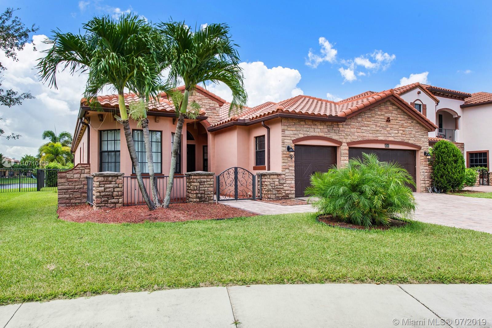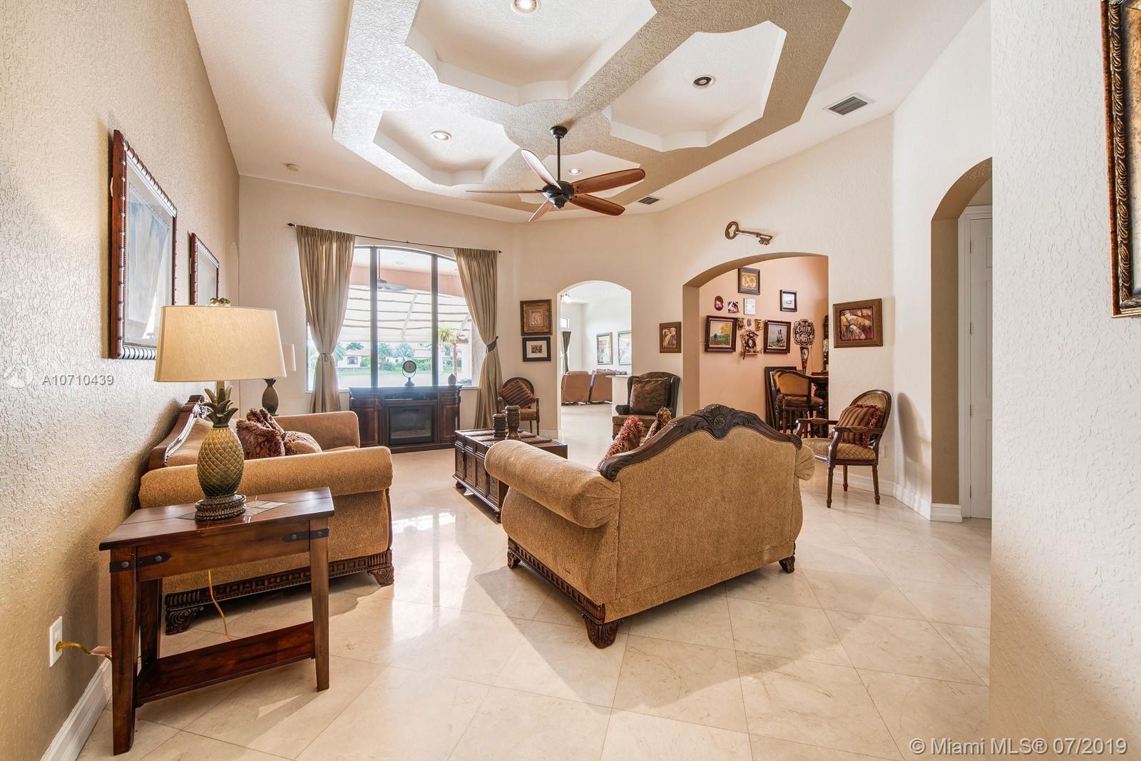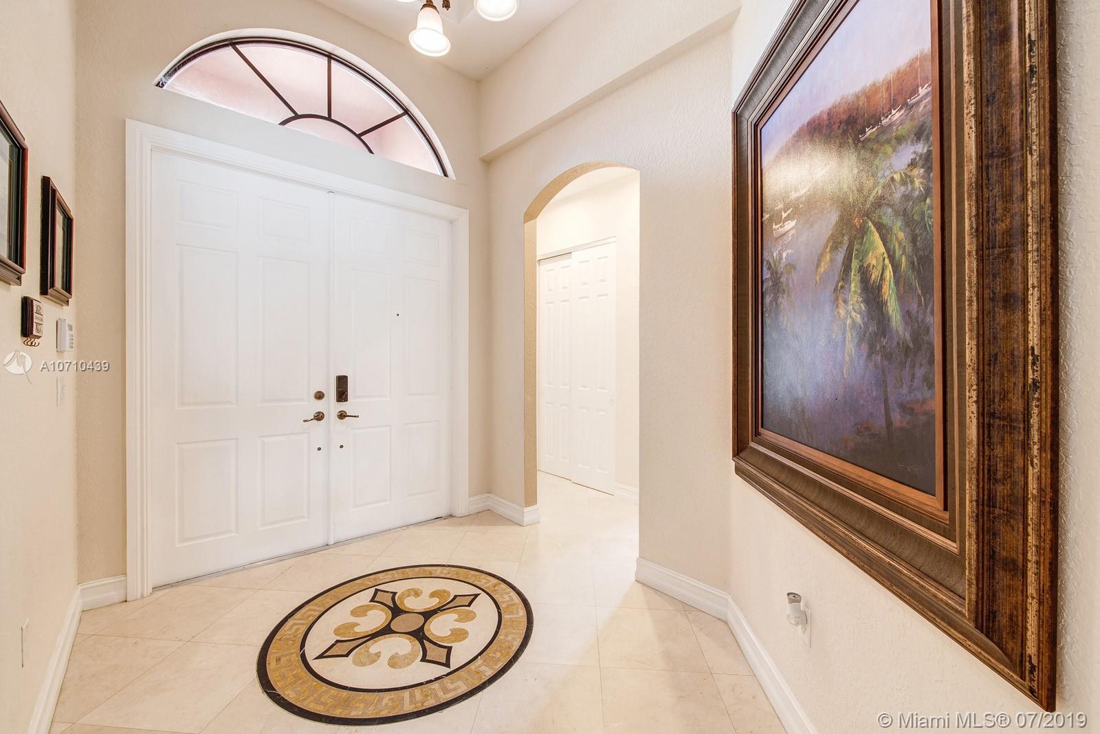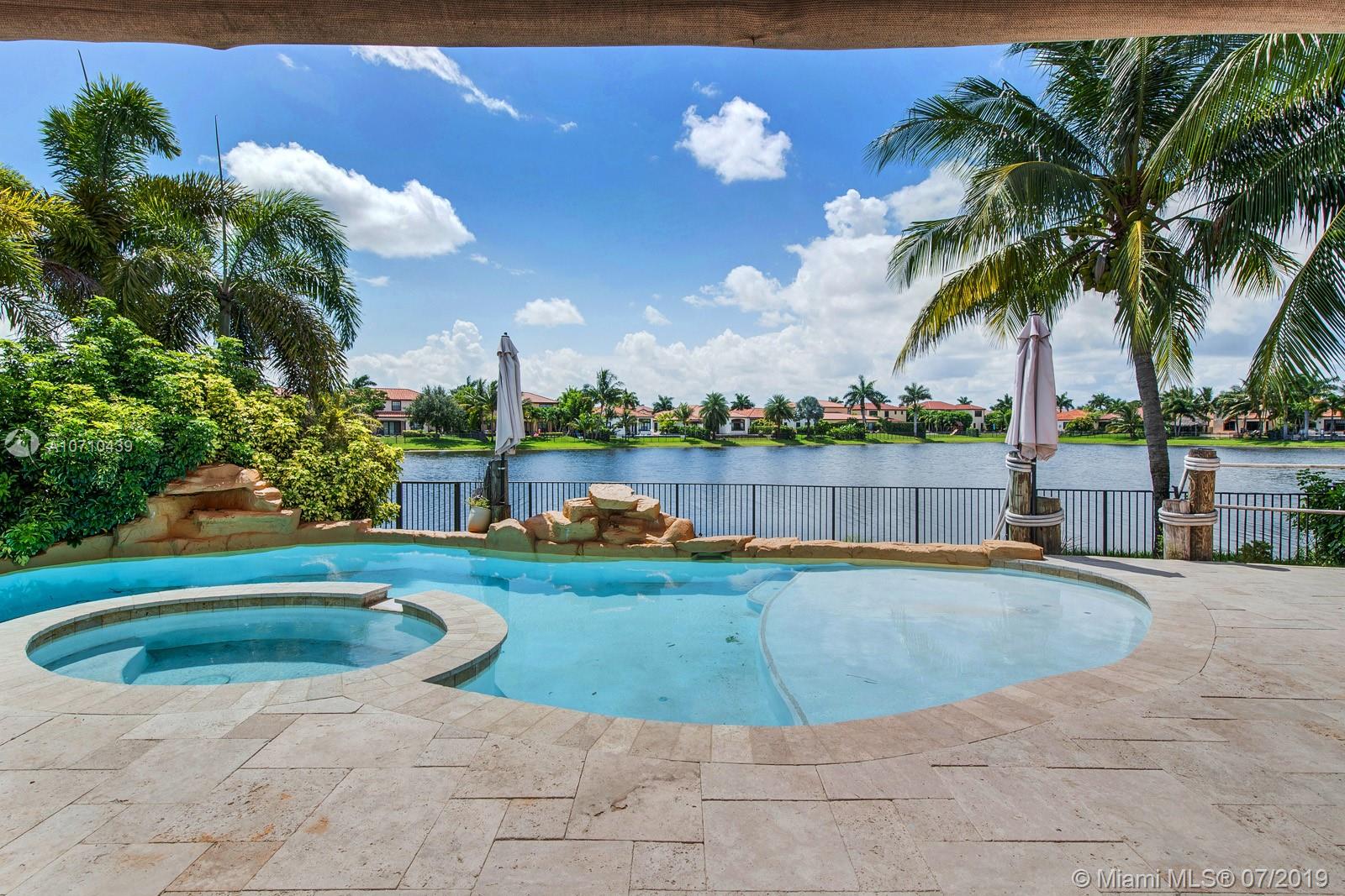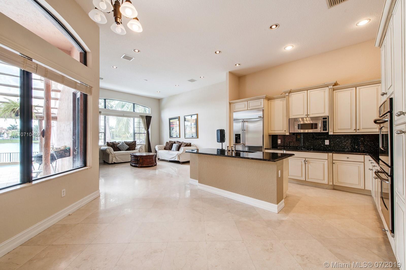 Welcome home! Rare opportunity in the highly sought after Estada community. You are greeted by beautiful pool and lake views as soon as you step in! Unique and spacious floor plan that offers 4 bedrooms and 3 full bathrooms. This one story home has complete hurricane impact windows and doors, 3 car garage and 12' ceilings! Fully remodeled kitchen with gorgeous cream wood cabinets, stainless steel appliances, double ovens, granite countertops and large center island. Excellent lakefront backyard and custom pool/spa with waterfall and pool deck pavers! Great for entertaining! Paved front driveway! Estada is a private boutique community offering 24/7 manned gated security, A+ schools and near all major highways, shopping, airport, hospitals and more! MUST SEE!