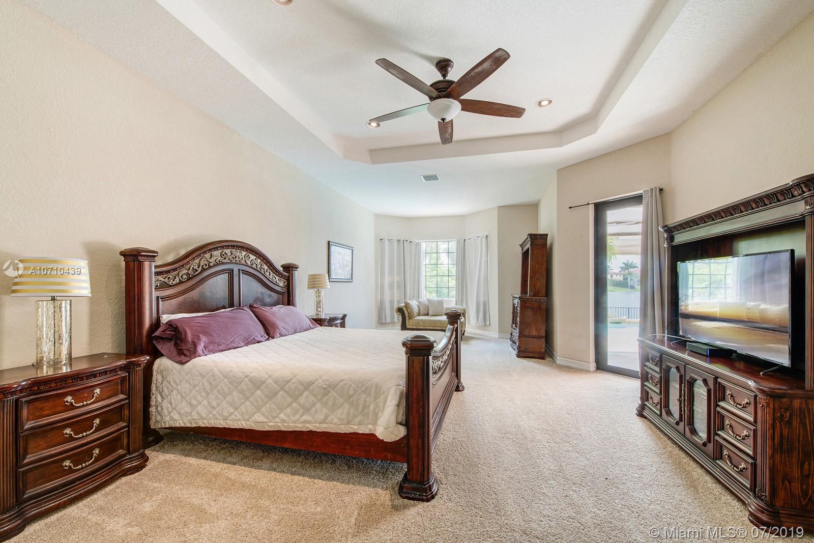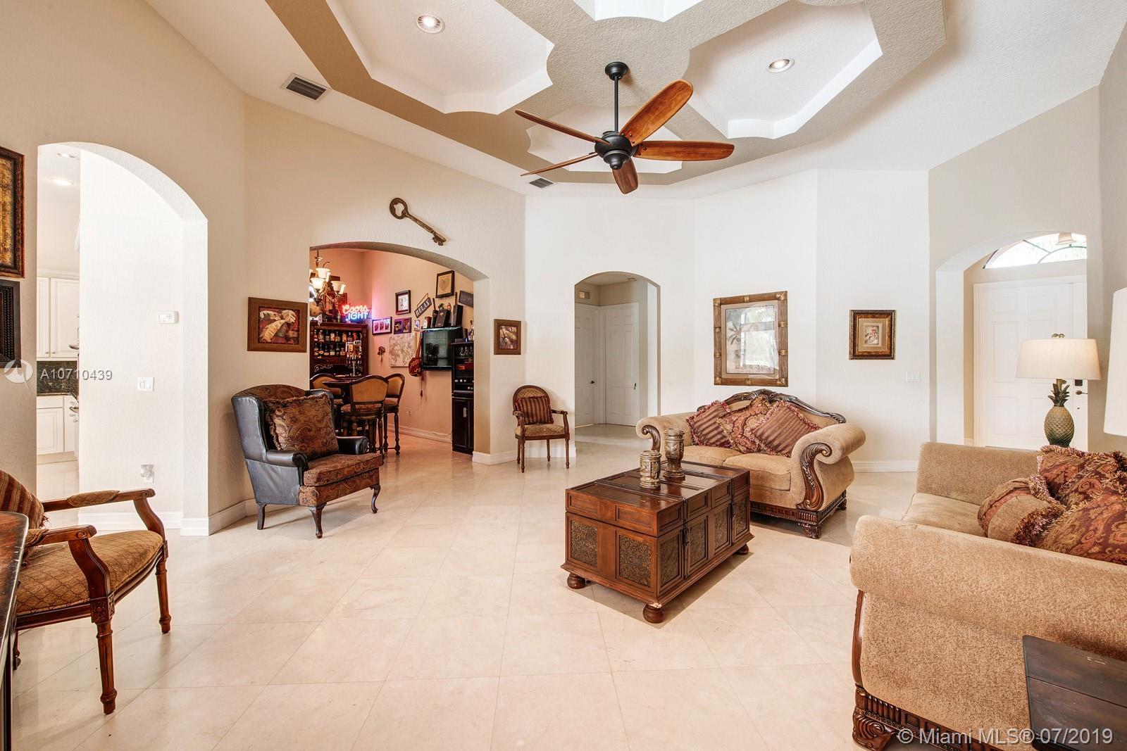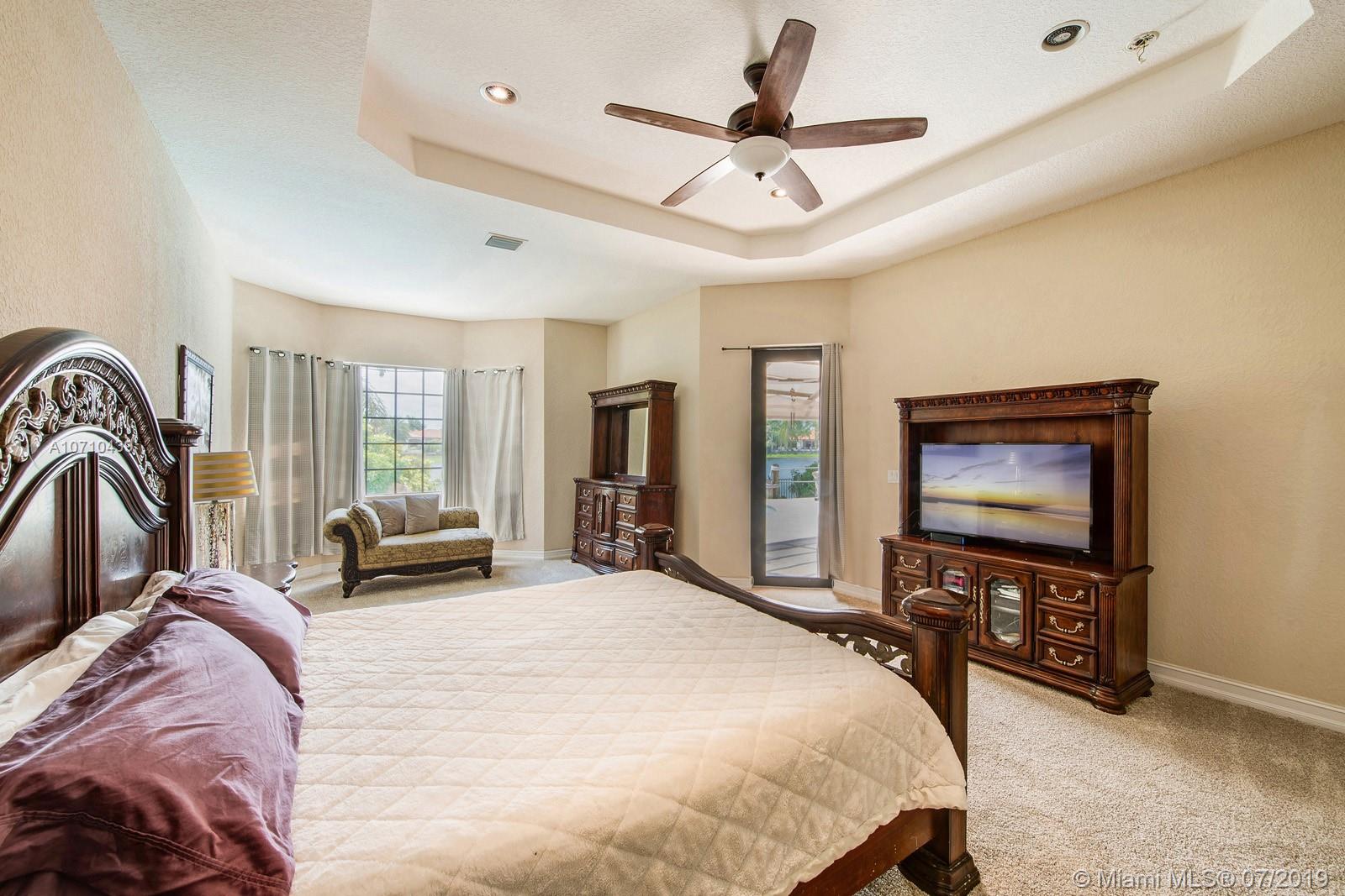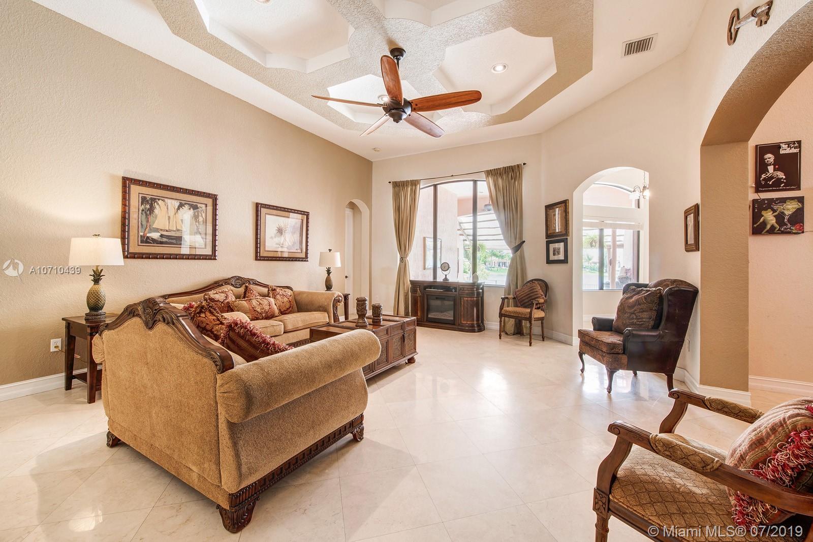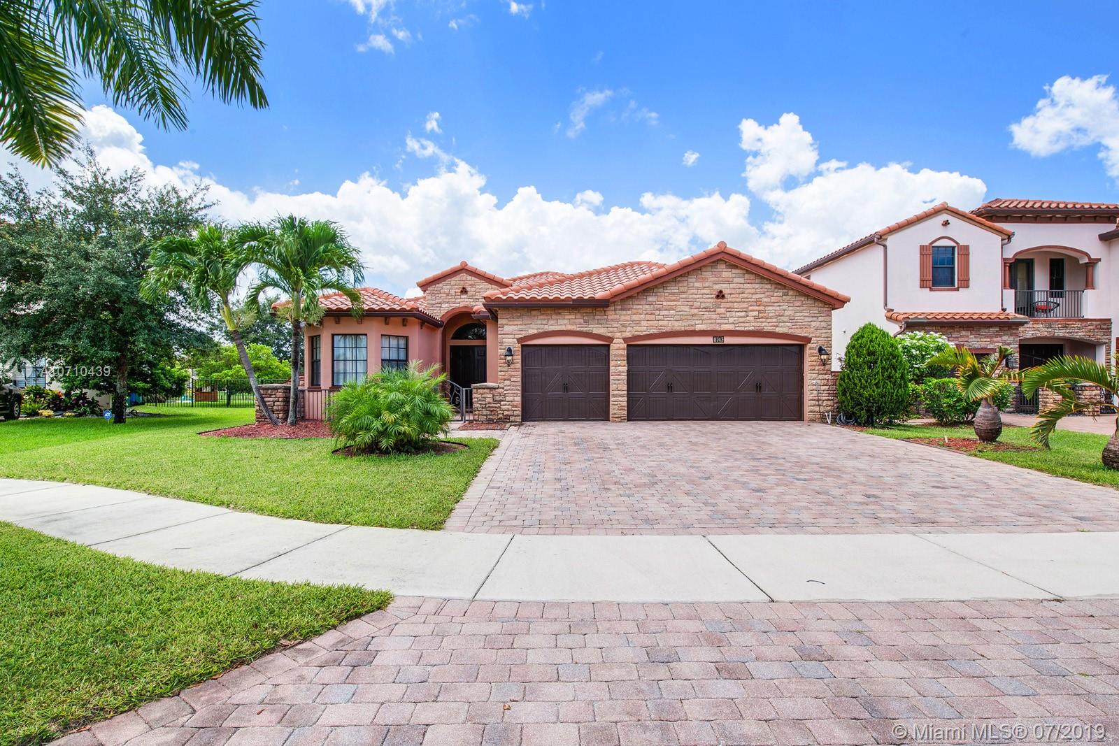 Welcome home! Rare opportunity in the highly sought after Estada community. You are greeted by beautiful pool and lake views as soon as you step in! Unique and spacious floor plan that offers 4 bedrooms and 3 full bathrooms. This one story home has complete hurricane impact windows and doors, 3 car garage and 12' ceilings! Fully remodeled kitchen with gorgeous cream wood cabinets, stainless steel appliances, double ovens, granite countertops and large center island. Excellent lakefront backyard and custom pool/spa with waterfall and pool deck pavers! Great for entertaining! Paved front driveway! Estada is a private boutique community offering 24/7 manned gated security, A+ schools and near all major highways, shopping, airport, hospitals and more! MUST SEE!
