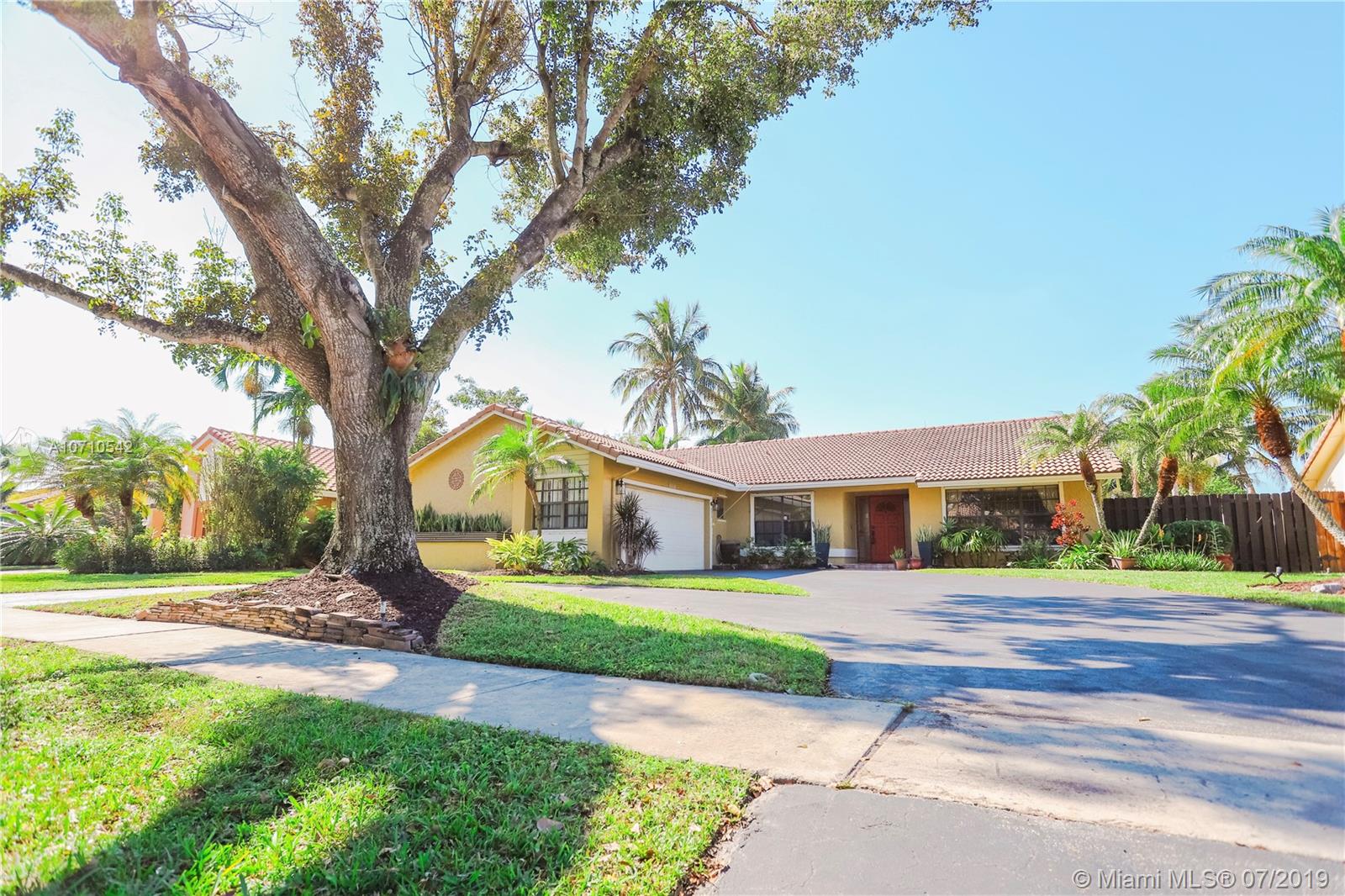 Fabulous 4-bedrooms, 3-bathroom home with a split-bedroom design. Master room separate from the rest of the bedrooms. Great open concept with vaulted ceiling & natural light for entertainment that opens to a lush landscaped yard providing a canal view and pool. Stylish renovated kitchen with wood cabinets, granite countertops and stainless steel appliances. Ceramic tile in kitchen & family room with wood floors throughout the rest of the home. Newer A/C (2017) and roof (2008). Hurricane shutters. Circular driveway to provide space for those entertaining moments. In school district with “A” schools offering International Baccalaureate Magnet programs. Easy access to the airport, major roads and shopping such as Sawgrass. Care and love reflex in this home.