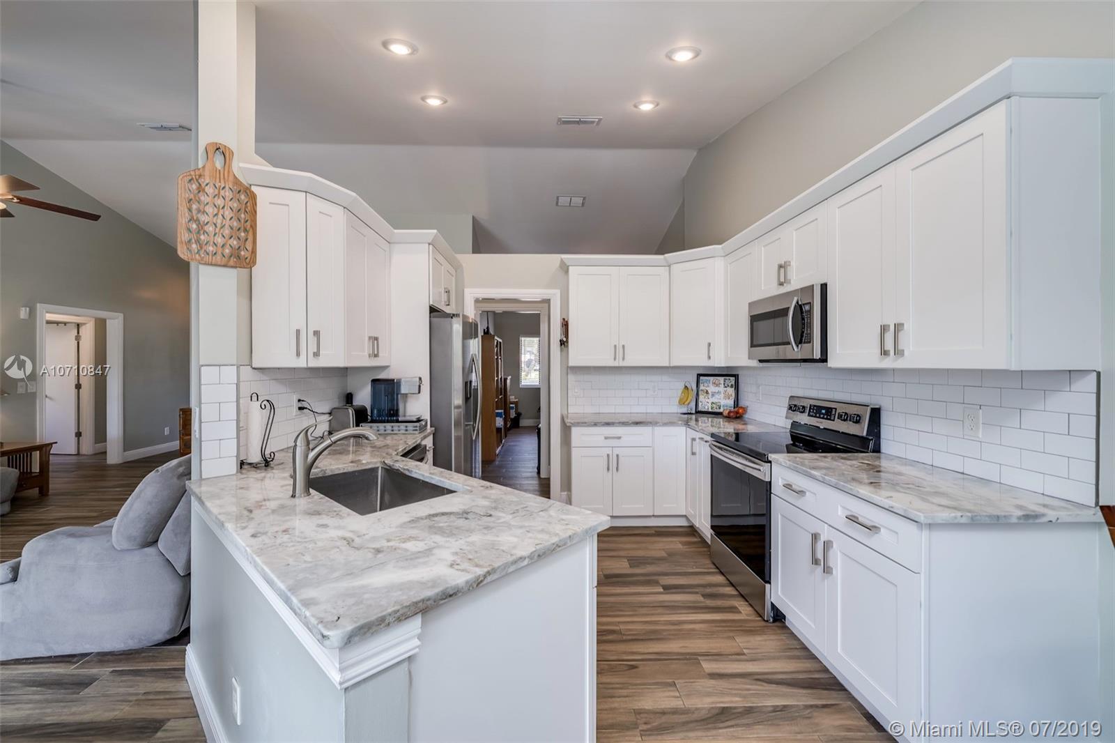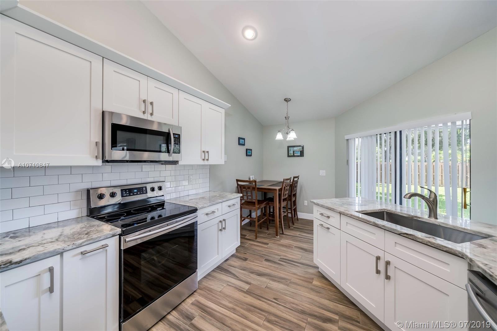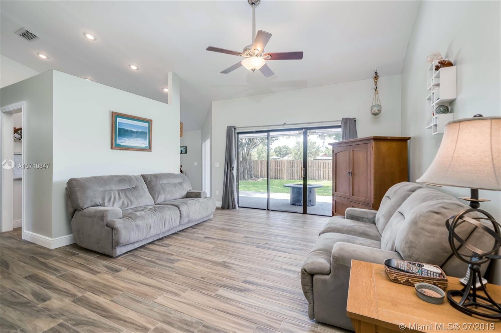Back on Market - No Fault of sellers/house. Completely renovated, spacious split-bedroom plan home in the desirable Oak Knoll Estates. From the barrel tile roof (2016) to the new expanded paver drive, updates abound. Fourth bedroom is convertible office/den. Wood-look tile flooring leads from entrance through main living areas. Vaulted ceilings soar over newly updated kitchen with stainless appliances, natural stone counters and white soft-close cabinetry. Master bath remodeled with separate frameless shower and ample storage. Second bath offers two sinks with tub/shower combo. 2 car garage/2 attic storage areas. Large fenced backyard with direct access to Davie's Bergeron Park. Walking distance to top-rated public schools.