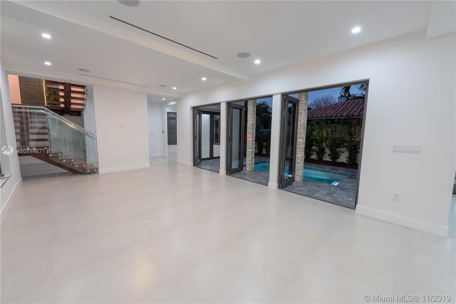 Transitional Modern Mediterranean designed home. Centrally located in the heart of Coral Gables. The home is BRAND NEW CONSTRUCTION on Alhambra Circle. The home features 3 bedrooms 4 baths solid built construction, Impact windows and doors, front and side pavered parking areas, indoor laundry room, outdoor patio area with pool, elevator to master bedroom suite. Master suite has private balcony for day and evening enjoyment. Surround sound through out home with Sonos and alarm system. Some pictures have been virtually staged for idea in concept for use of space. MUST SEE! Walking distance to the Biltmore Resort and Riviera Country Club, also located less than 5 minutes to UM, Doctors Hospital, and all local hotspots Coral Gables has to offer