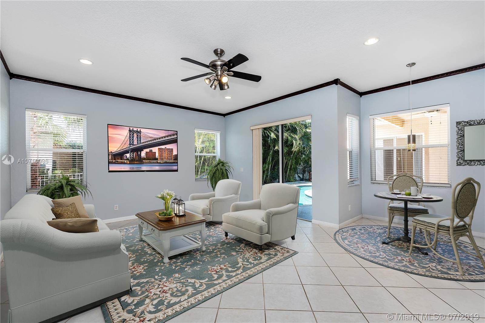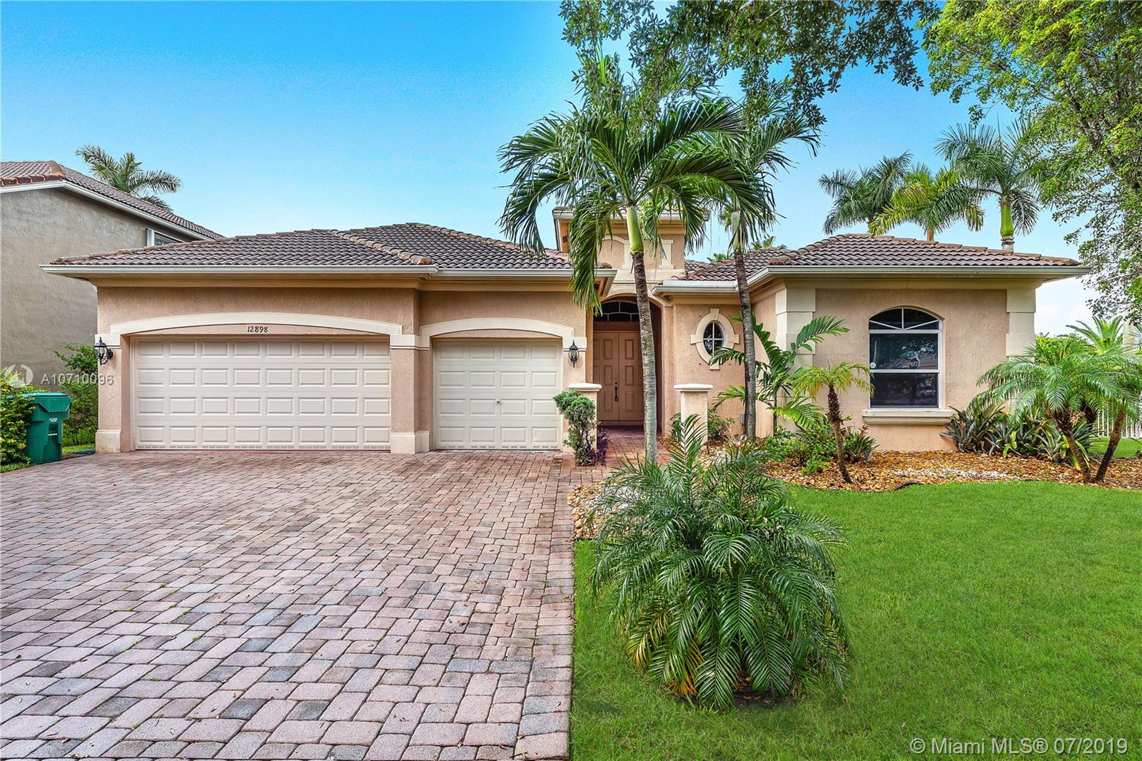 This stunning one-story home sits on an oversized corner lot with beautifully matured trees. The home is move-in ready and boasts 16ft high vaulted ceilings throughout with large windows providing lots of natural light. The eat-in kitchen includes granite countertops, stainless steel appliances and white 42" cabinetry. It has excellent views of the pool throughout the home. The back patio accommodates plenty of entertainment space for those special outdoor gatherings. The home is perfect for a large family with plenty of room for everyone. It's a 4 bedroom model modified into a 3 bedroom with oversized rooms. Conveniently situated in a family-friendly neighborhood between the Miami-Dade and Broward county line. This home is sure to go fast!!