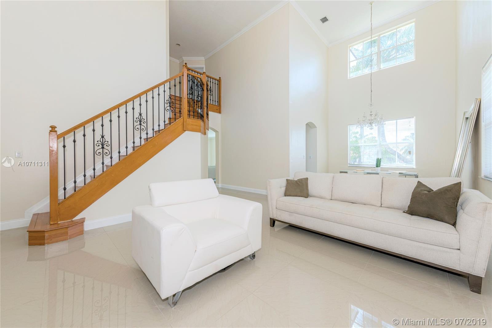 Gorgeous lake front home in gated community of Monarch Lakes! Home is located on a very quite street , sits on a large lot! Soaring two-story high ceiling creates a feeling of openness and prestige. The recently updated kitchen features modern granite countertops and a decorative backsplash, lg snack bar & breakfast area. 1 bedroom & full bath are located on first floor. Upper level you will find a loft ,The master suite features a sitting area, tons of natural light, lg master bath with his & her vanities, separate shower & bathtub. Huge backyard perfect for entertaining w/covered sitting area overlooking the peaceful lake. Mango & Coconut trees are in the backyard. There is plenty of room to build a pool!