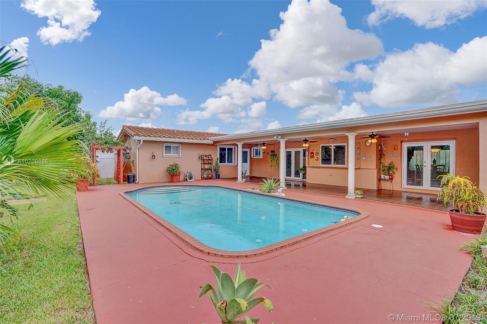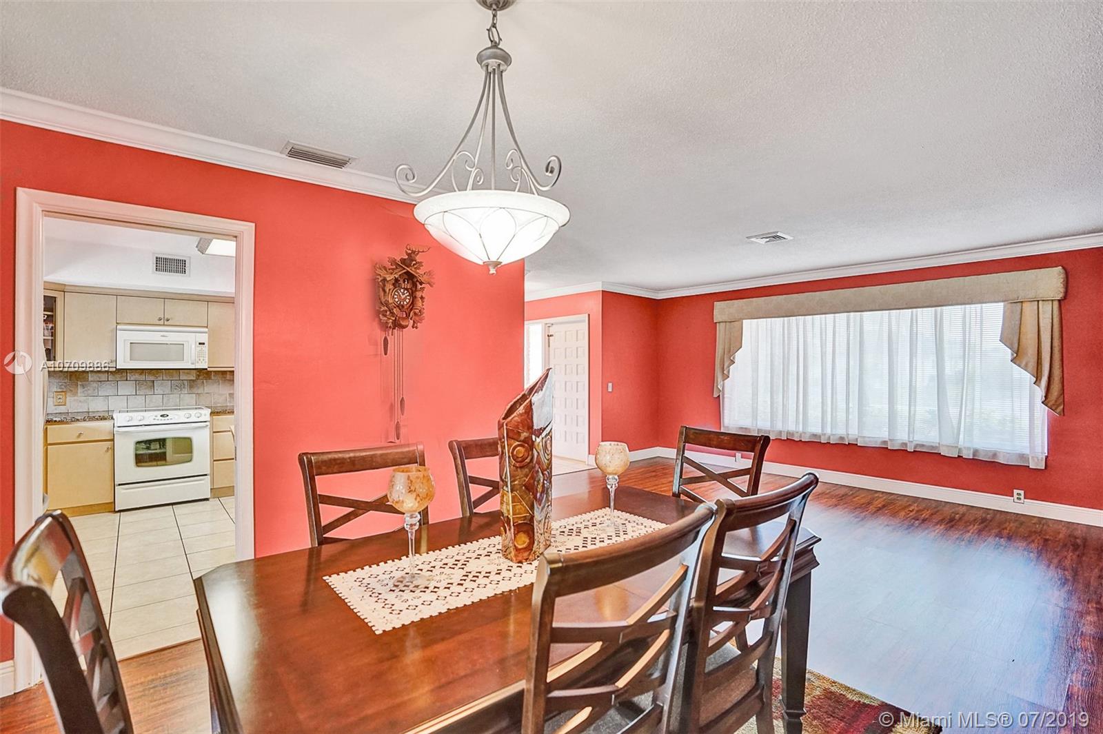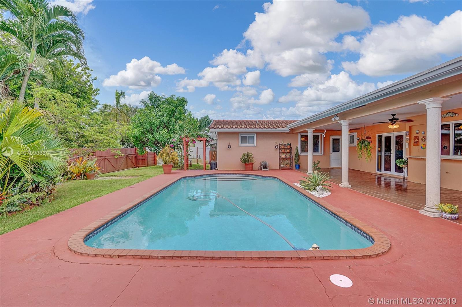 LIFETIME HOME IN A BEAUTIFUL SETTING! Here is the opportunity you’ve been waiting for in a great Hollywood Hills location. This home welcomes you with lots of natural light, and it has a well distributed layout. Featuring 3 beds/2 baths, formal living and dining room, updated kitchen, huge family room, utility-laundry room and 2 car garage. The kitchen features mica cabs, granite tops, pantry, beautiful pool area views and is big enough for a breakfast table. The pool area has a snack bar and a huge overhang perfect for entertaining family and friends. Storm ready with IMPACT WINDOWS installed in 2016 and ACCORDION SHUTTERS installed in 2012. In addition, Lush landscape backyard, stamp concrete circular driveway, 2014 central air and 2016 water heater. ADAM AND EVE NEVER HAD IT SO GOOD!