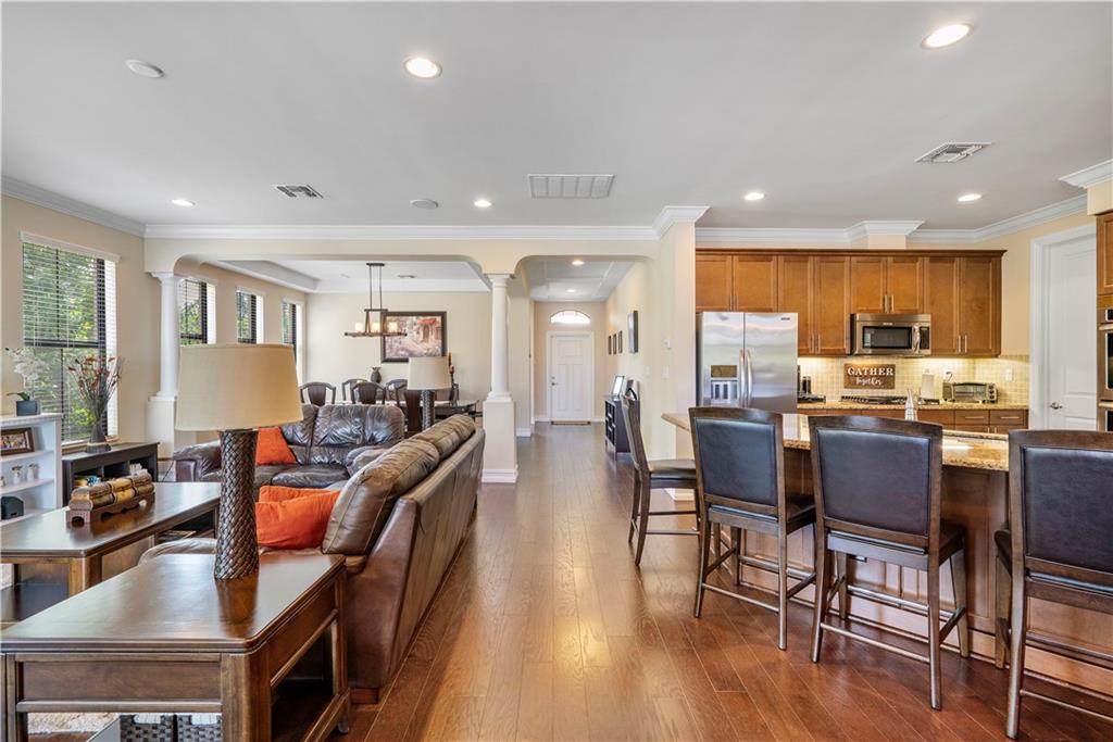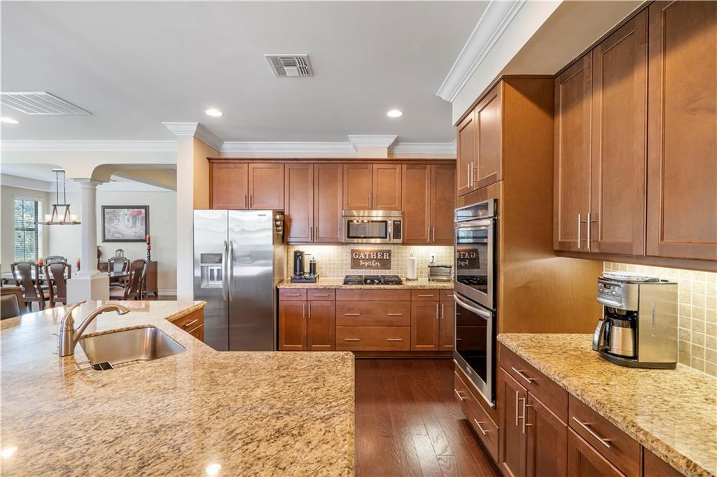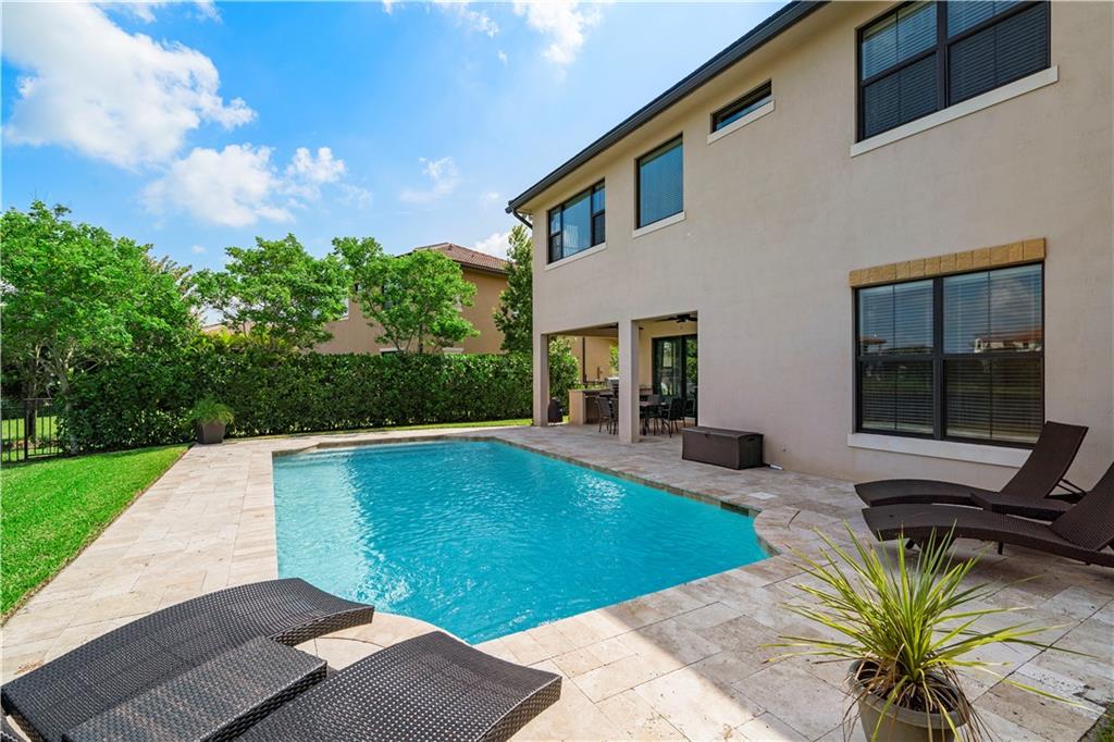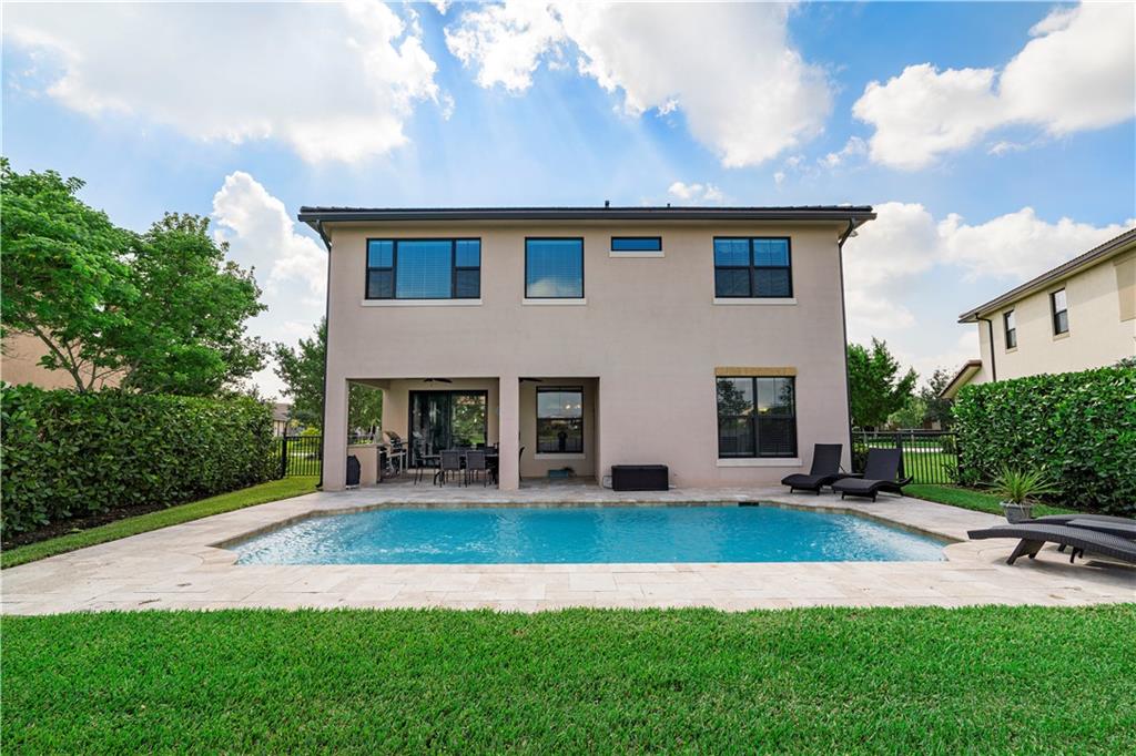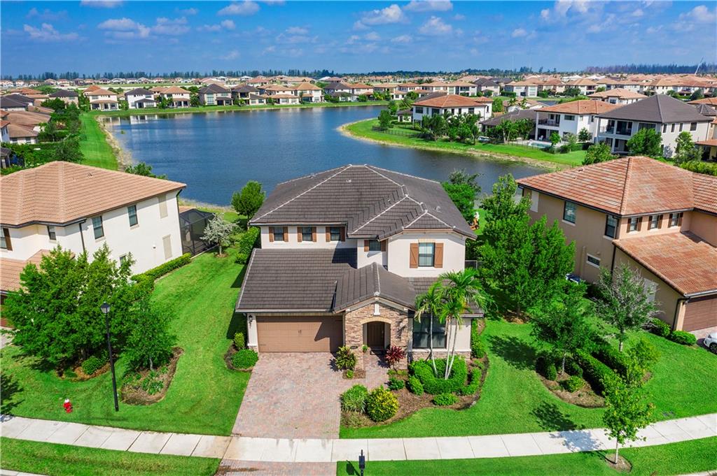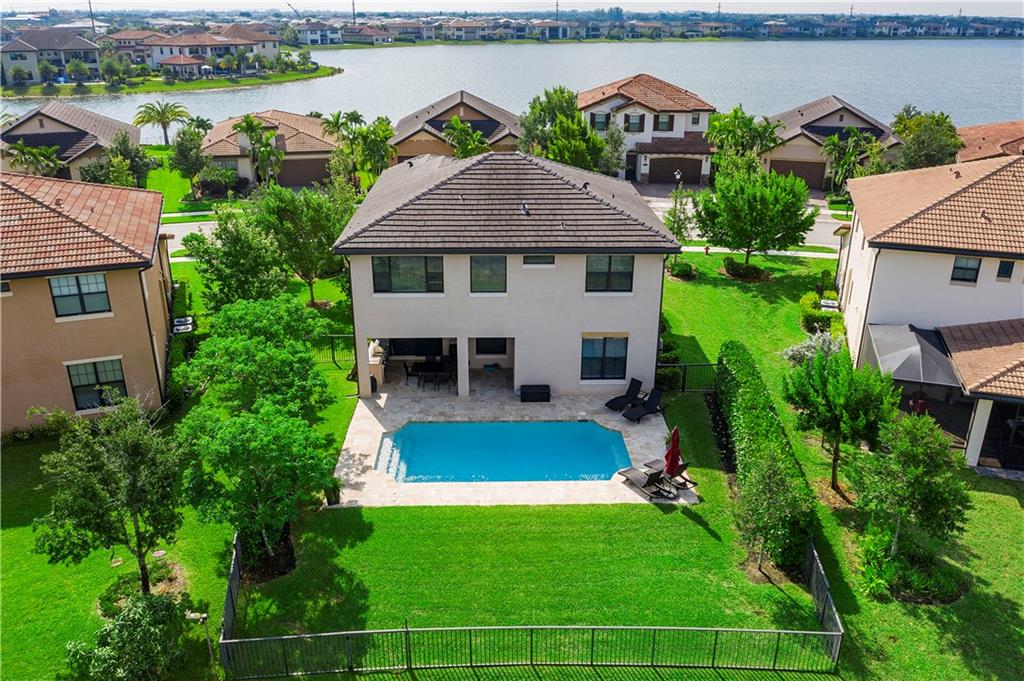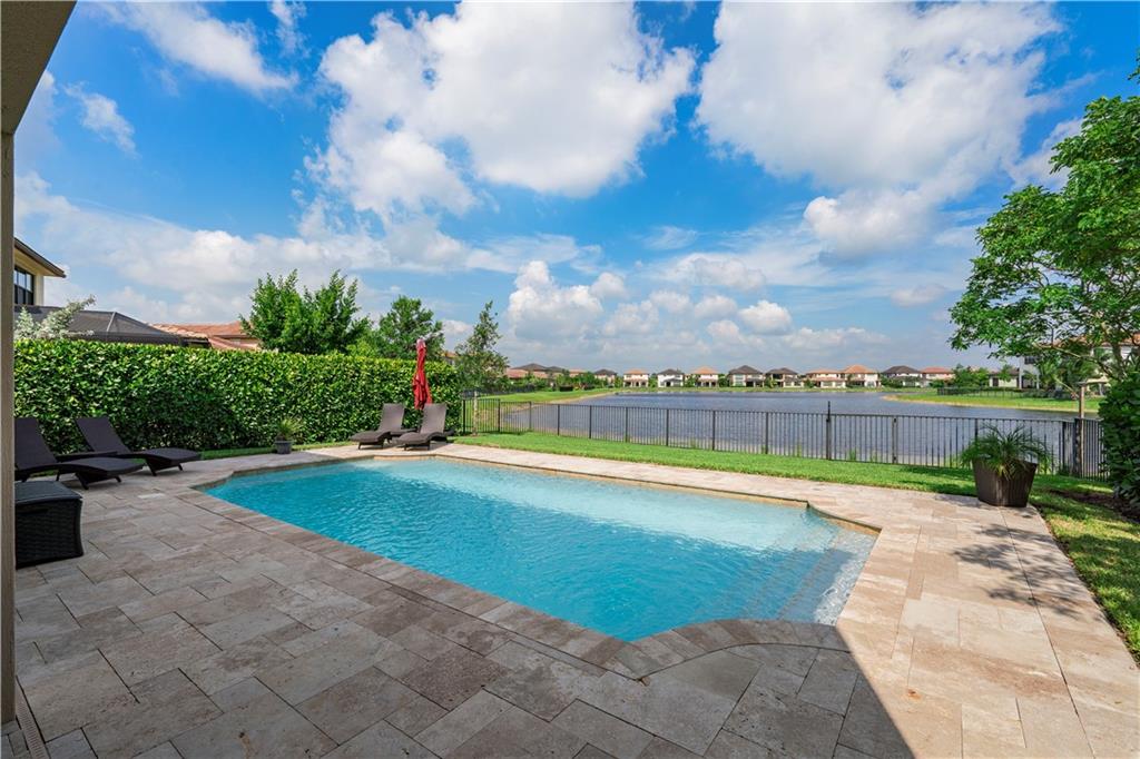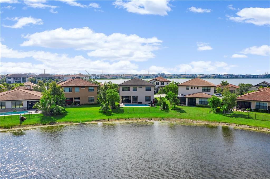 This beautiful Venetian Model is located on a prime lot with wide water views! Features include an open floor plan, a foyer entrance, den/living room, formal & casual dining rooms, family room, game room, crown molding, wood blinds, recessed lighting, tray ceilings, wainscoting & Hardwood flooring in the main living areas! The kitchen has a paneled island, espresso wood cabinets, SS pulls, granite counters, tile back splash, a deep SS sink and Kitchen Aid SS appliances! Entertain family and friends in your own backyard paradise! Tropically landscaped fenced yard, covered patio, built-in BBQ grill, sparkling pool and stunning wide water views! Watercrest is a gated community with low HOA fees, amazing amenities & great schools! This is South Florida Living at its best!!!