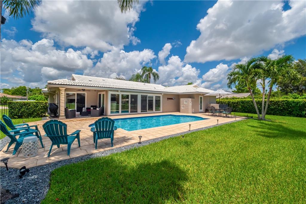 A MUST SEE, IMMACULATE updated 4/2 home. NO HOA but optional Country Club membership, lakefront, pool was diamond Brite refinished 2019, NEW impact windows, NEW landscaping, exterior freshly painted, NEW sprinkler pump 2019, NEW water heater 2018, water softening system, NEW electrical panel & LED lighting, updated kitchen and bathrooms, HUGE master closet plus another walk -in, AC 2015 & 2017, tile/laminate throughout home, surround sound throughout home, BEAUTIFUL backyard for entertaining and swimming, fenced in yard.